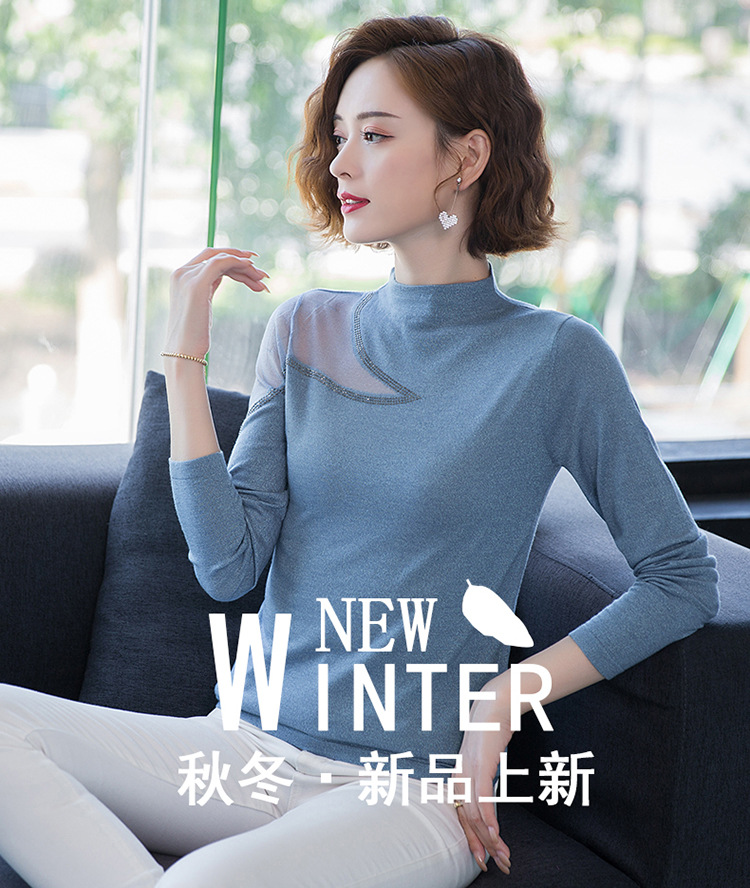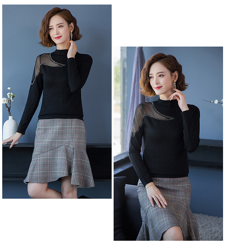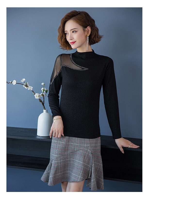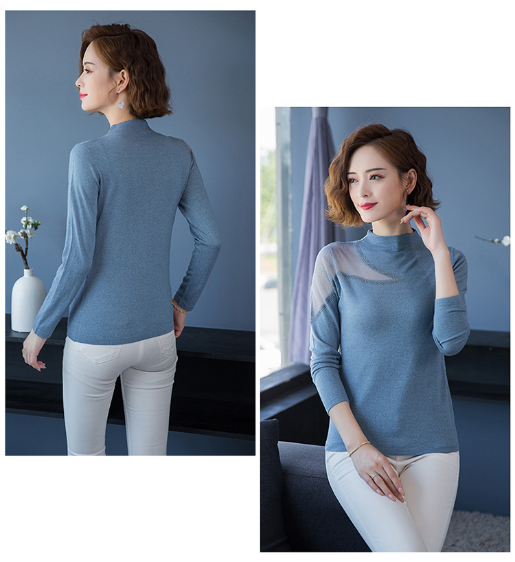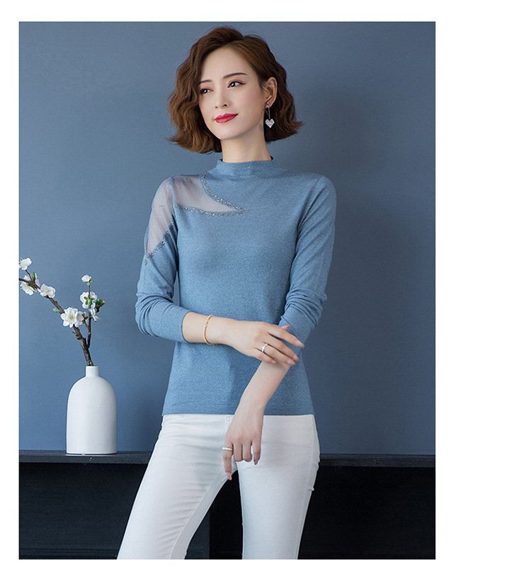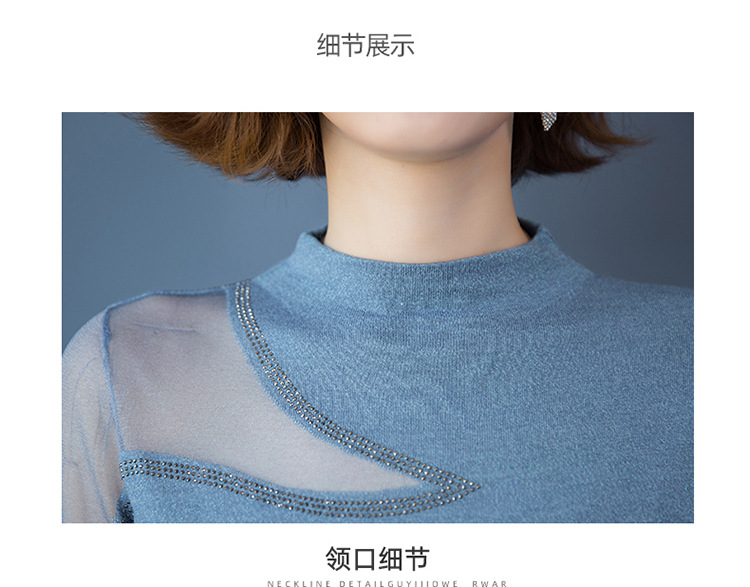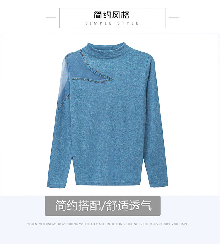 FCY-MYN2077镶钻网纱袖半高领针织衫