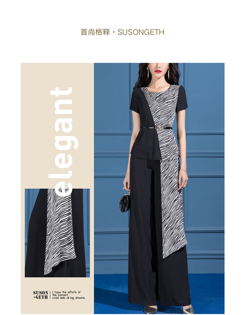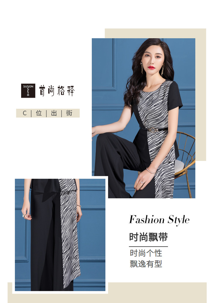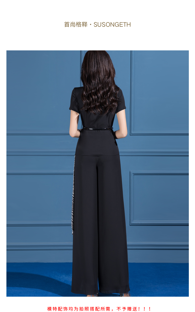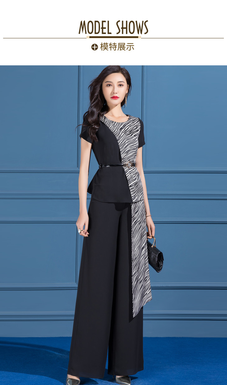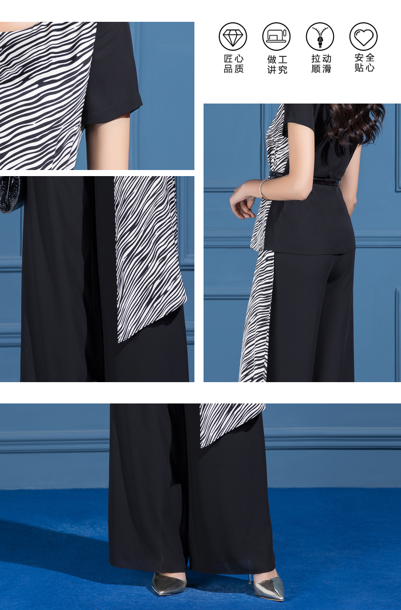 SSGS-Z346阔腿裤套装女夏2021年新款不规则印花拼接雪纺上衣垂感裤子两件套