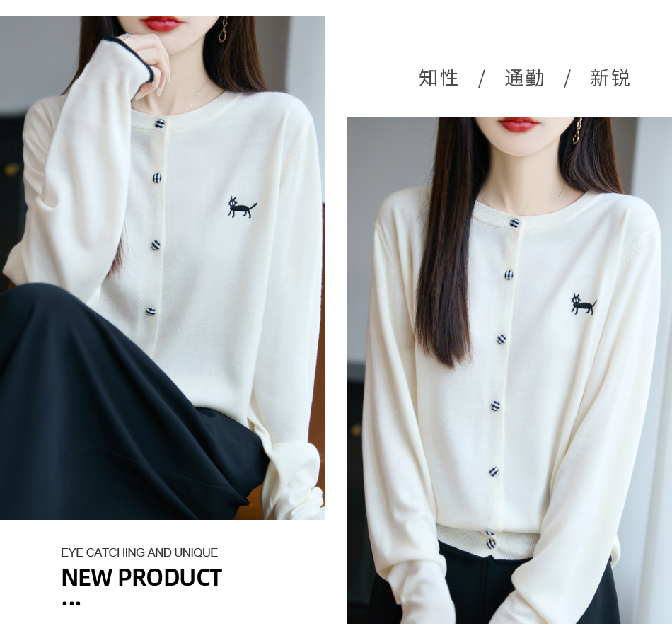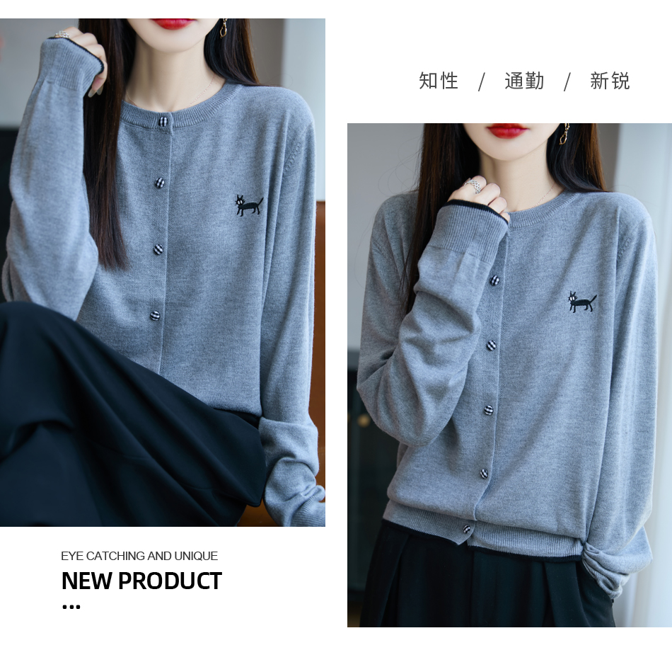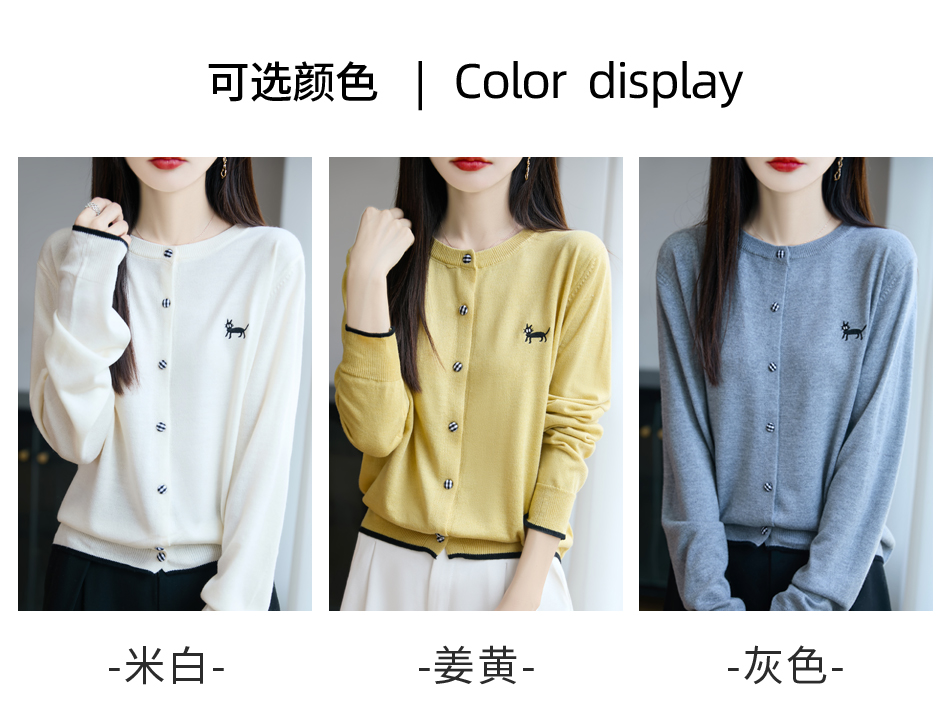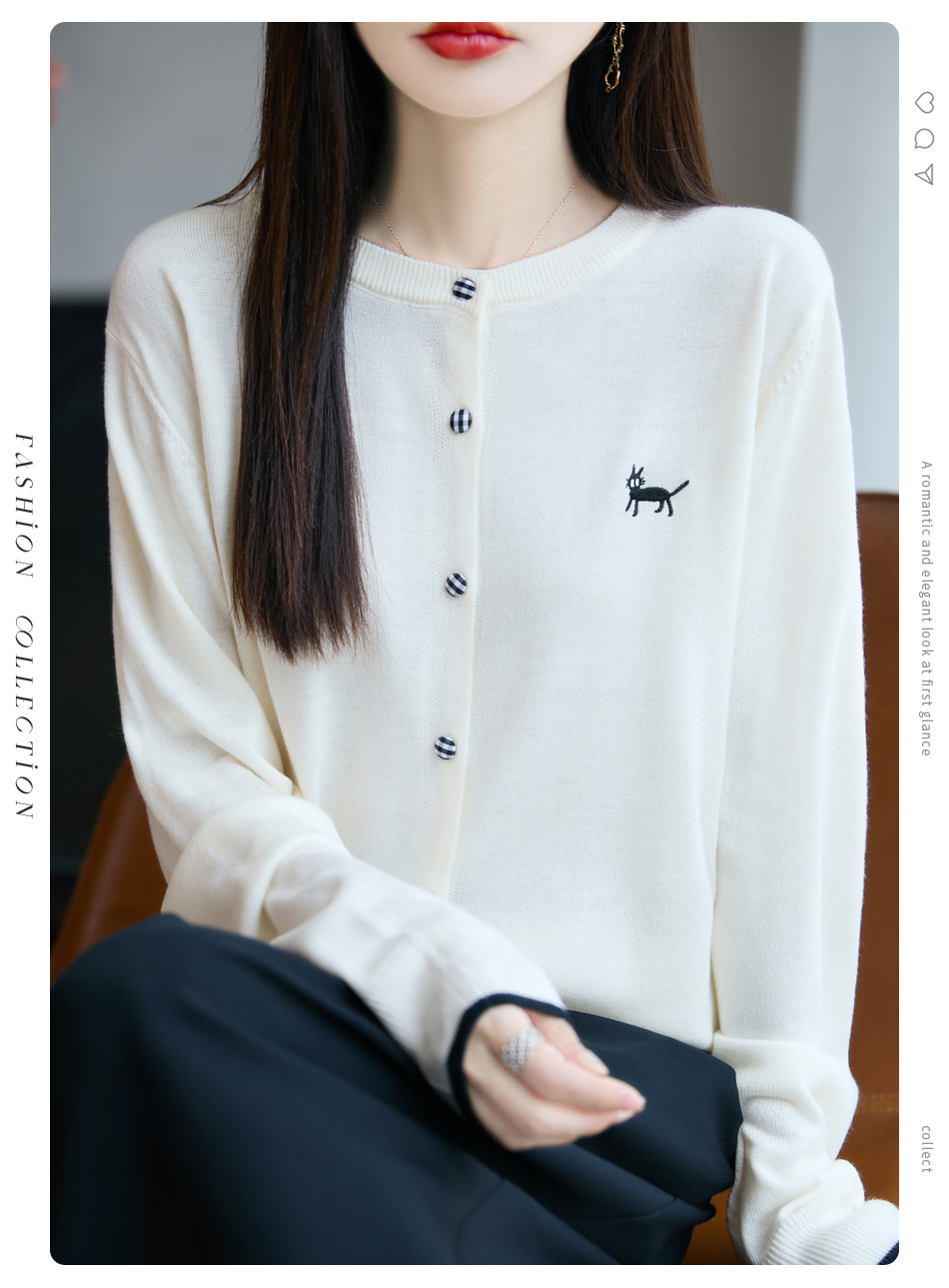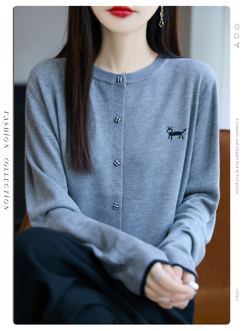 纤束马精纺羊毛小猫刺绣开衫 N-592
