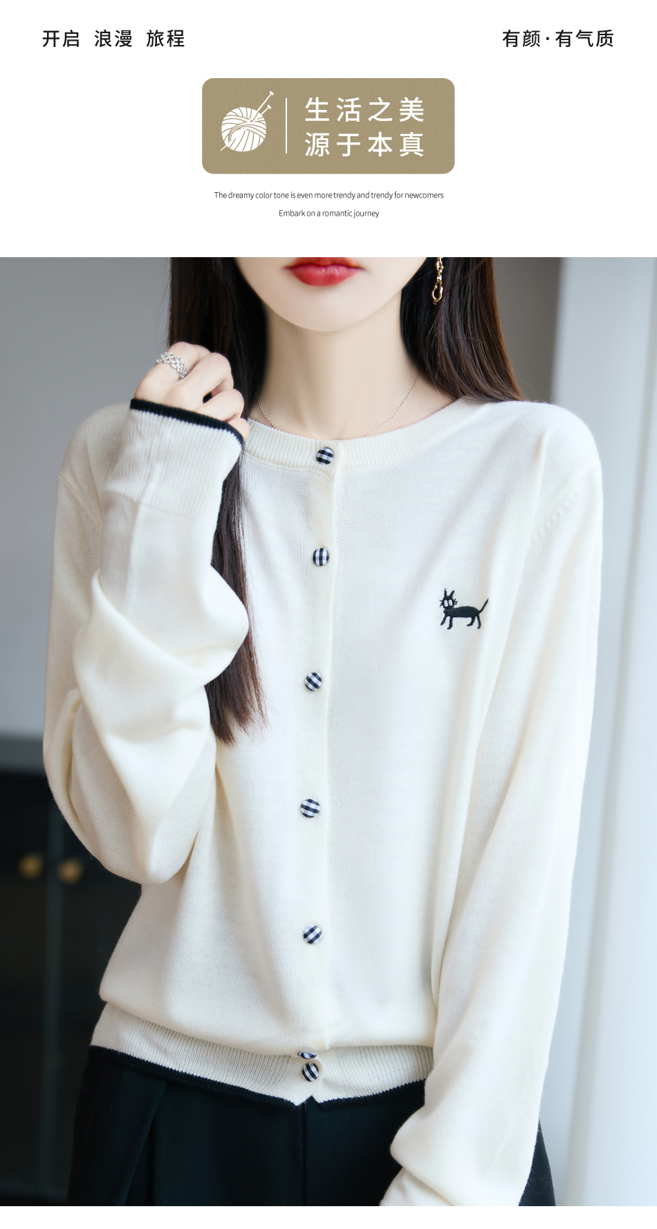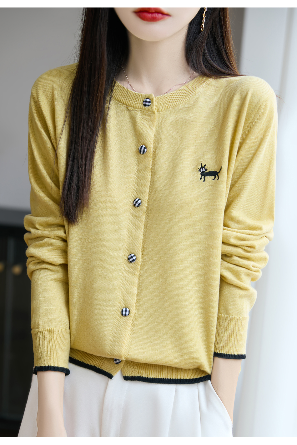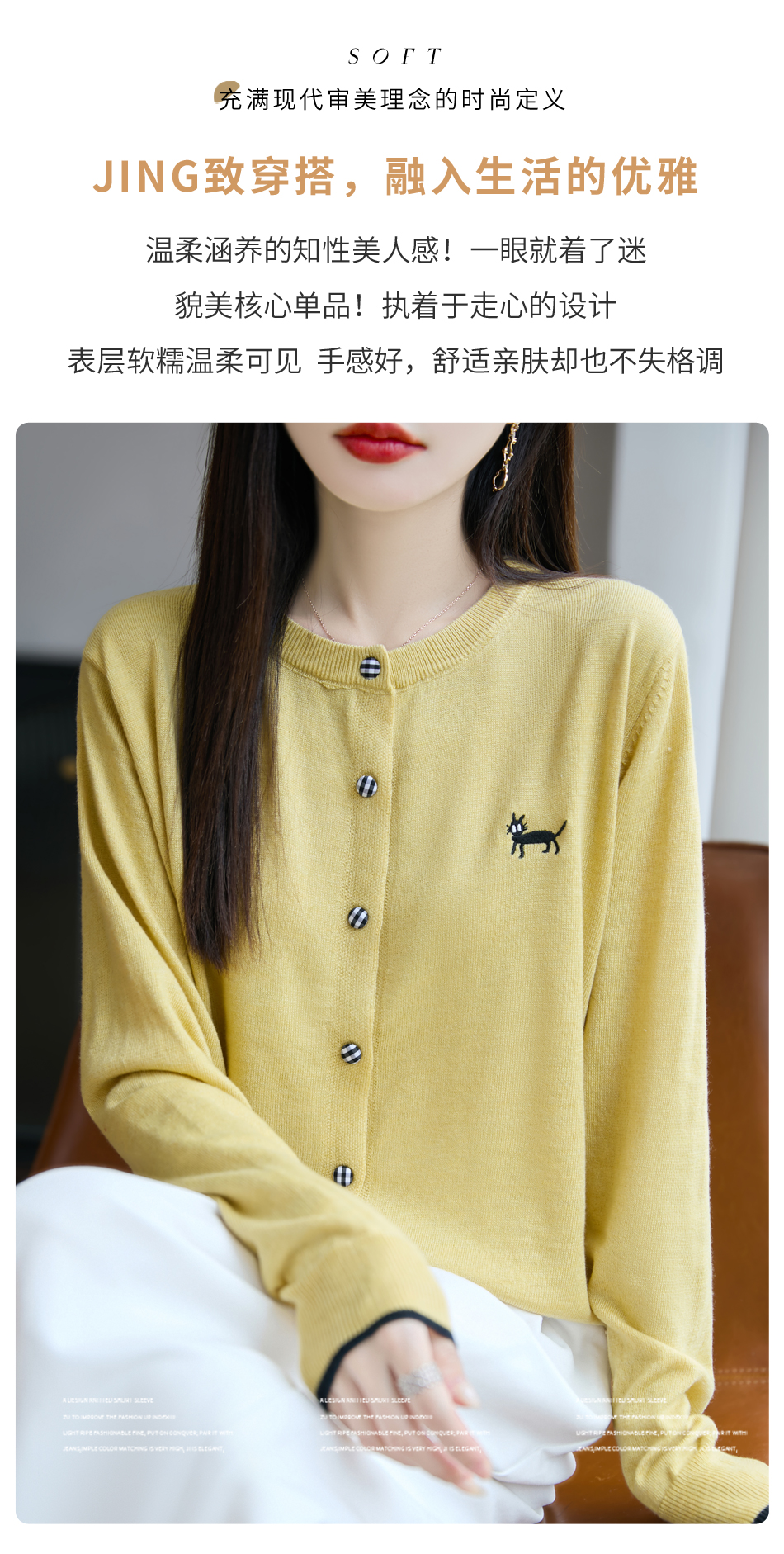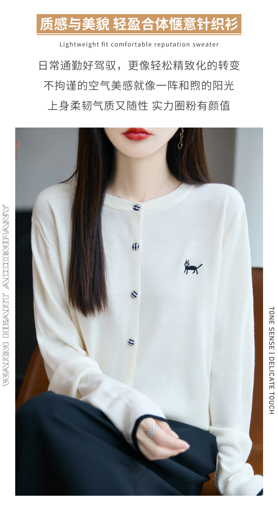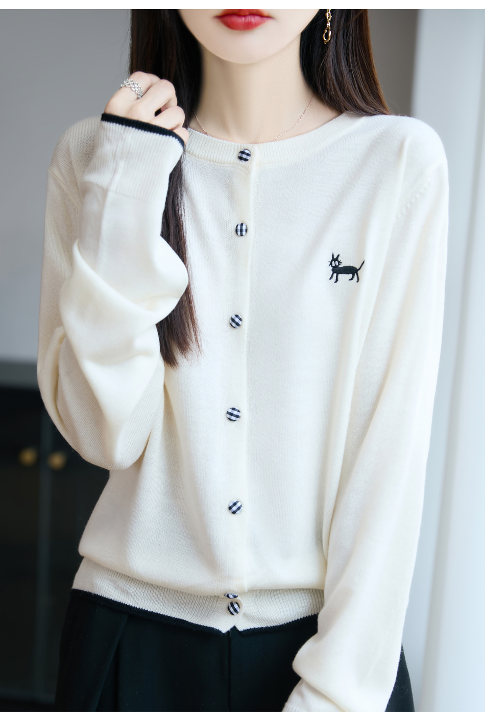 纤束马精纺羊毛小猫刺绣开衫 N-592
