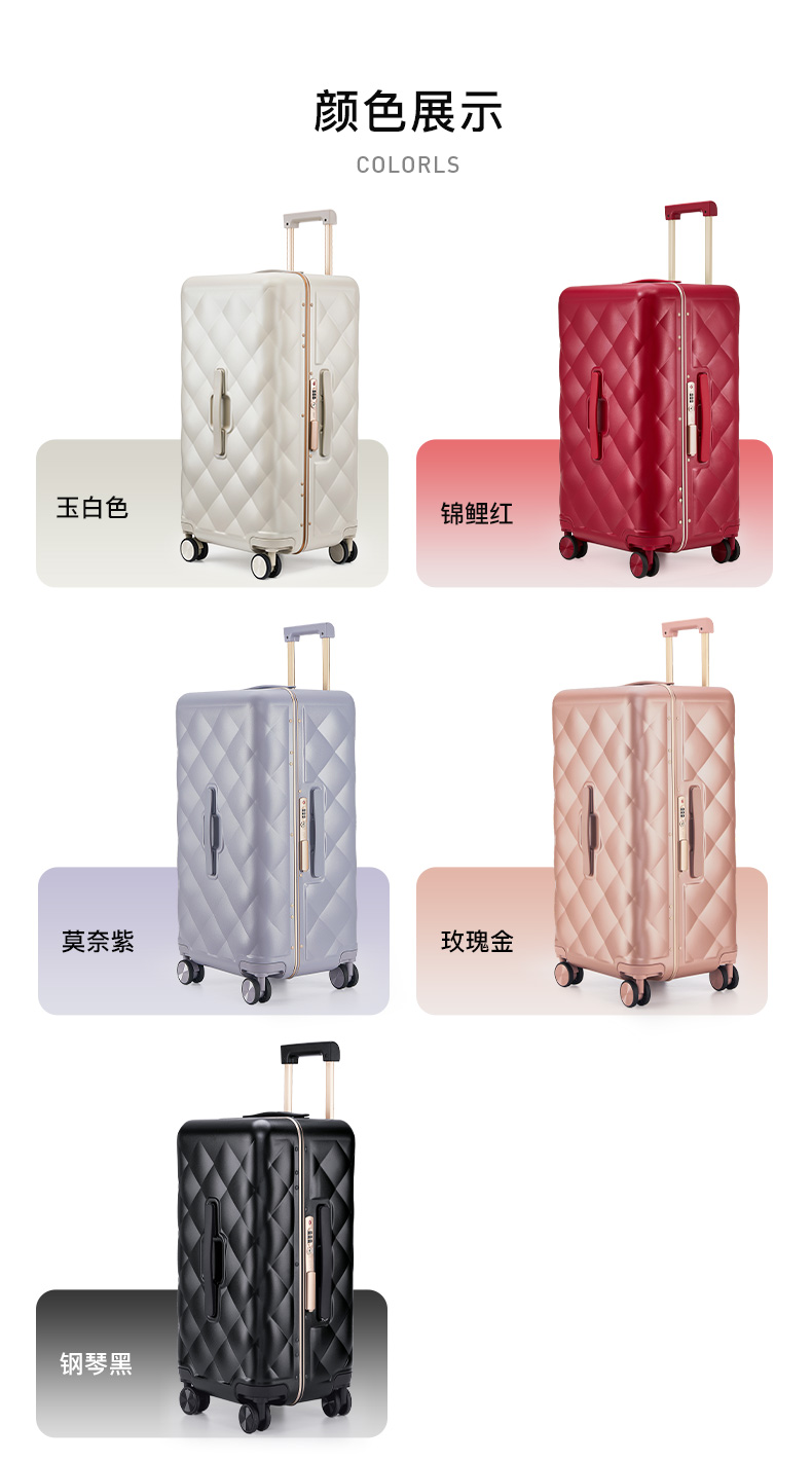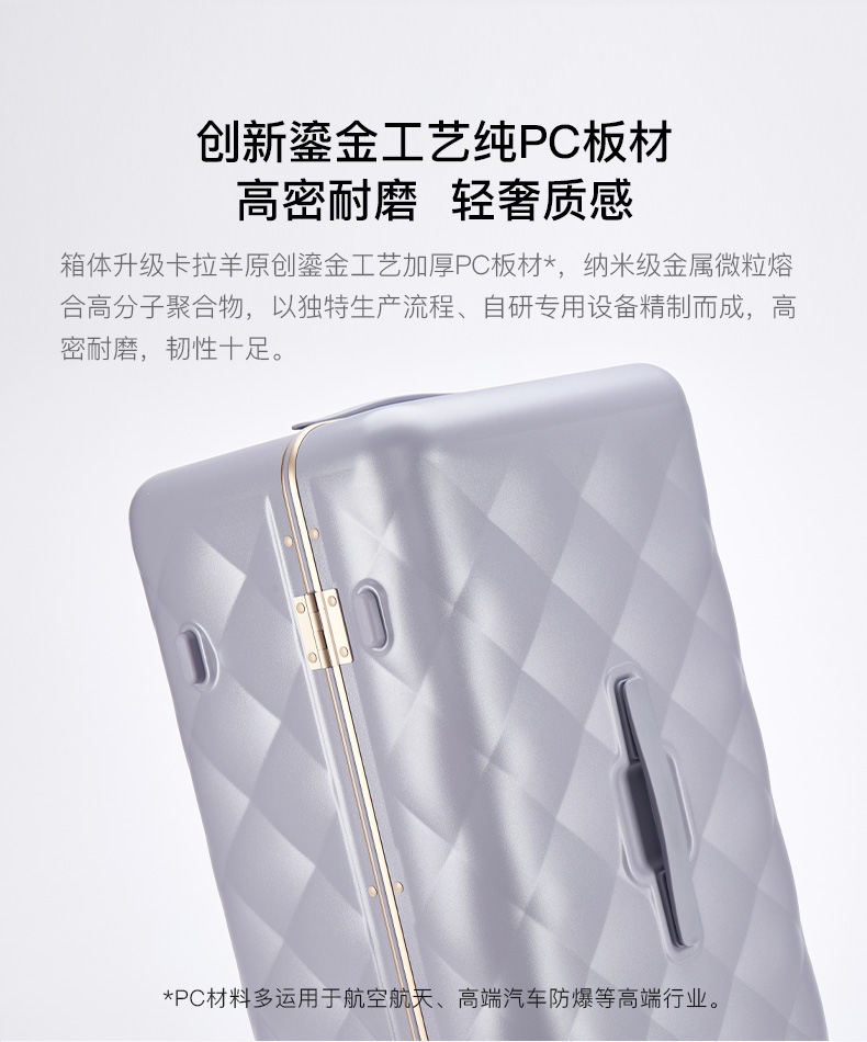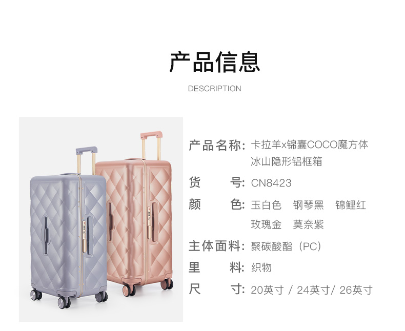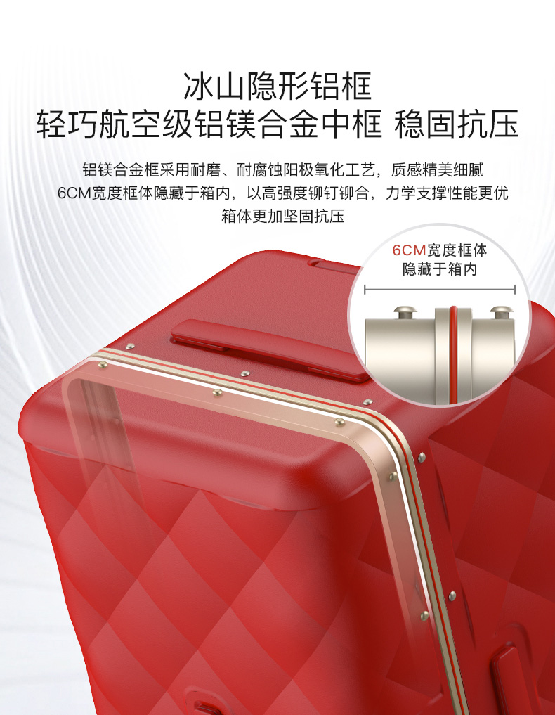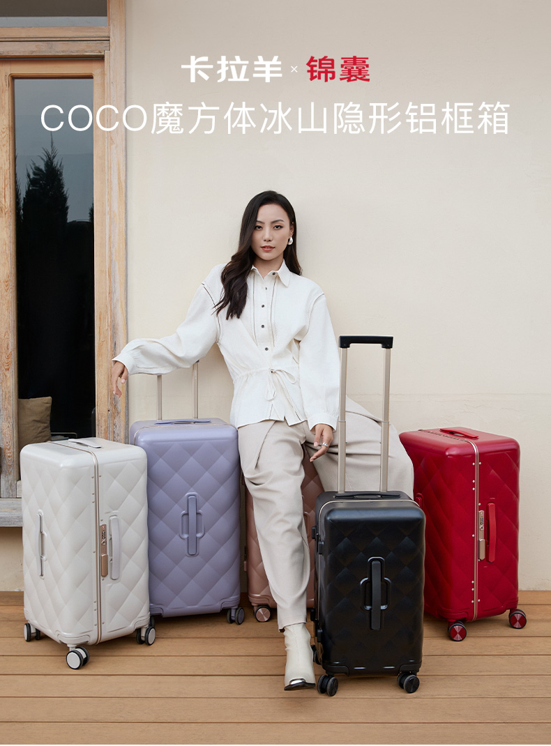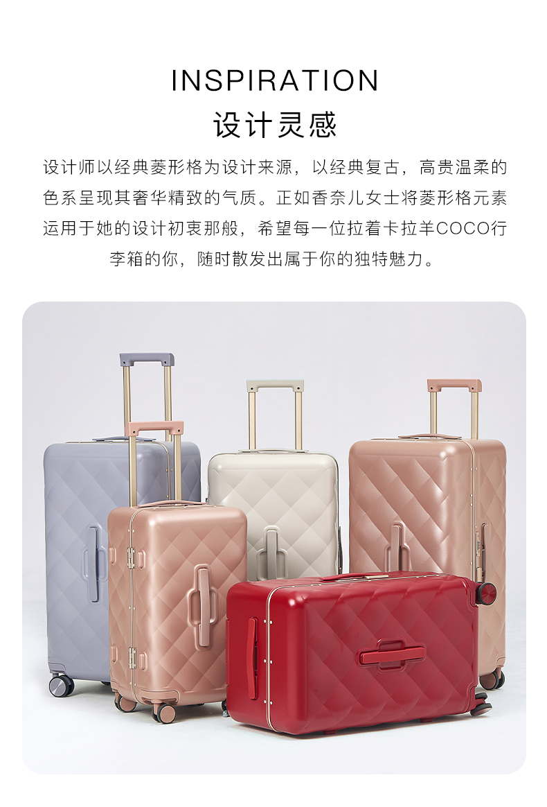 【镜面大平框铝框】卡拉羊锦囊承重抗压榫卯铝框箱鎏金板材防刮抗摔小香风行李箱CN8423