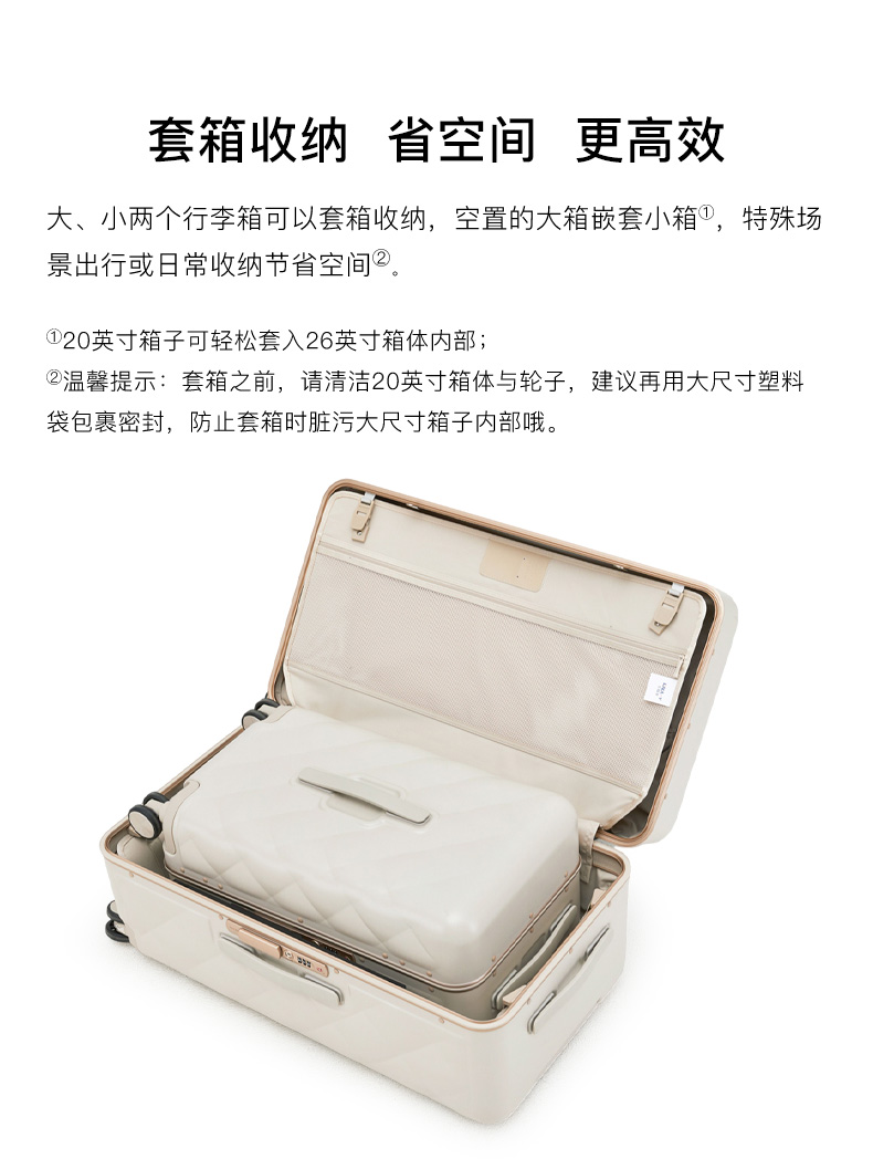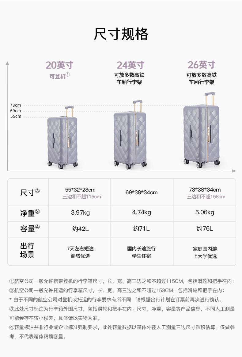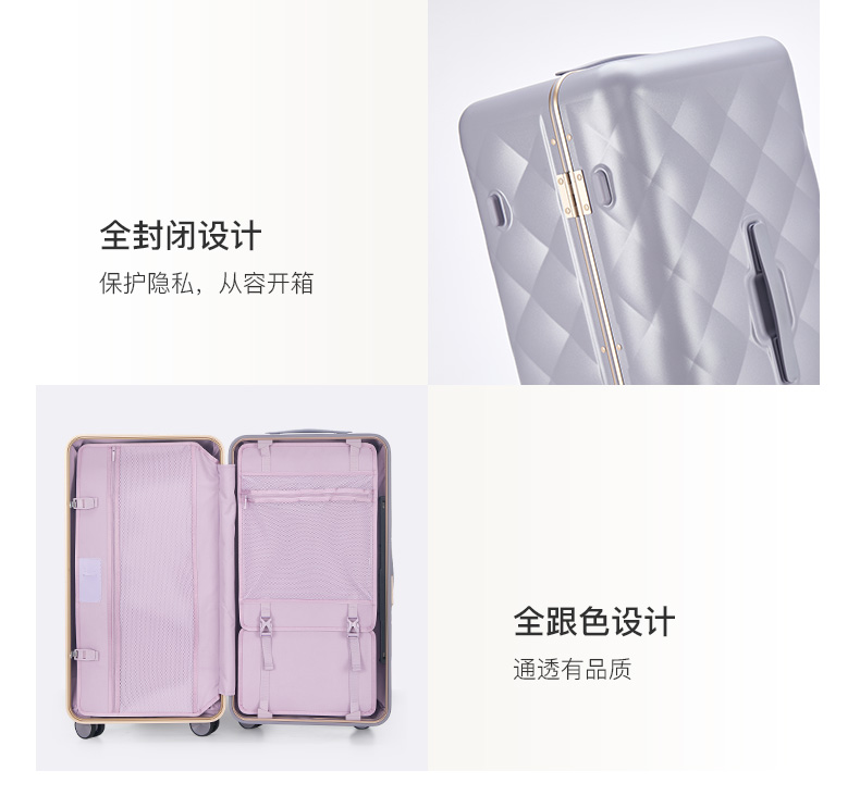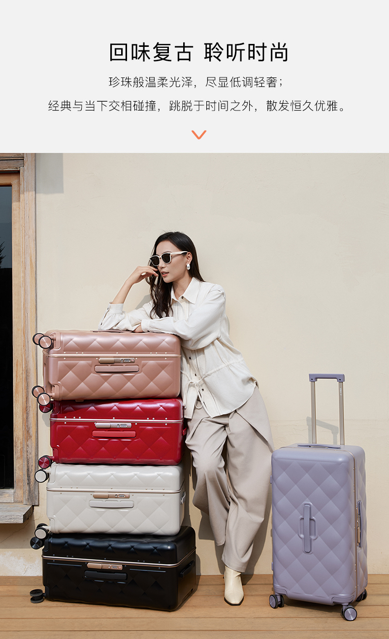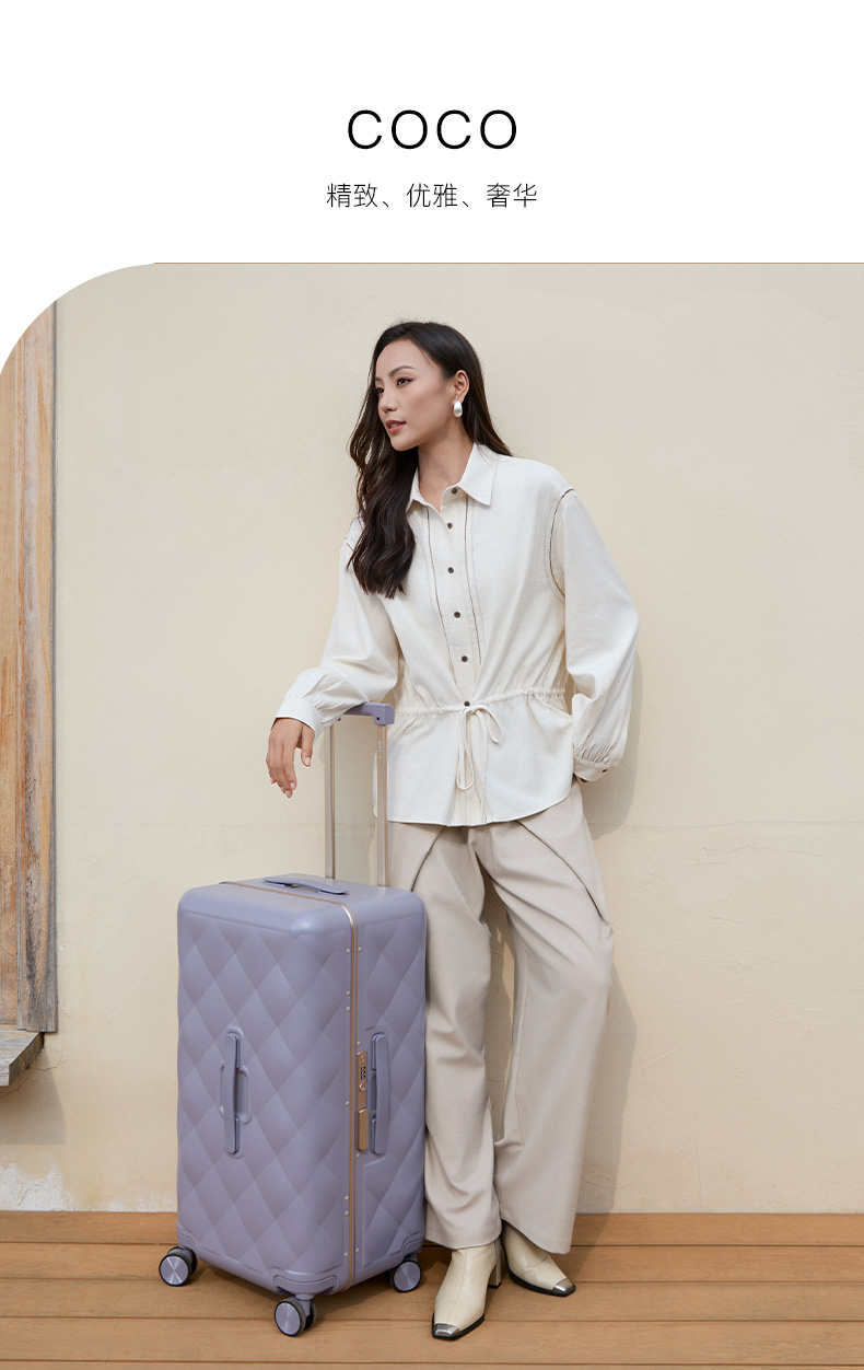 【镜面大平框铝框】卡拉羊锦囊承重抗压榫卯铝框箱鎏金板材防刮抗摔小香风行李箱CN8423