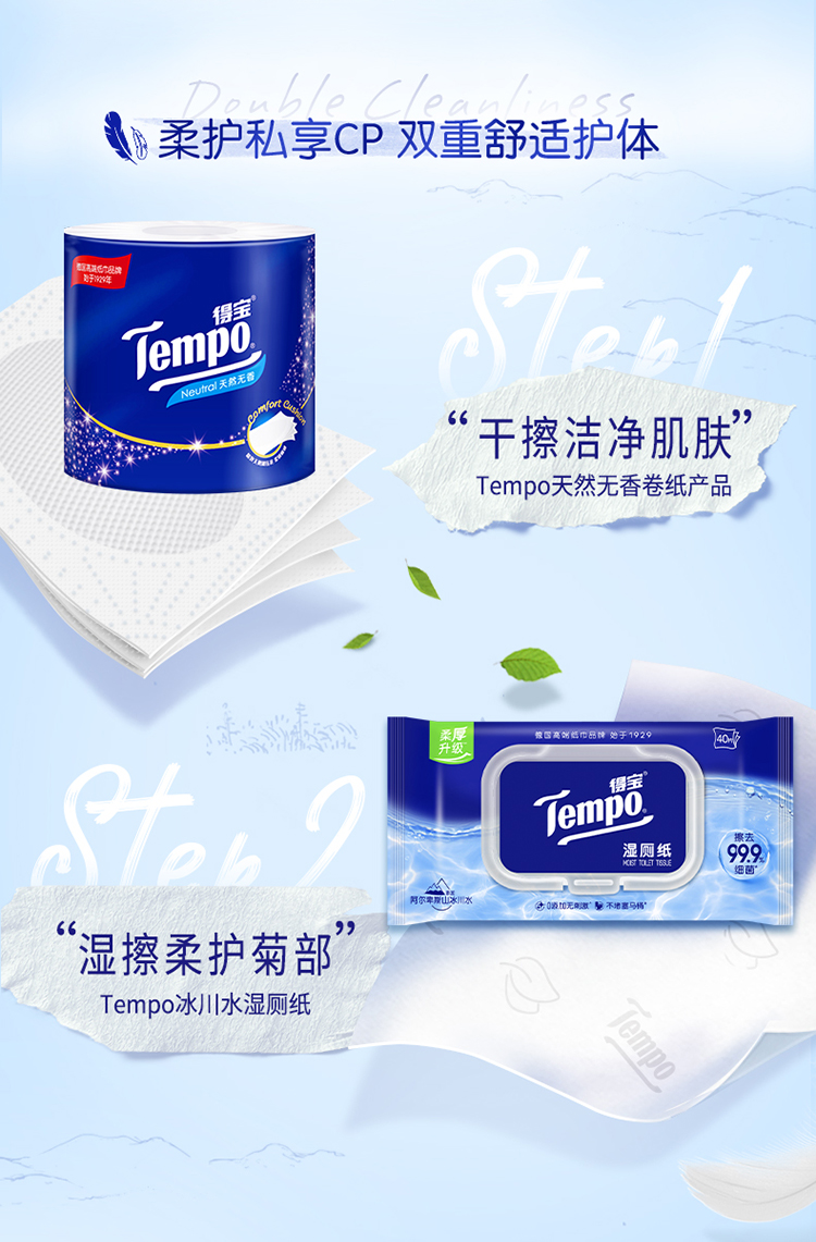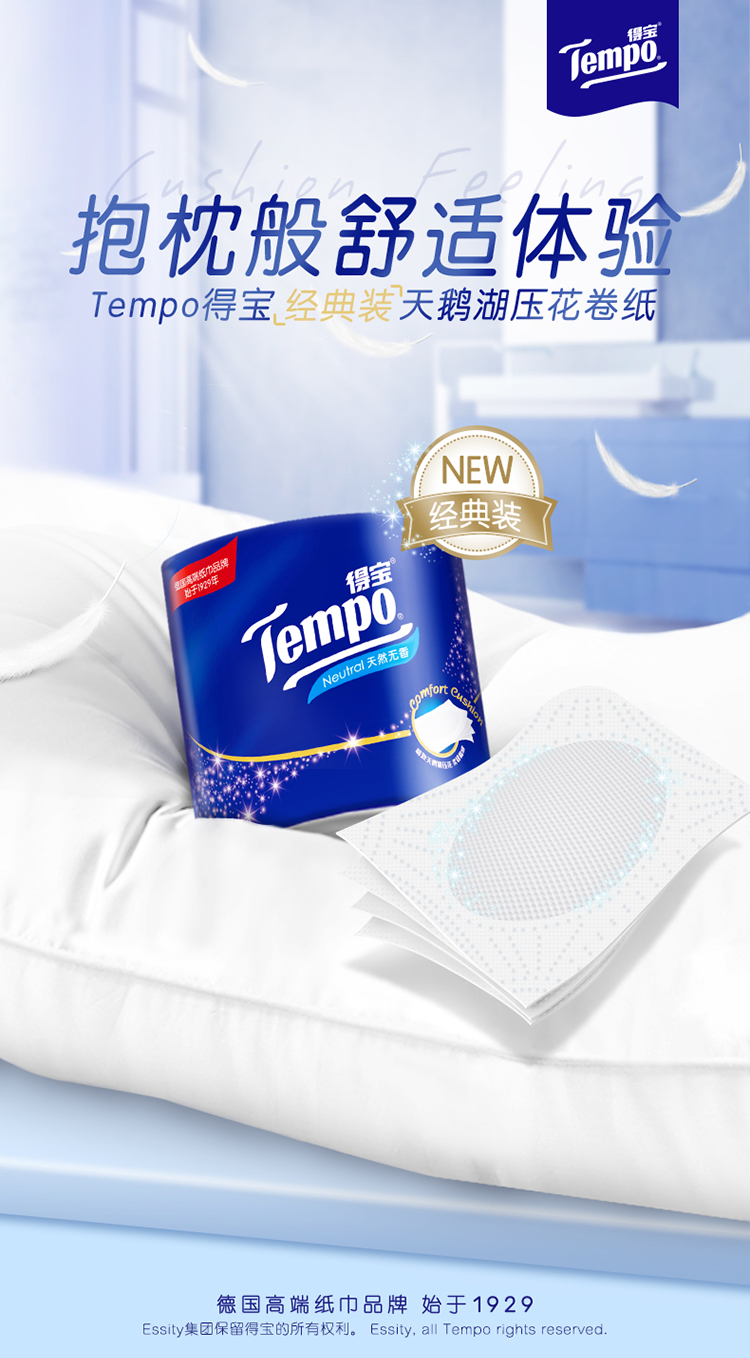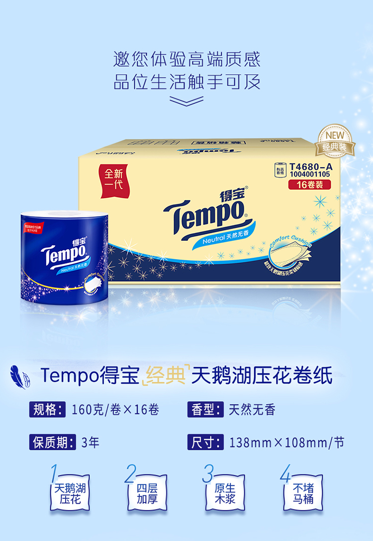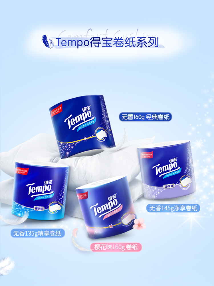 得宝(Tempo) 卷纸有芯压花4层加厚160g16卷 家用卫生纸卷纸卷筒纸实惠装(天然无香)