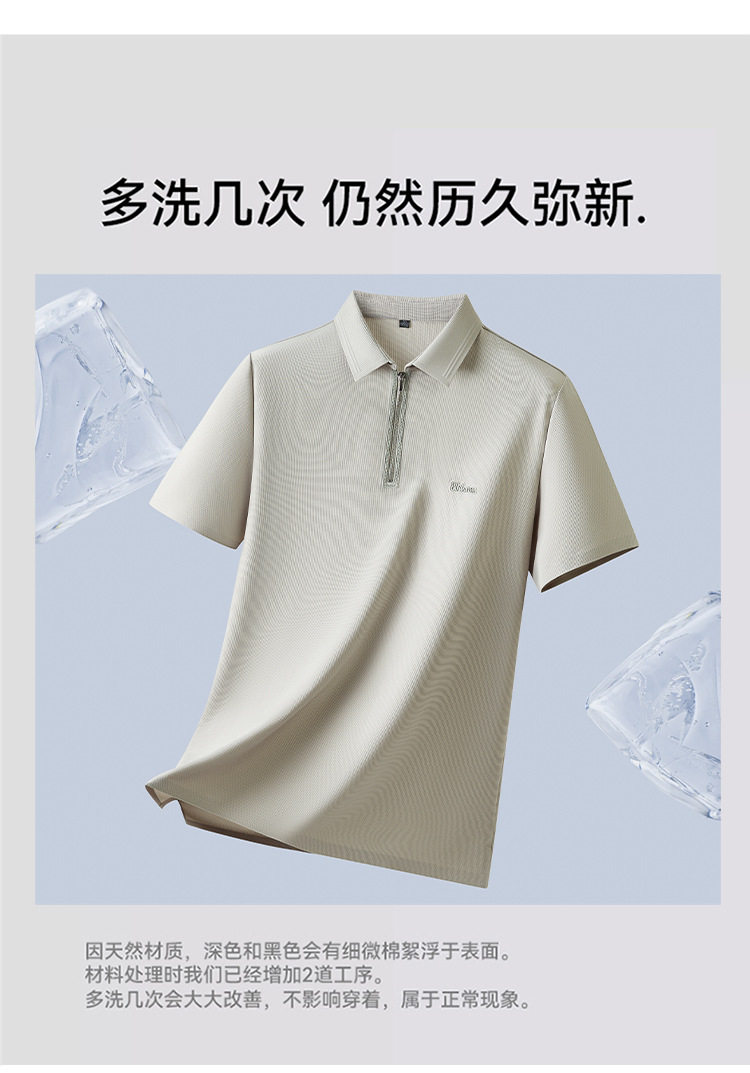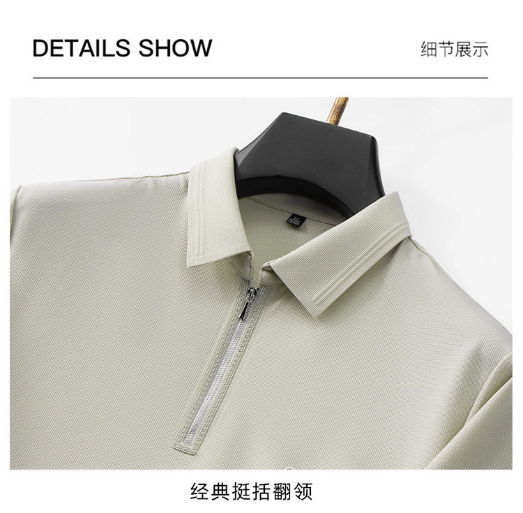 高端冰丝POLO衫休闲商务宽松高端拉链短袖t恤弹力免烫半袖体恤衫    PSL-PSL8095 商品图3
