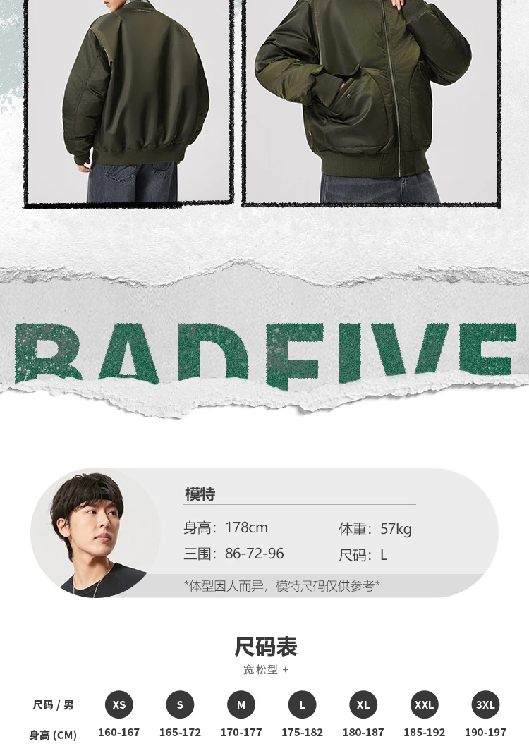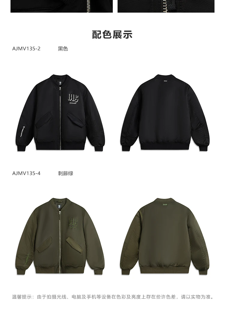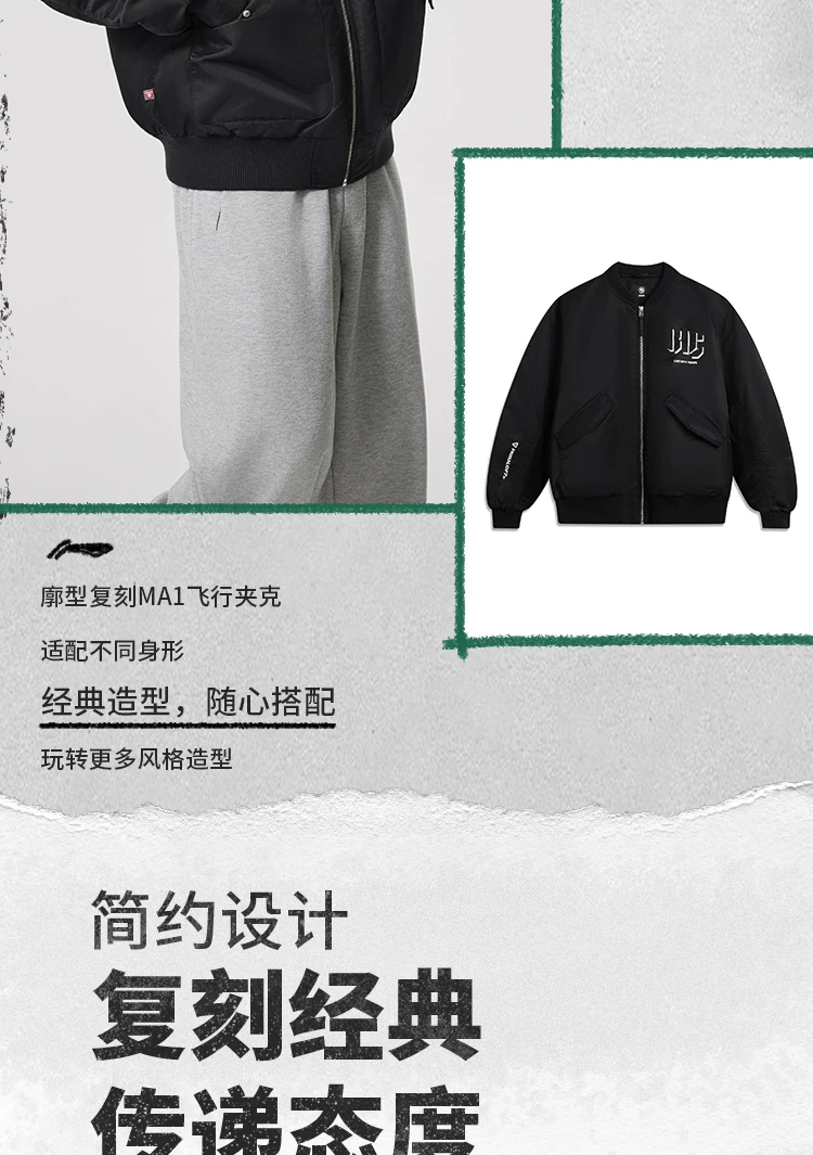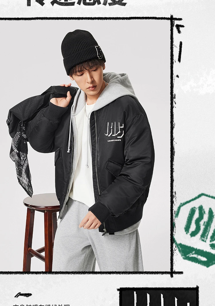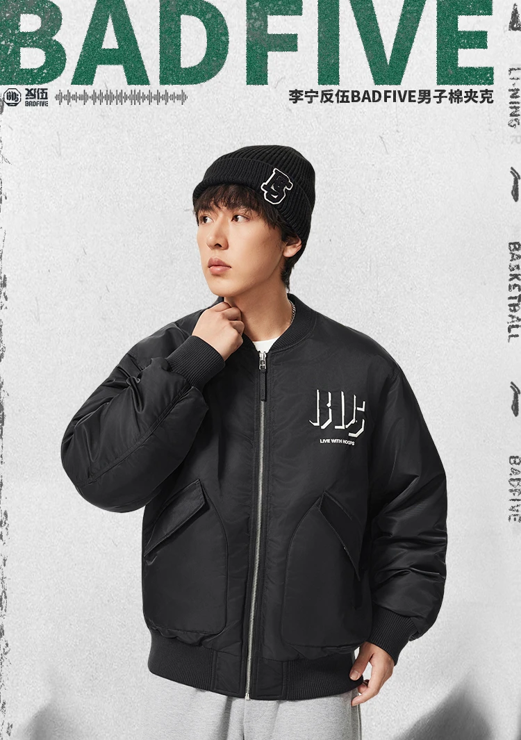 李宁反伍BADFIVE男子立体裁剪宽松棉夹克AJMV135