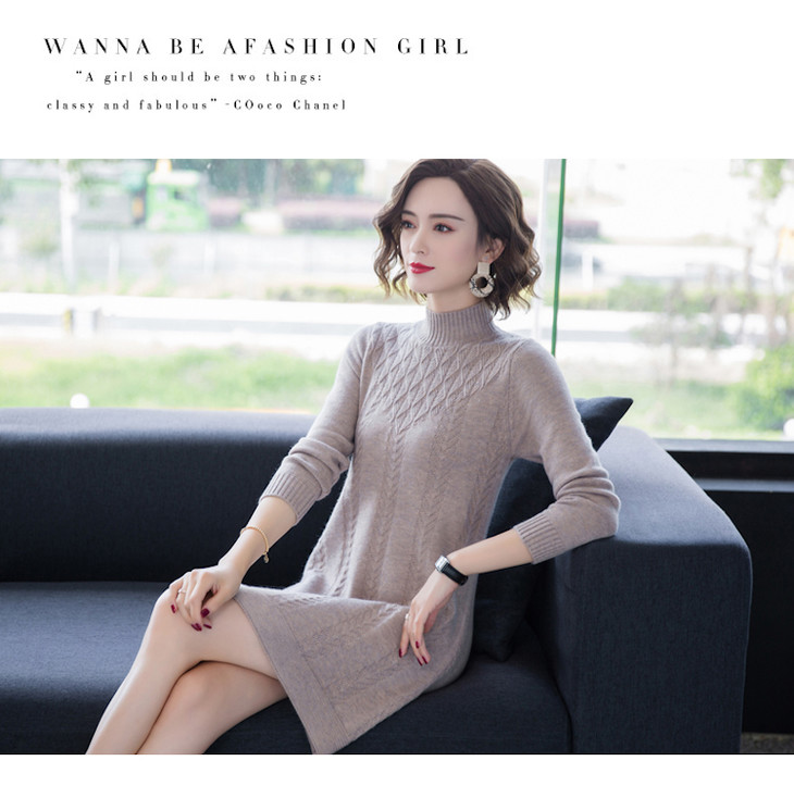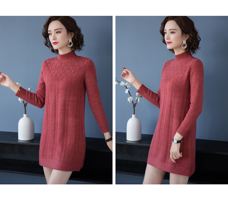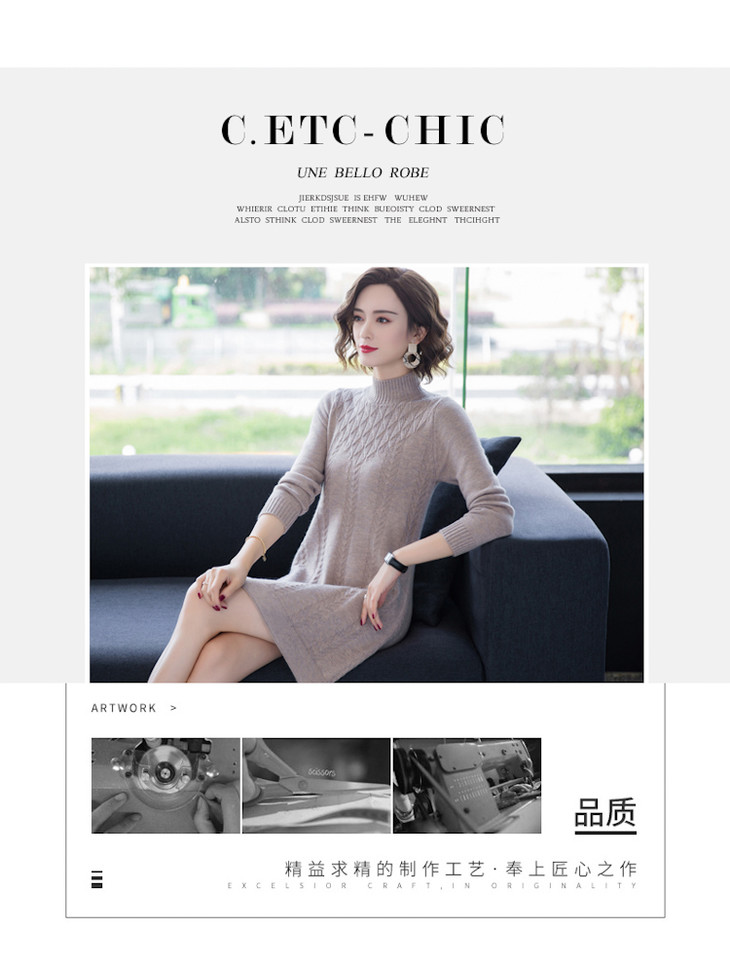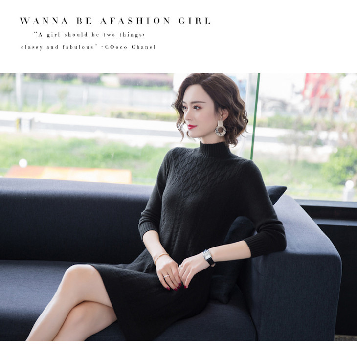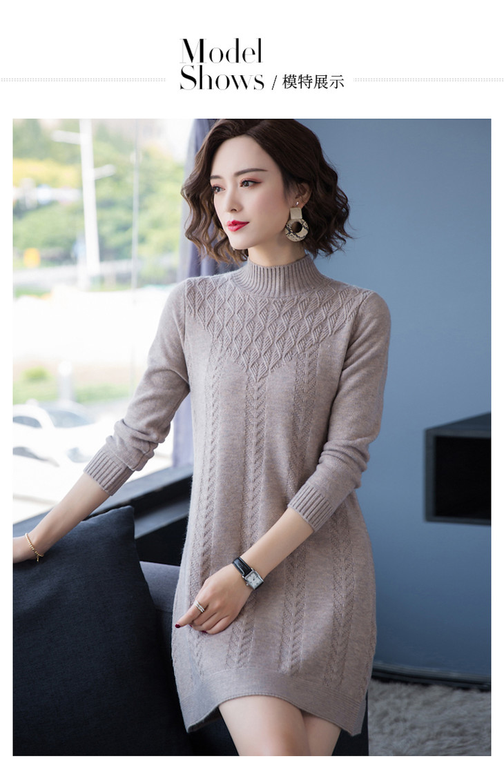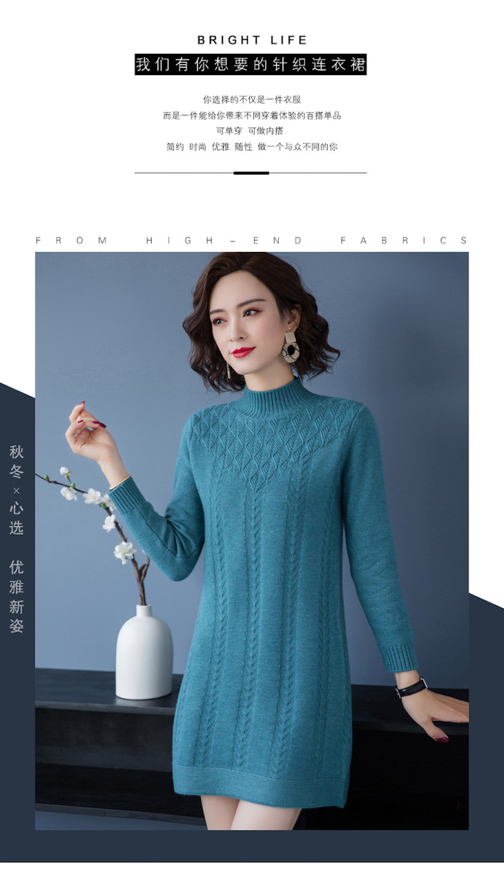 W-913 秋冬女士针织衫中长款毛衣裙洋气妈妈装大码打底衫连衣裙