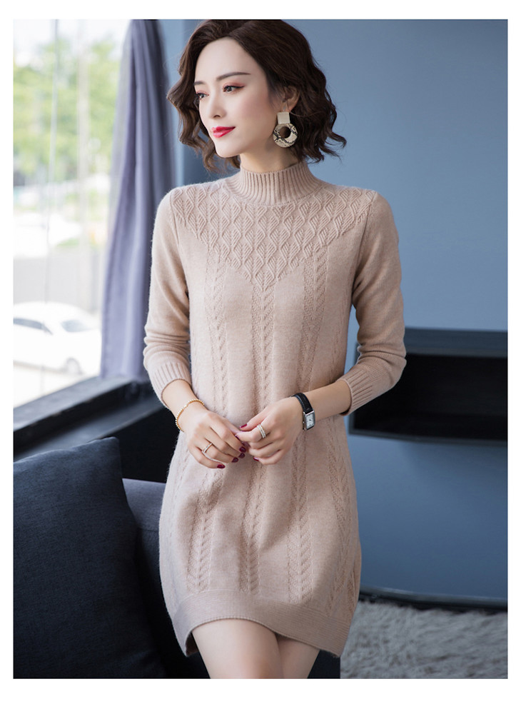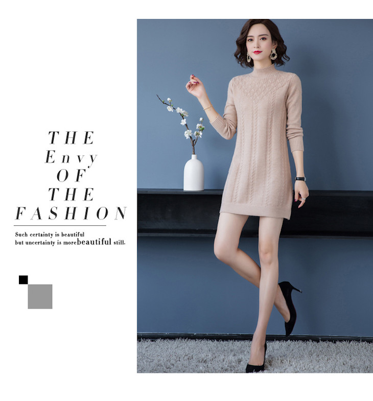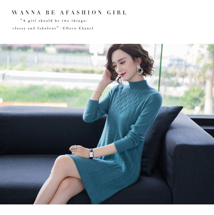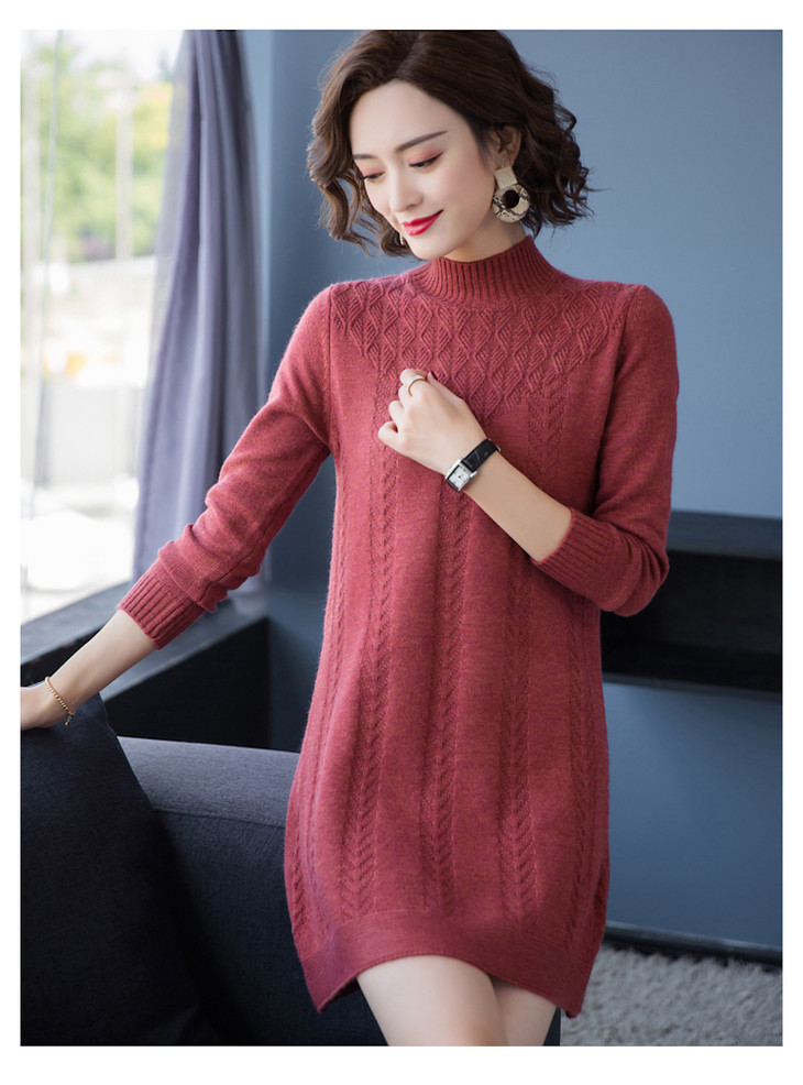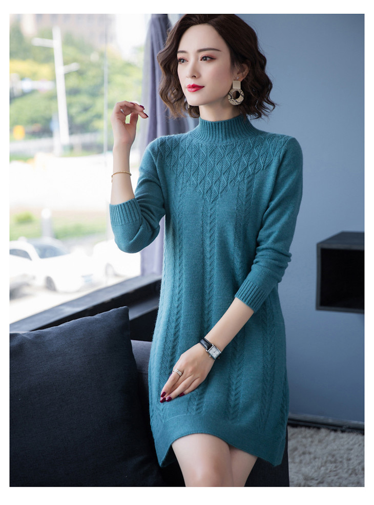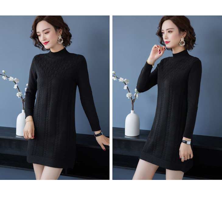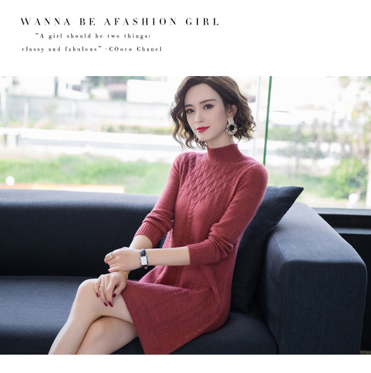 W-913 秋冬女士针织衫中长款毛衣裙洋气妈妈装大码打底衫连衣裙