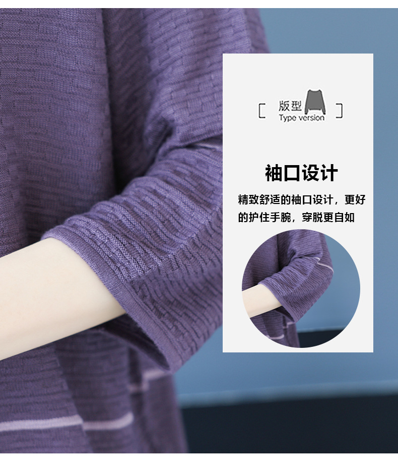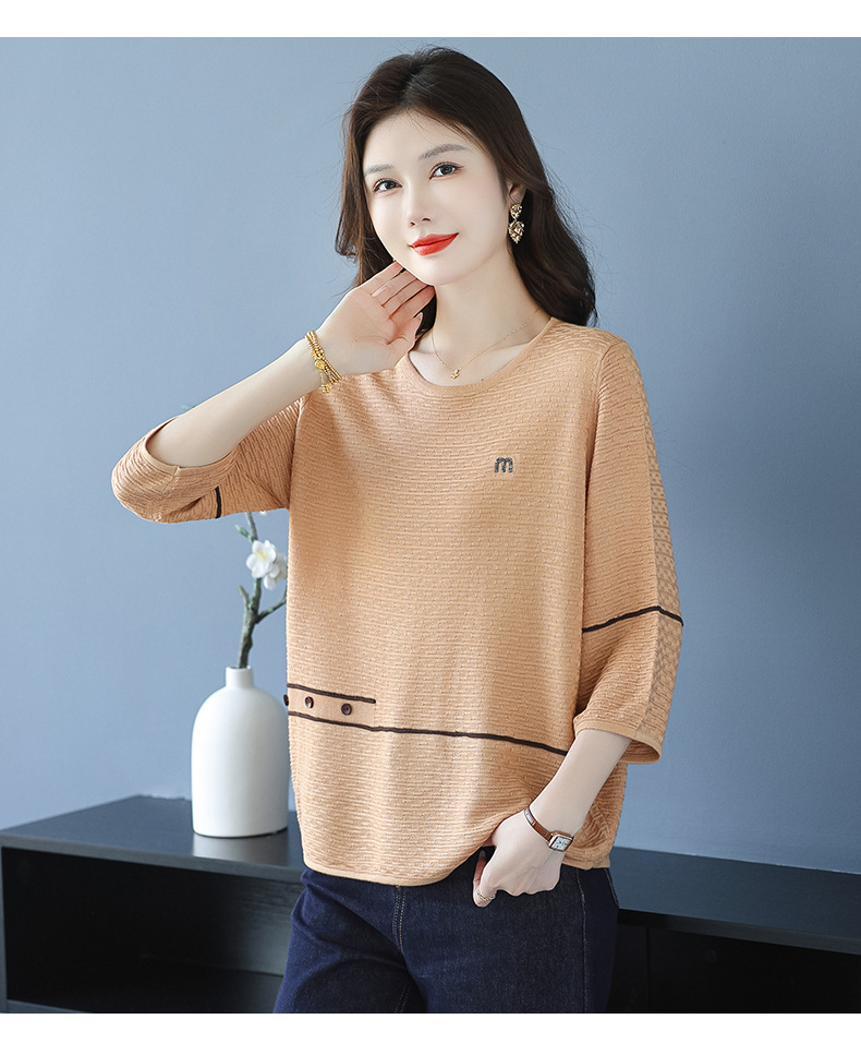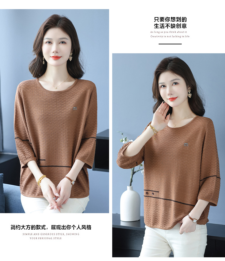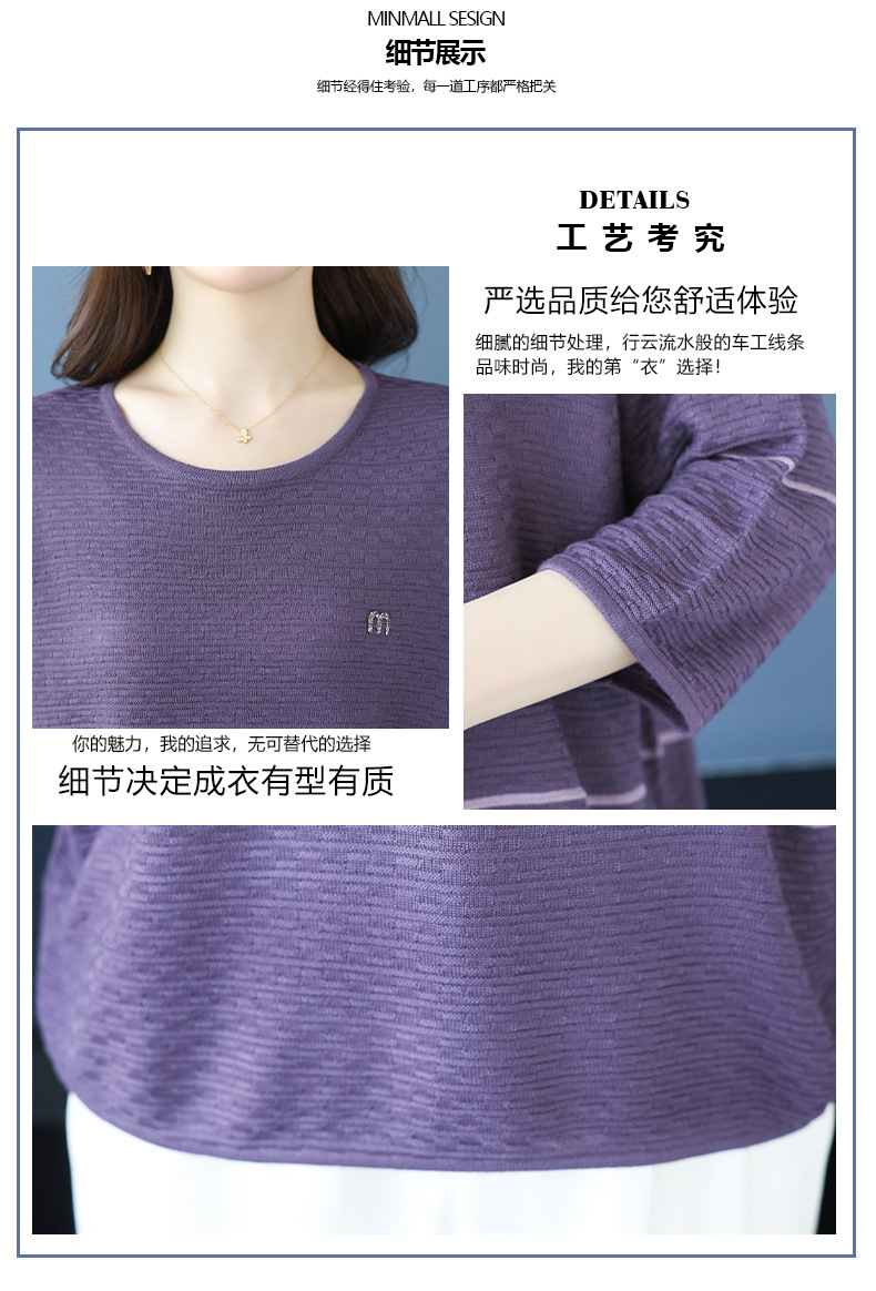 CC13-98010薄款女士中袖针织衫女2025春秋宽松大码遮肚圆领中年妈妈针织衫