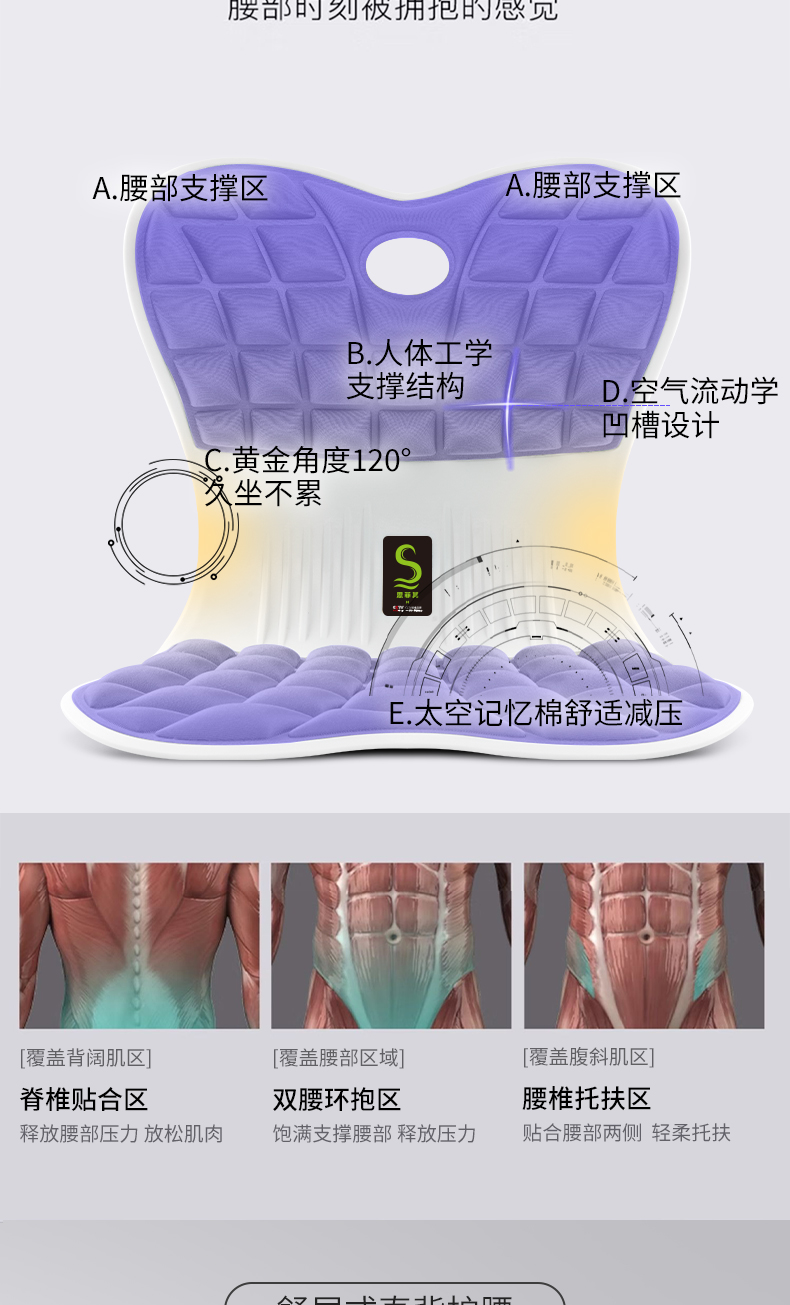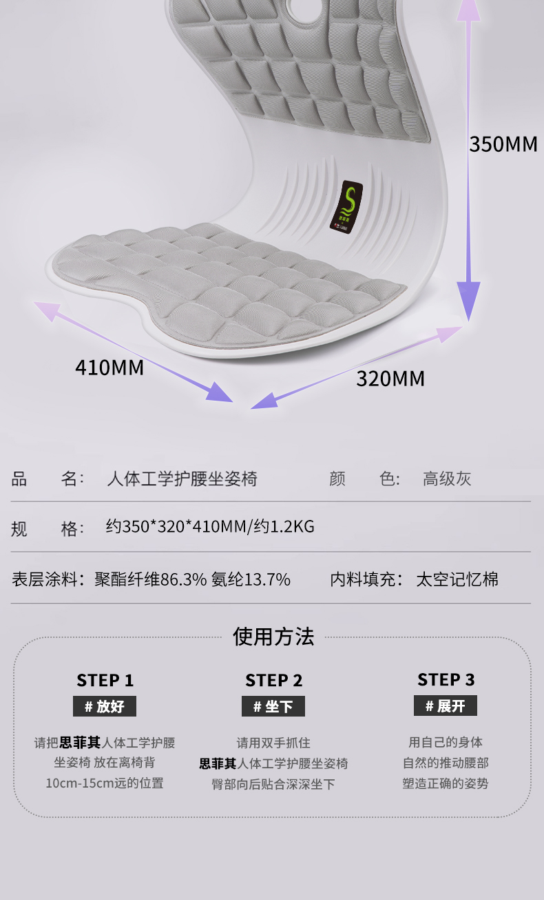 【升级四代】思菲其护腰矫姿坐垫椅 贴合设计久坐不累 老少皆宜 人体工学座椅 护腰美臀 引导正确坐姿