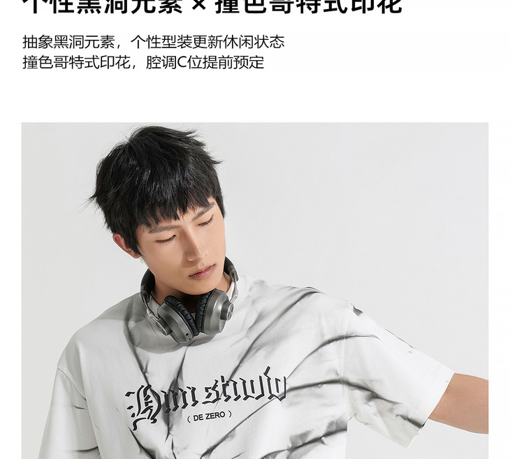 HIM漢崇 舒适休闲短袖T恤衫简约撞色印花宽松圆领上衣 2026夏季
