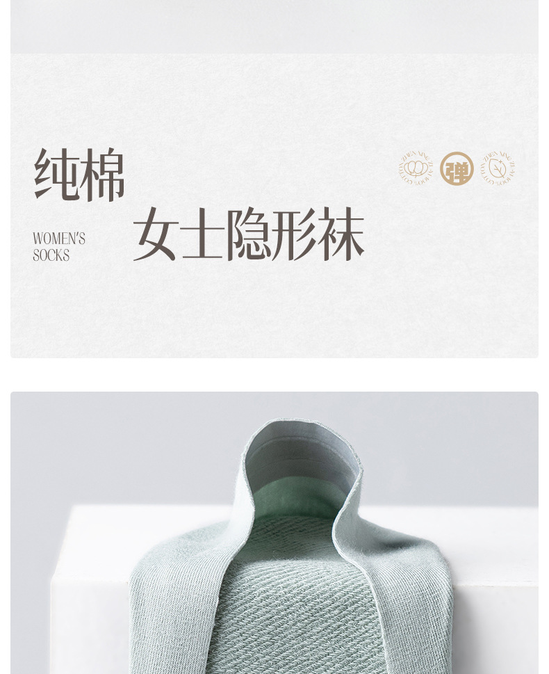 雀说3双装船袜100%棉硅胶安全抗菌防滑抗起球不掉隐形袜短袜AL2160