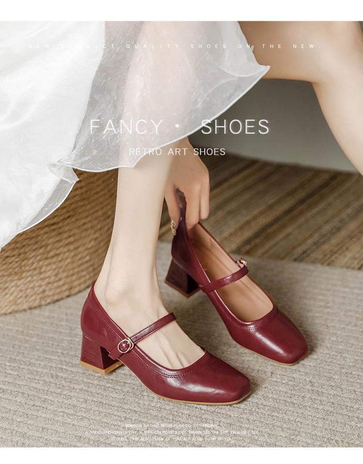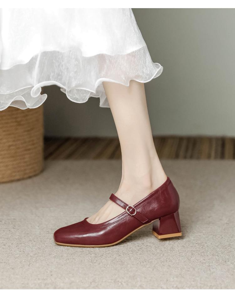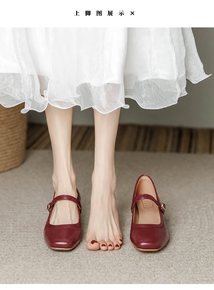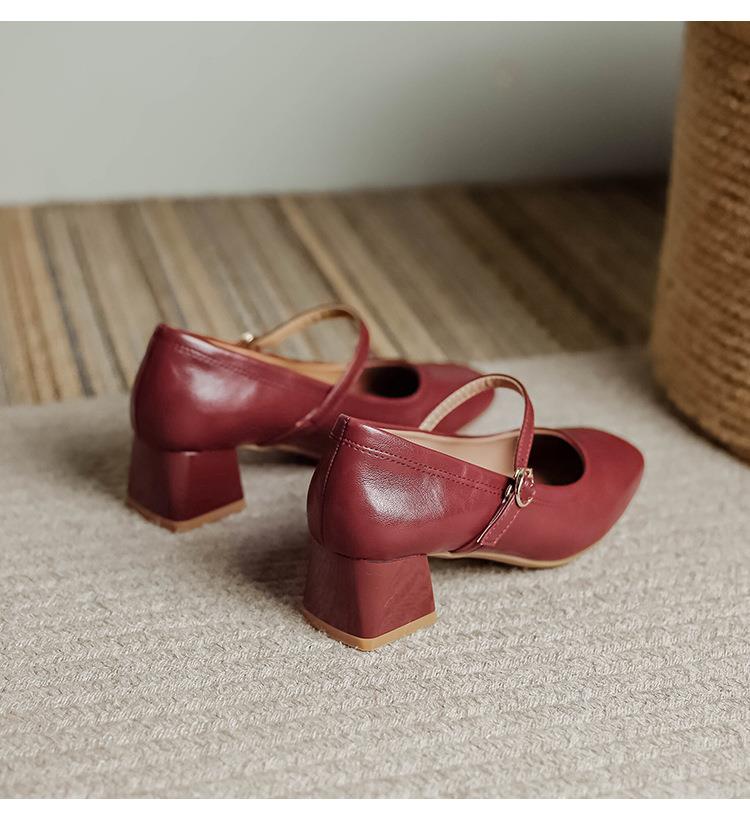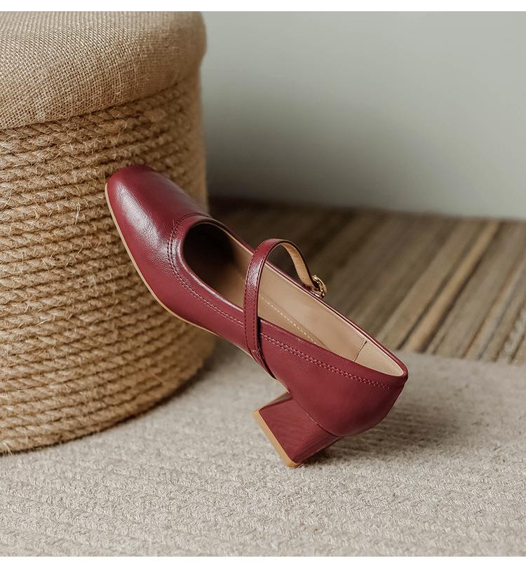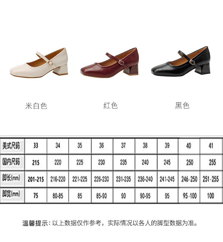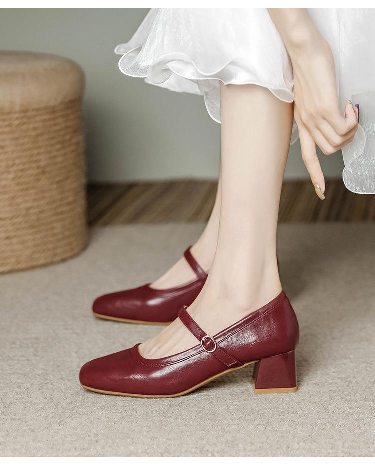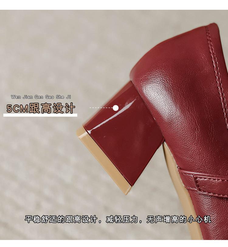 【秒杀】法式复古玛丽珍女鞋子春秋新款气质红色高跟鞋方头粗跟浅口女单鞋