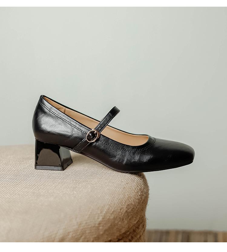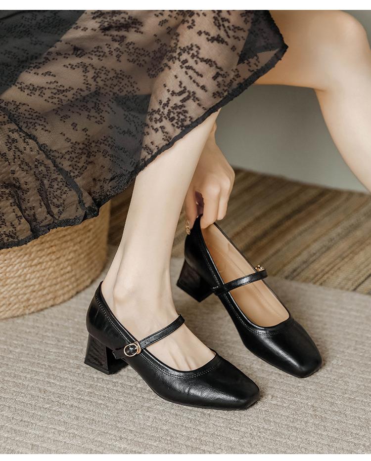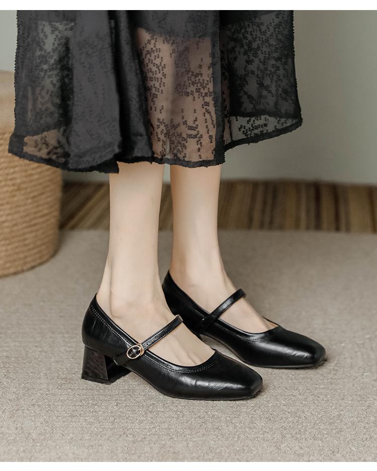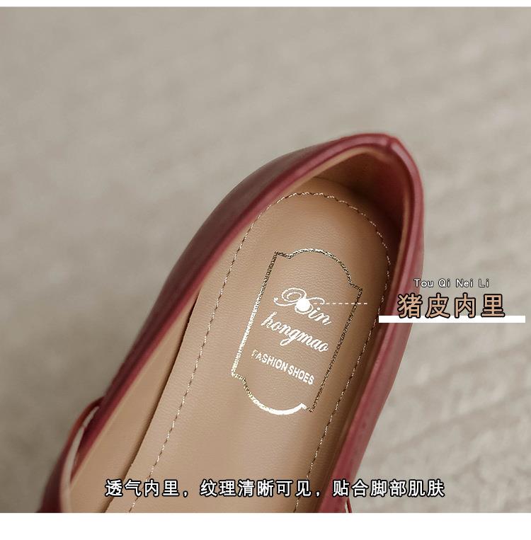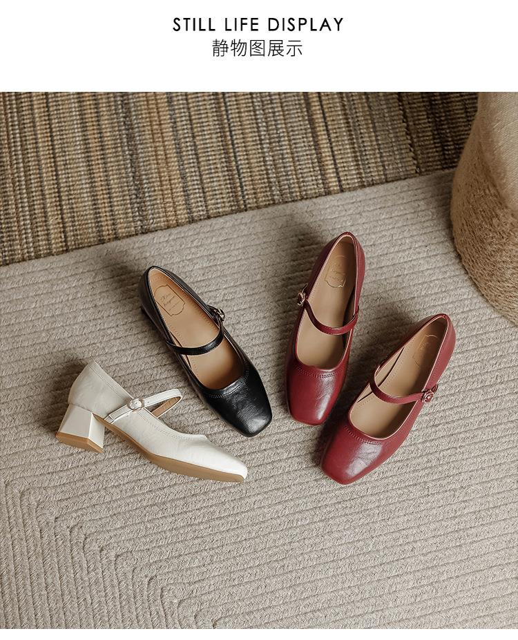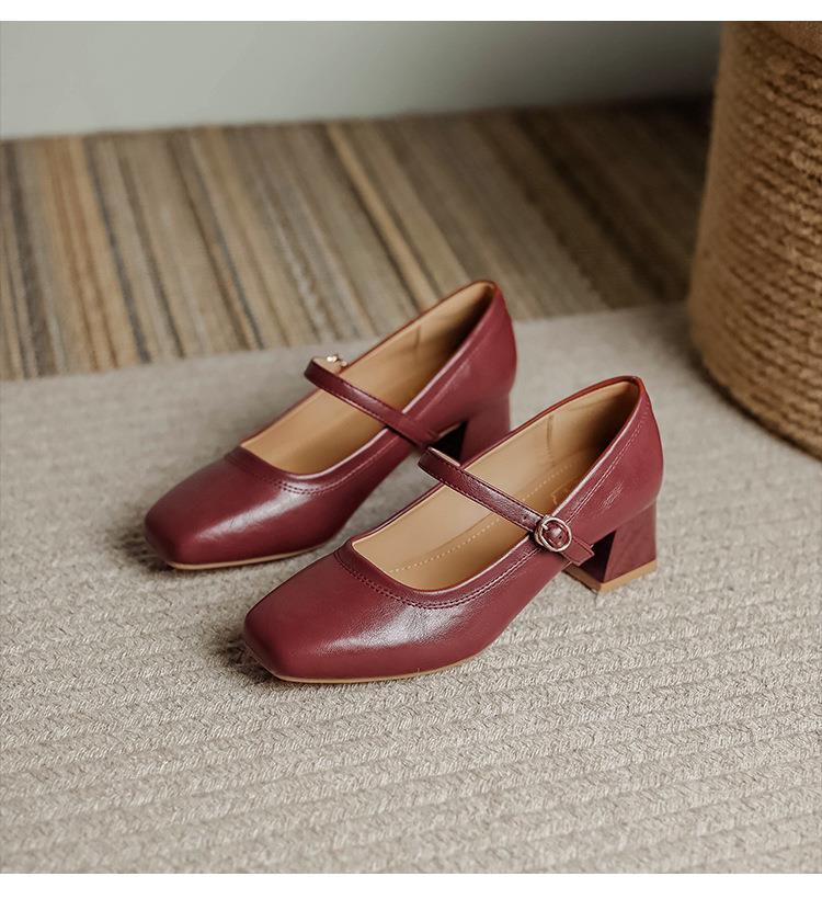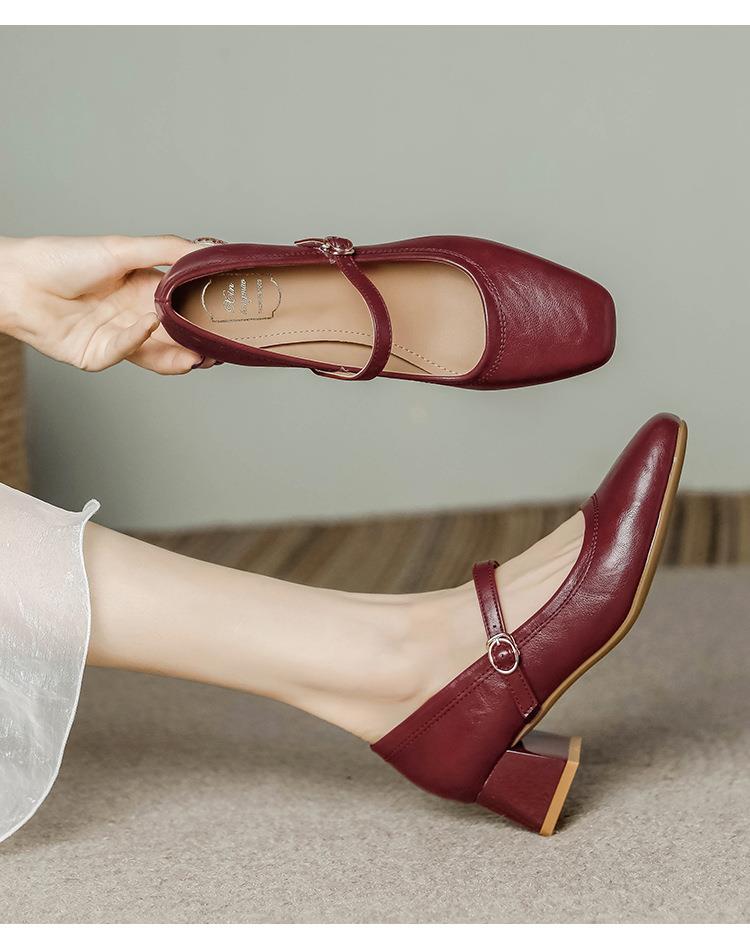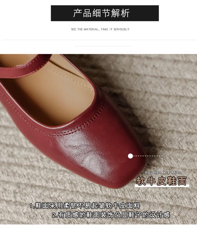 【秒杀】法式复古玛丽珍女鞋子春秋新款气质红色高跟鞋方头粗跟浅口女单鞋