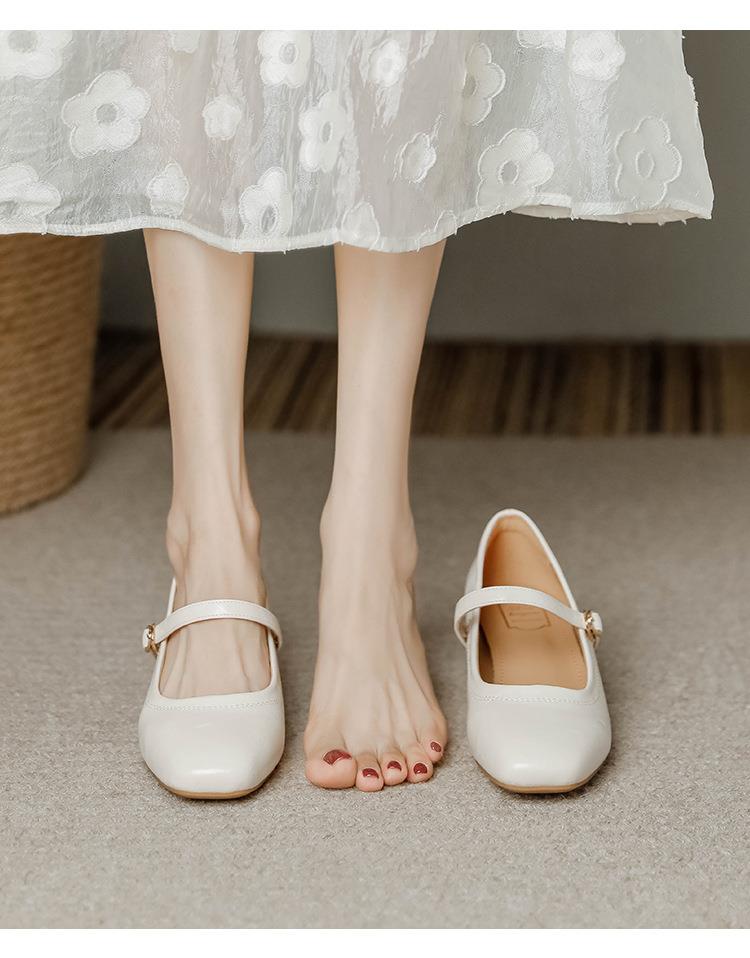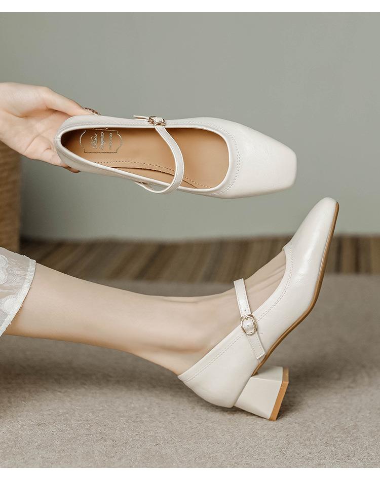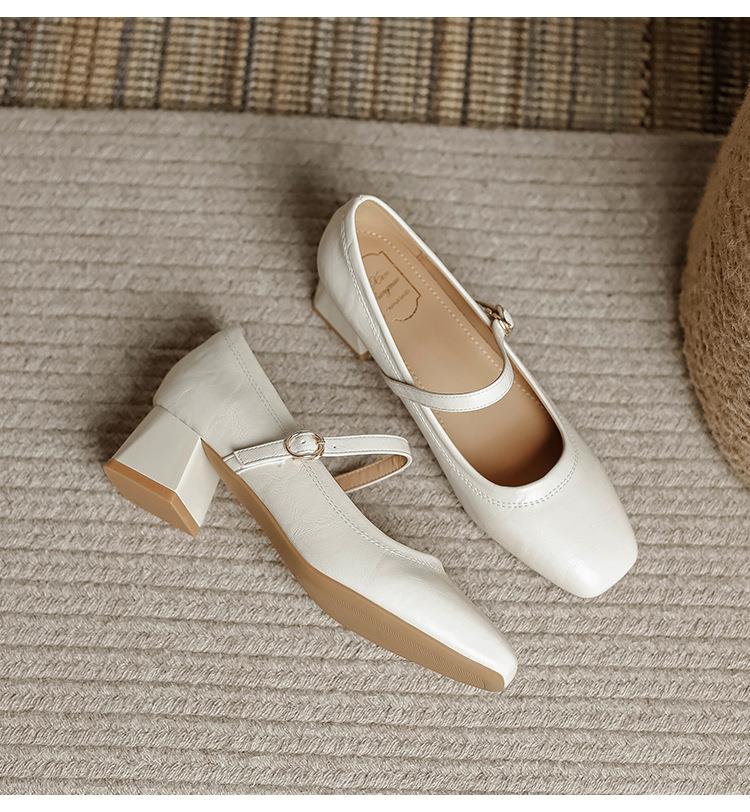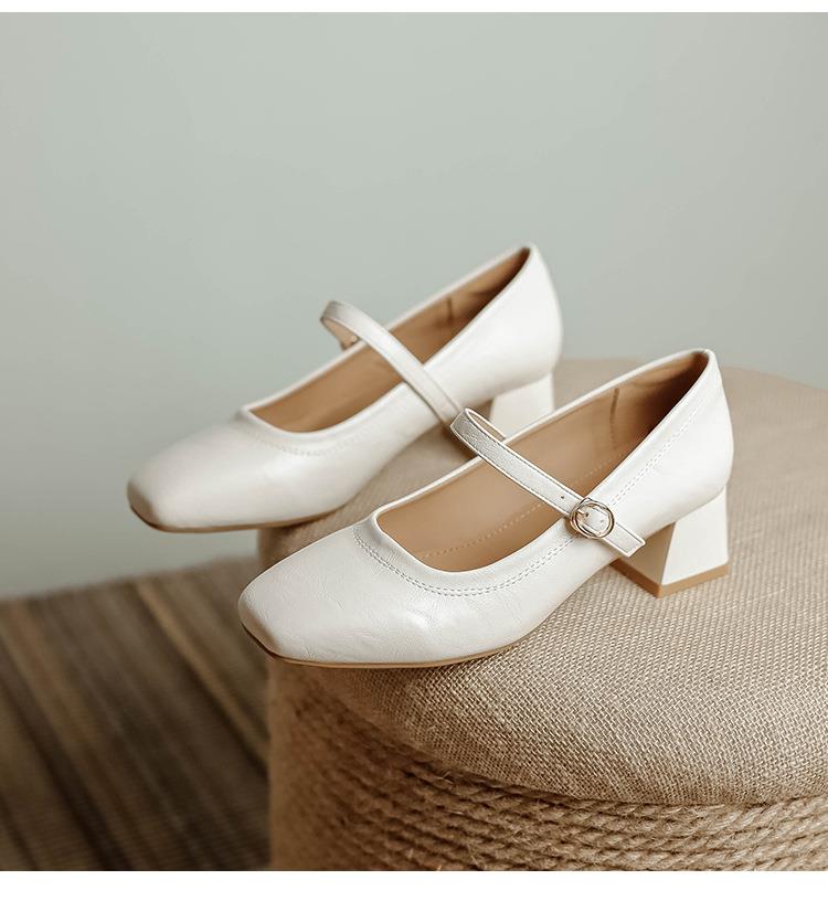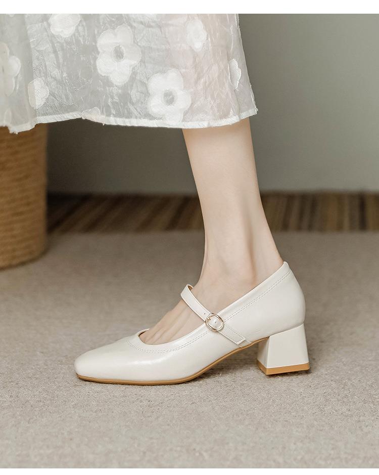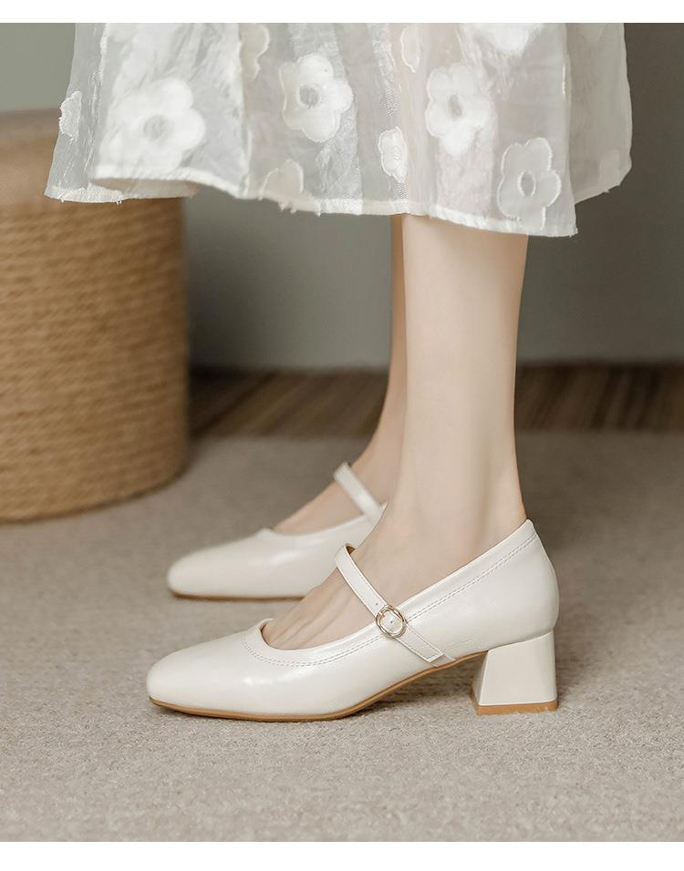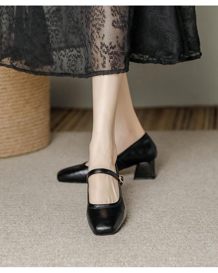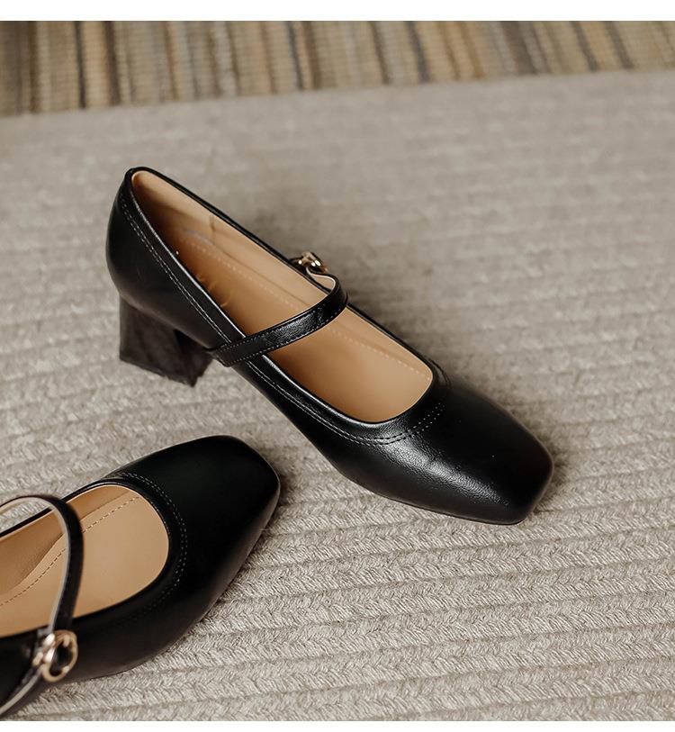 【秒杀】法式复古玛丽珍女鞋子春秋新款气质红色高跟鞋方头粗跟浅口女单鞋