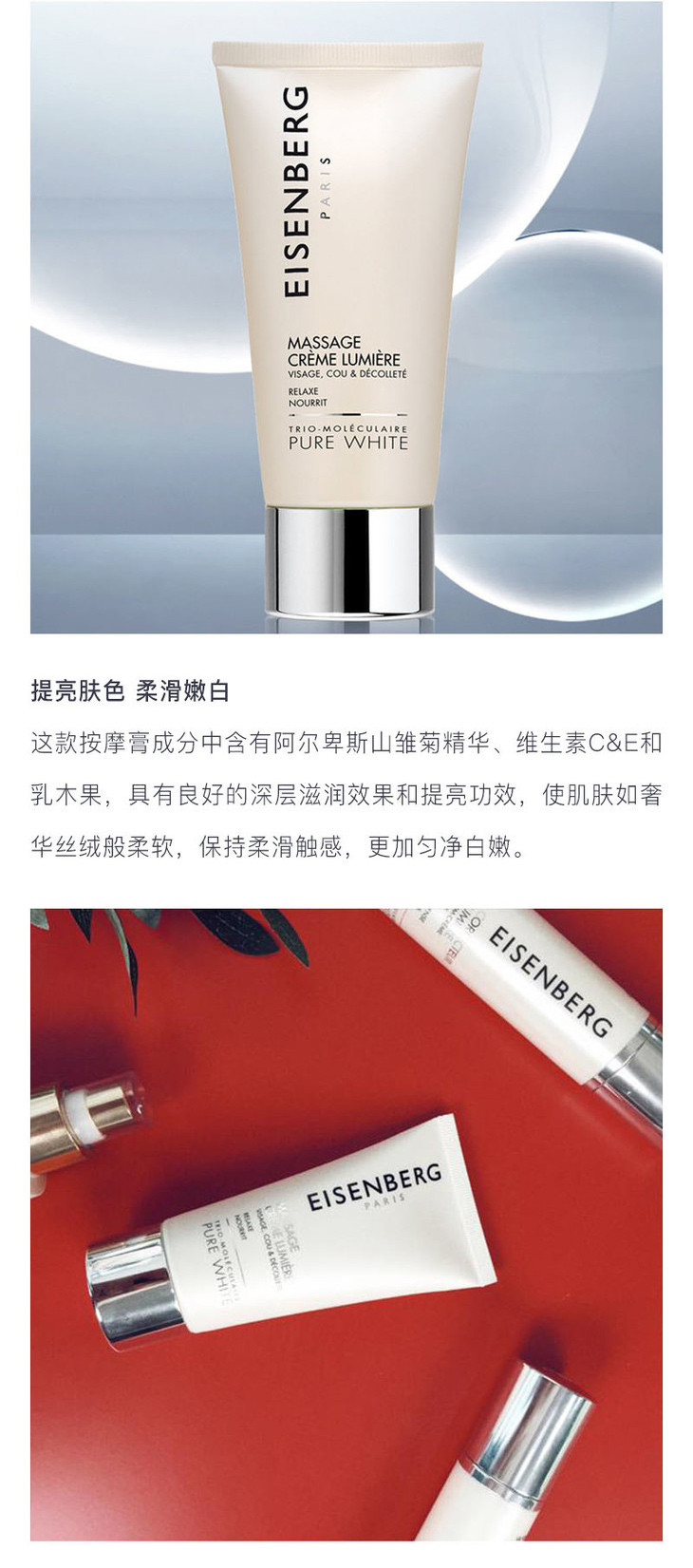 这款按摩霜质地极其柔软,延展性很好,所以用量也很省,涂在面部、颈部、胸部,稍加按摩,就会发现按摩膏逐渐被吸收,而且不会觉得油腻,长期坚持使用不仅能有效收紧松弛皮肤、缓解颈部纹路,在面膜前使用还能当成一款强化亮白的护理膏,适合所有肤质。