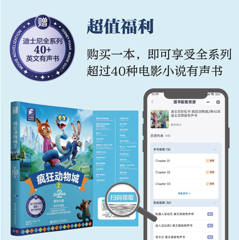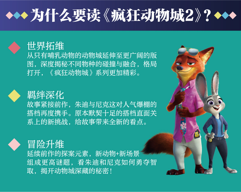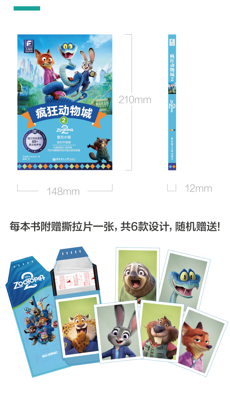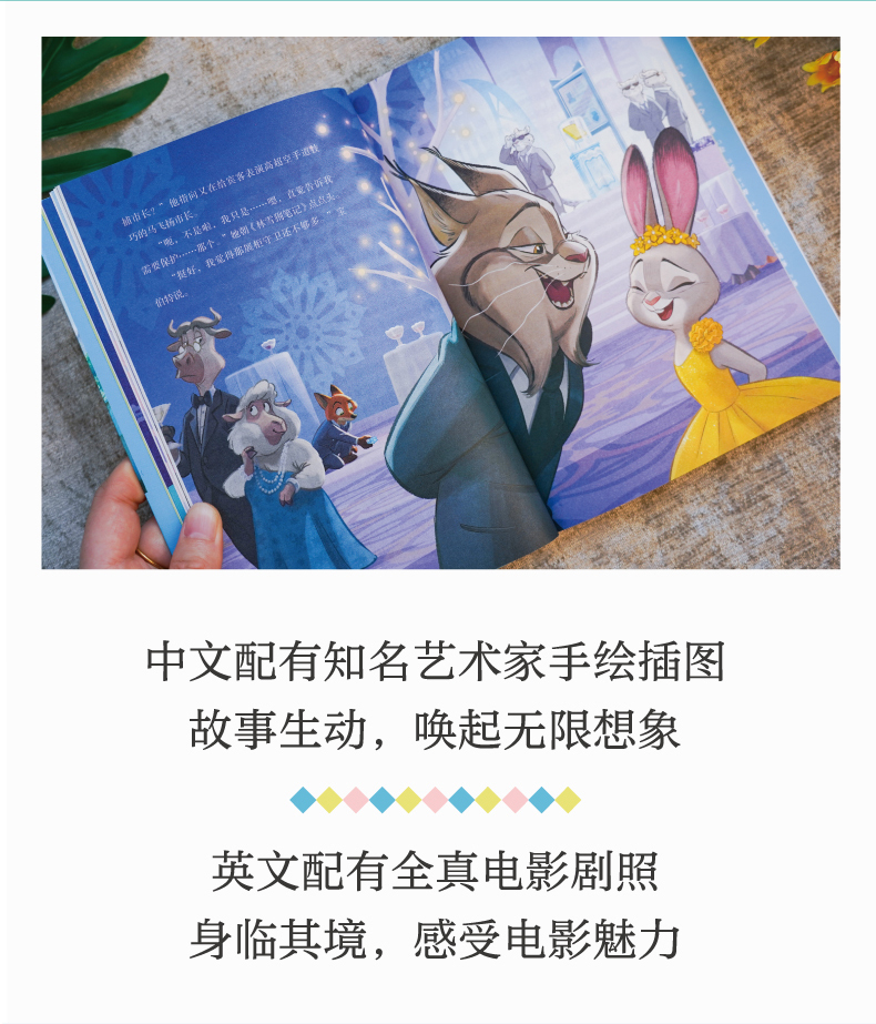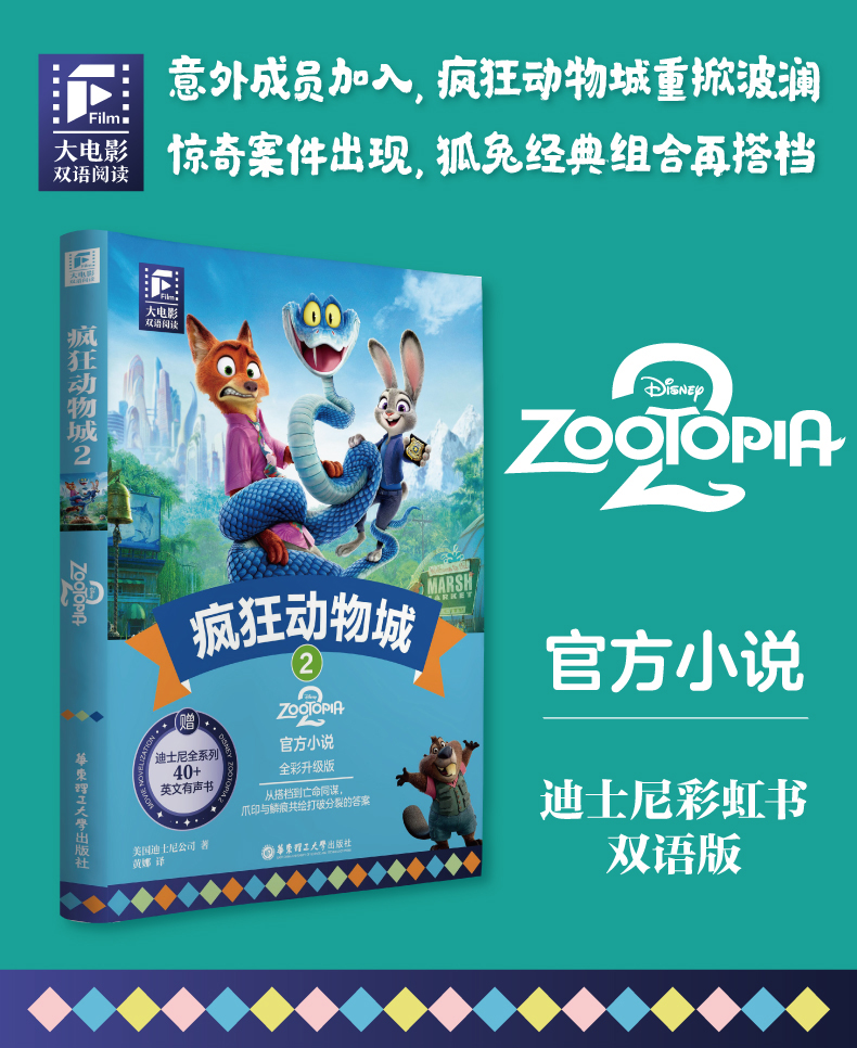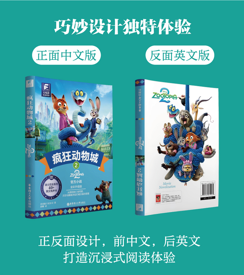 迪士尼彩虹书 疯狂动物城2 双语版 英文原版 赠英文音频 撕拉片 人物闪卡