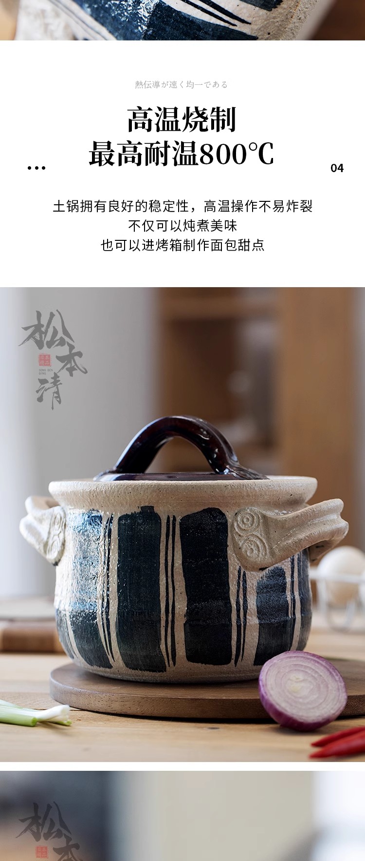 日本进口手作伊贺烧深型条纹粗陶土锅(2合)