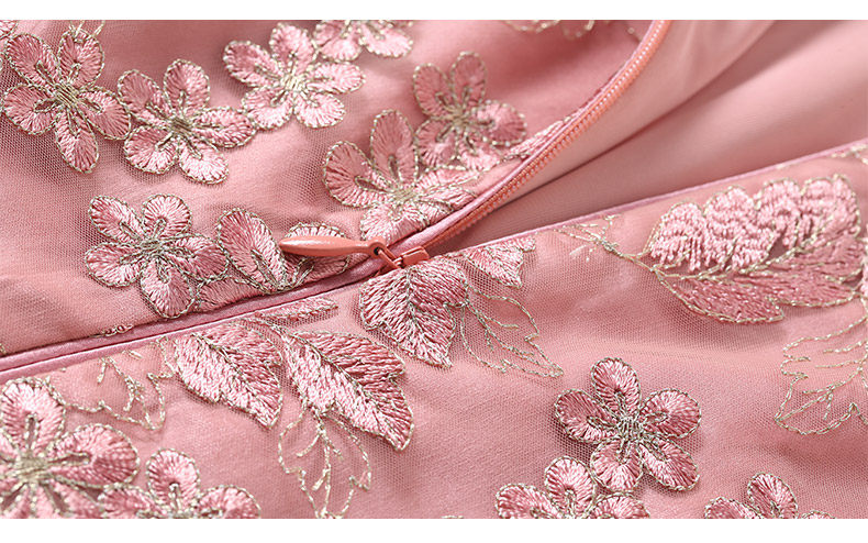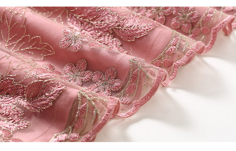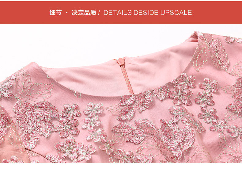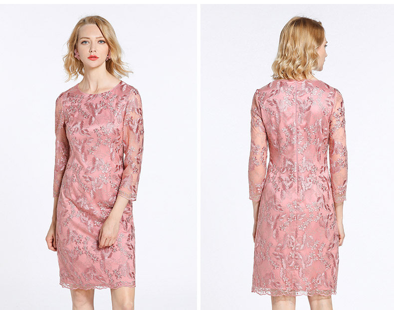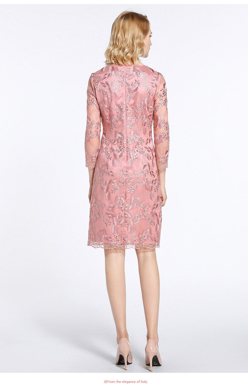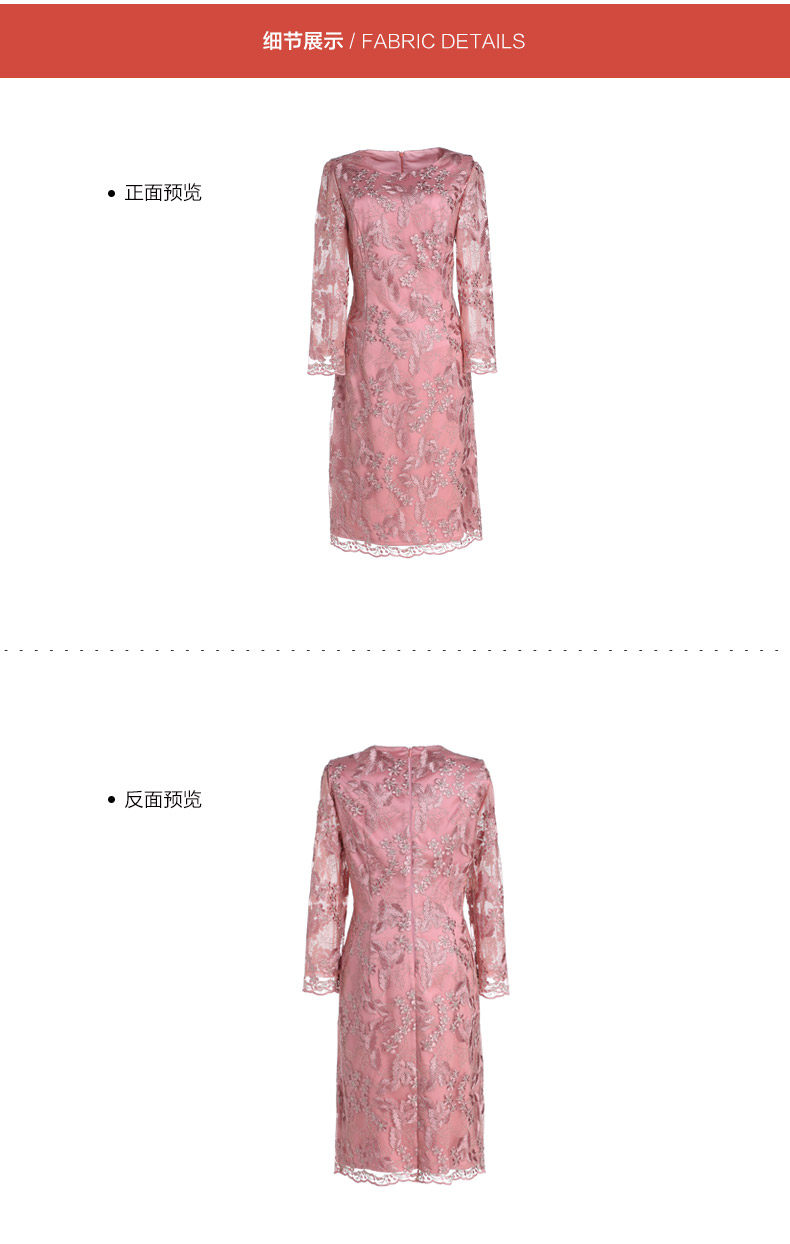 乔万尼春装女蕾丝气质修身绣花红装七分袖连衣裙EB3E230