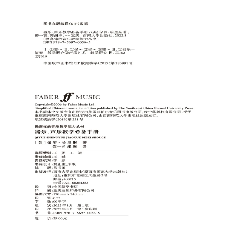 *书名:器乐、声乐教学必备手册 | *ISBN: 978-7-5697-0056-5 |