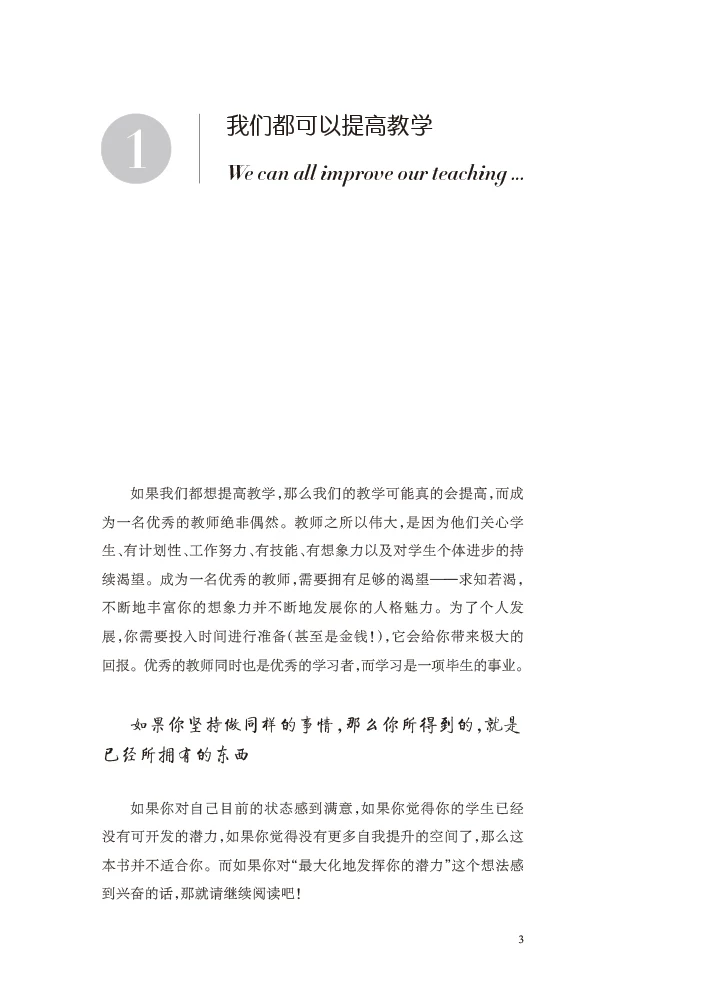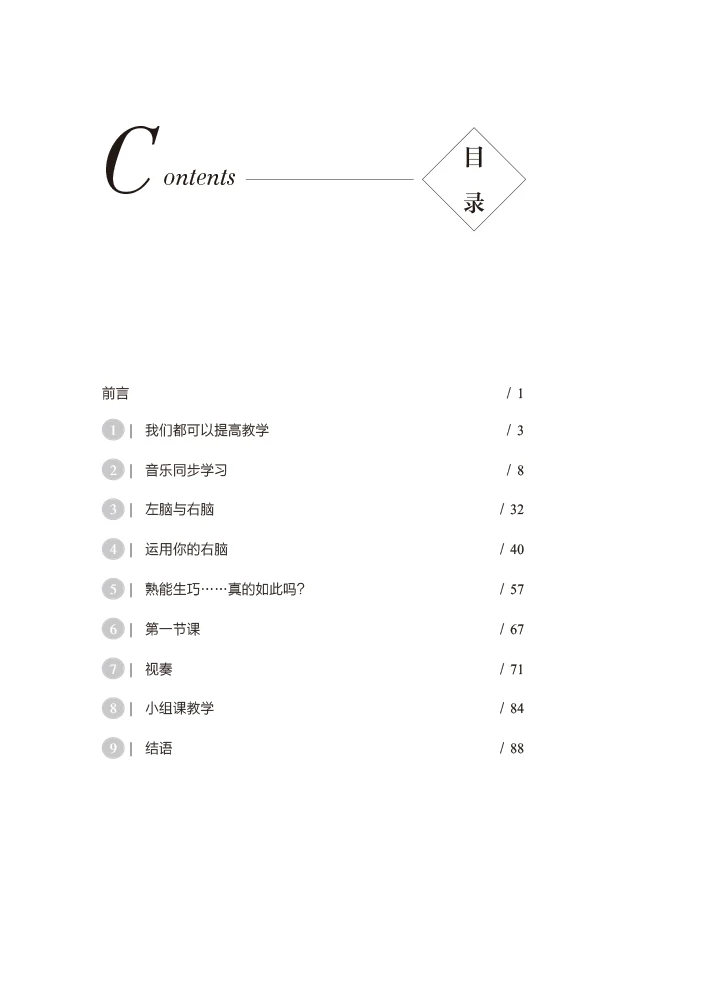 音乐教学能力的提升对于任何音乐教师来讲,都是至关重要的。然而,目前国内却鲜有全新理念的专门针对提升音乐教学能力的丛书,为此我们和英国菲伯尔音乐图书出版公司(Faber Music)达成出版战略协议,原版引进“Improve your teaching”系列,力图为中国音乐教师带来全新的音乐教学理念、教学方法、教学体验,促进国内音乐教育事业的发展。该书隶属“提高你的音乐教学能力丛书”(Improve your teaching),是世界知名音乐教育家保罗·哈里斯(Paul Harris)在多年的教学实践中针对怎样提高声乐及器乐教师能力而编著的一本实用手册。在世界几十个国家广泛应用,深受教师推崇、学生喜爱。我社现将其引进中国出版发行,期望为更多音乐教师提供帮助。全书共9个部分:1.我们都可以提高教学;2.音乐同步学习;3.左脑与右脑;4.运用你的右脑;5.熟能生巧……真的如此吗?;6.第一节课;7.视奏;8.小组课教学;9.结语。其中“音乐同步学习”是全书的核心教学理念,同时也是保罗·哈里斯始终推崇的音乐学习方法。他将所需的音乐基础知识(如视奏、乐理、听觉、表演、记忆等)串联在一起,并将它们同步进行训练,全面培养学生的综合音乐能力,这也是一名声乐学生或者器乐学生理应掌握的音乐能力。总而言之,这是一套适合提升音乐教学能力的器乐及声乐教师使用,相信它会为你打开一扇全新的音乐教学之门。 |