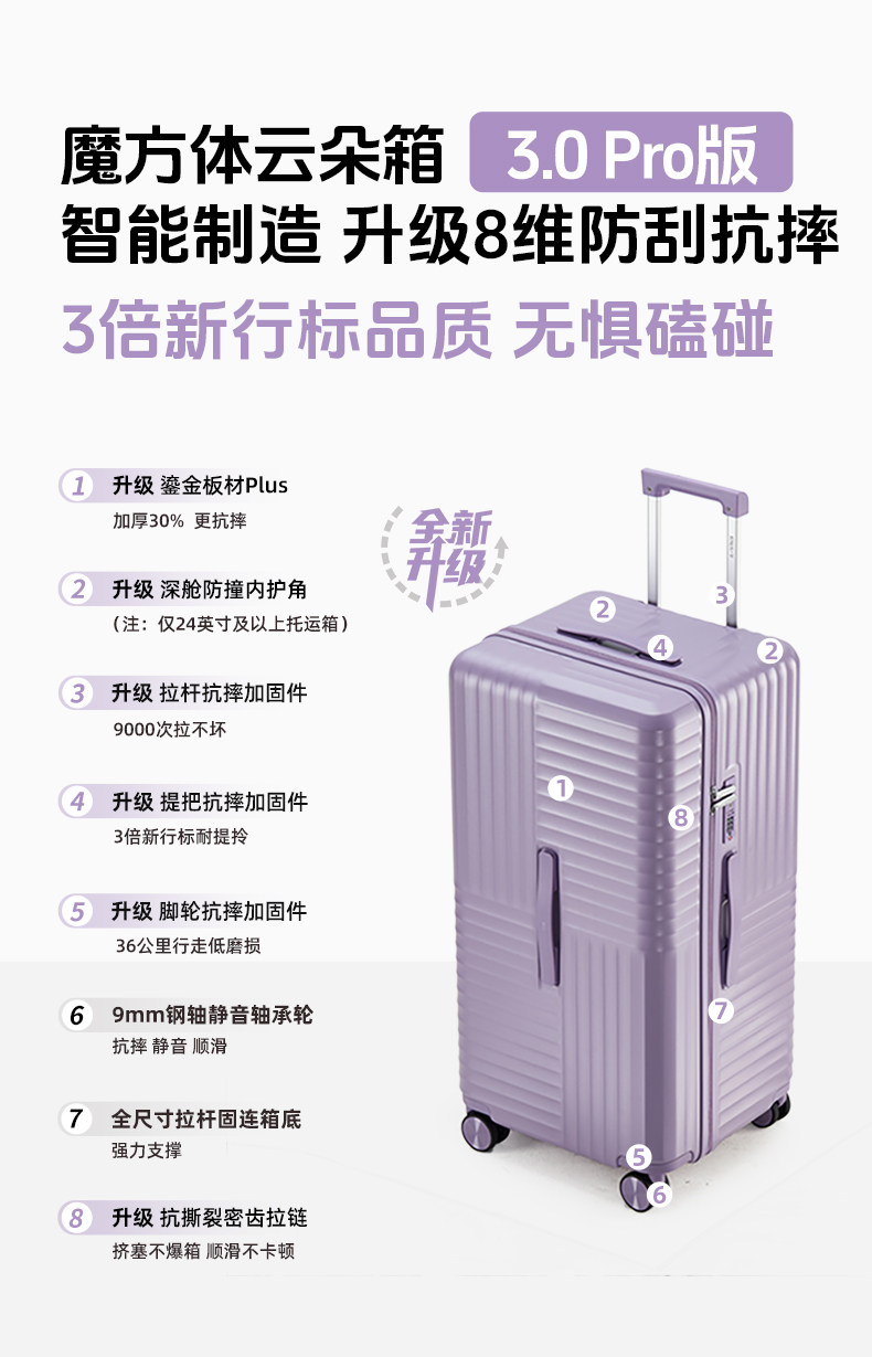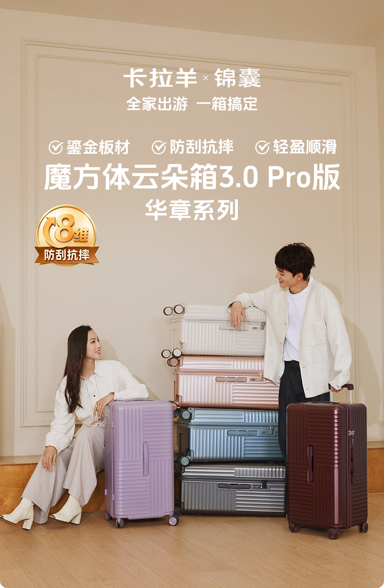 【升级云朵箱3.0Pro版】卡拉羊X锦囊新款魔方体行李箱鎏金板材PLUS升级8维防刮抗摔CN8141
