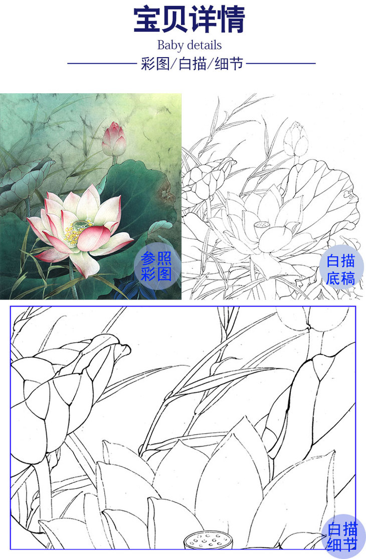 李晓明工笔花鸟白描底稿-荷香雅韵系列小品之五-荷花斗方小品册页-K099