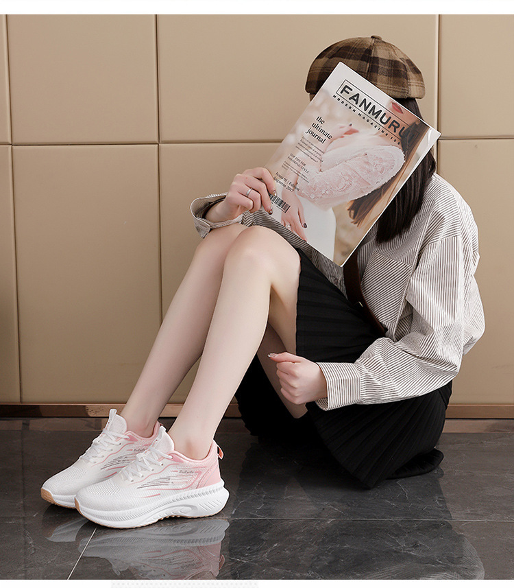 【女款透气飞织运动鞋2.0】4cm橡胶鞋底 防滑耐穿 飞织鞋面针织舒适 透气不闷脚 久走不累脚 增高堪称天花板 鞋型很显脚小 (鞋码偏小 拍大一码)