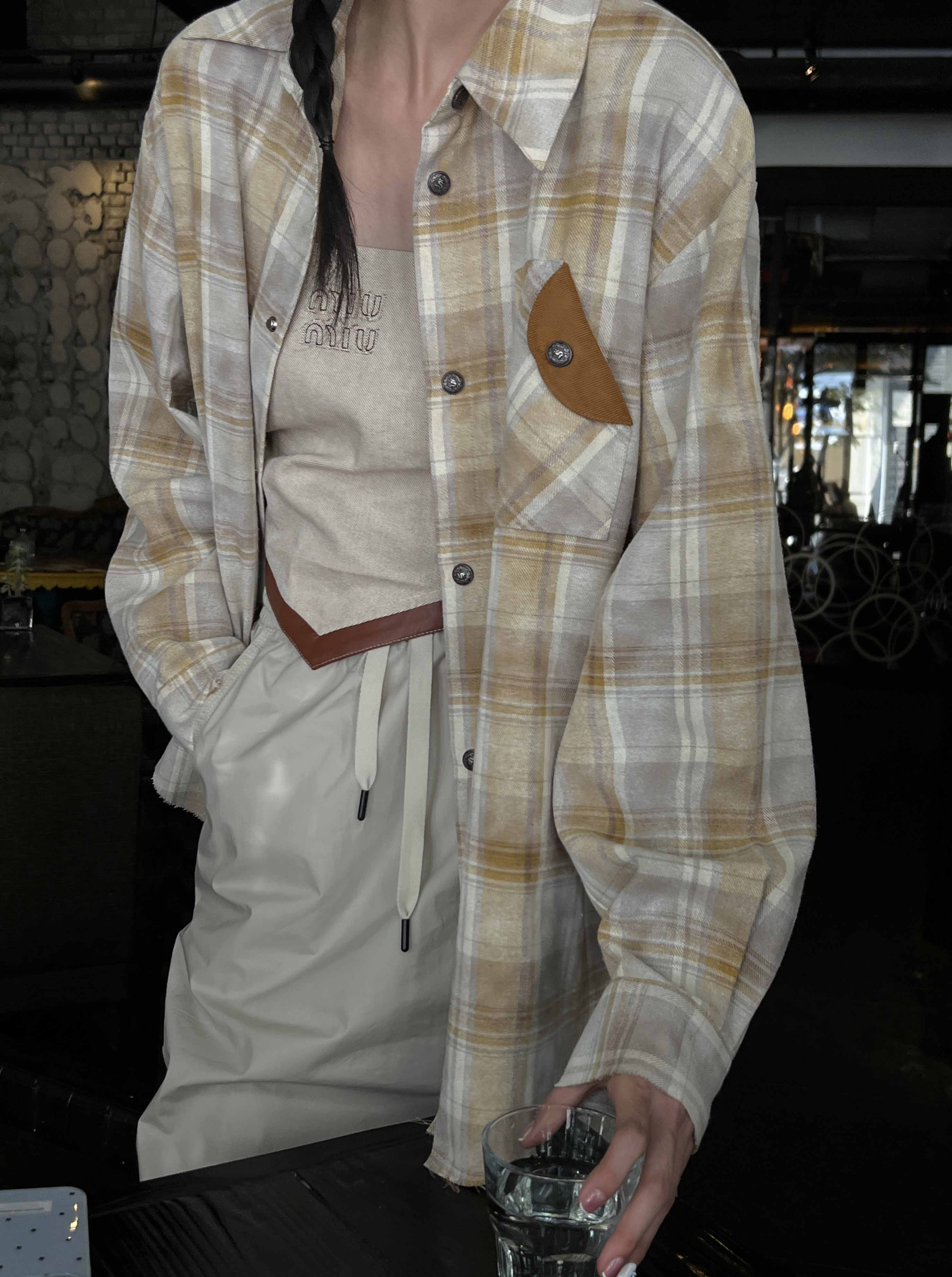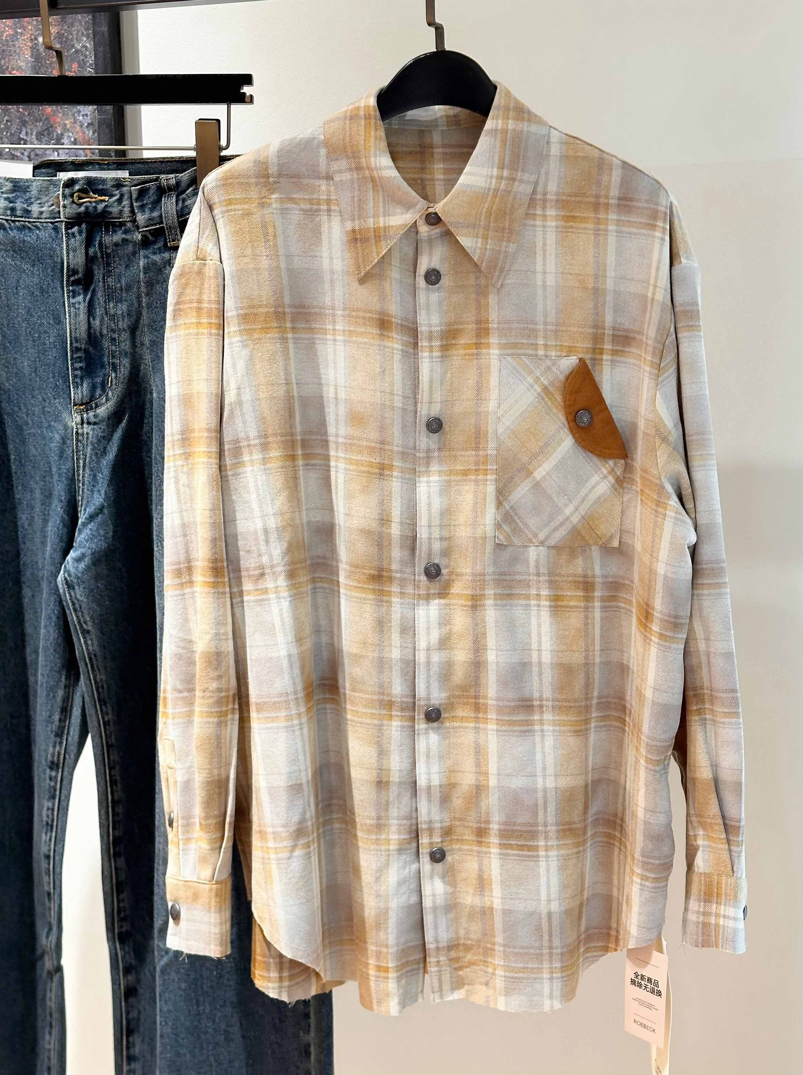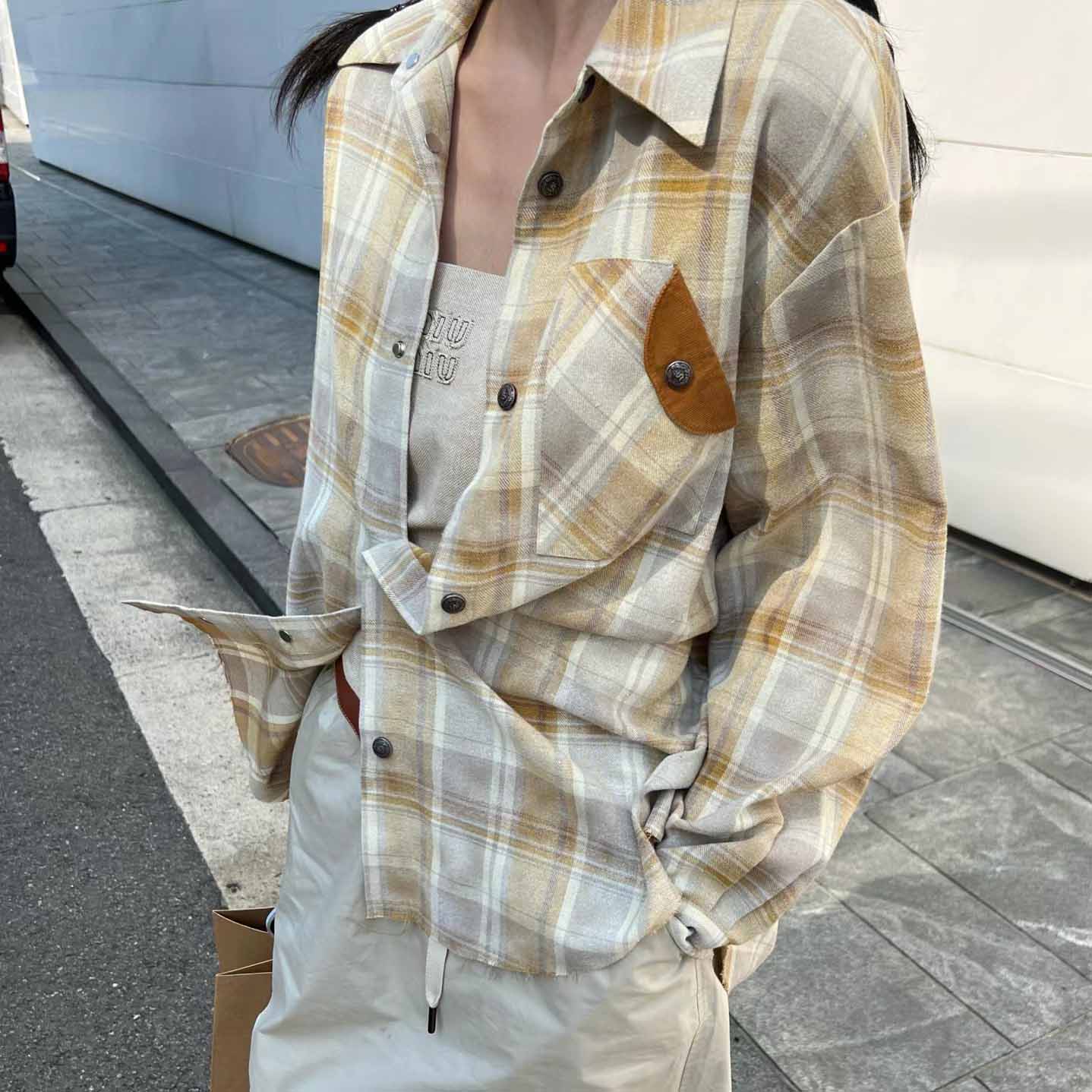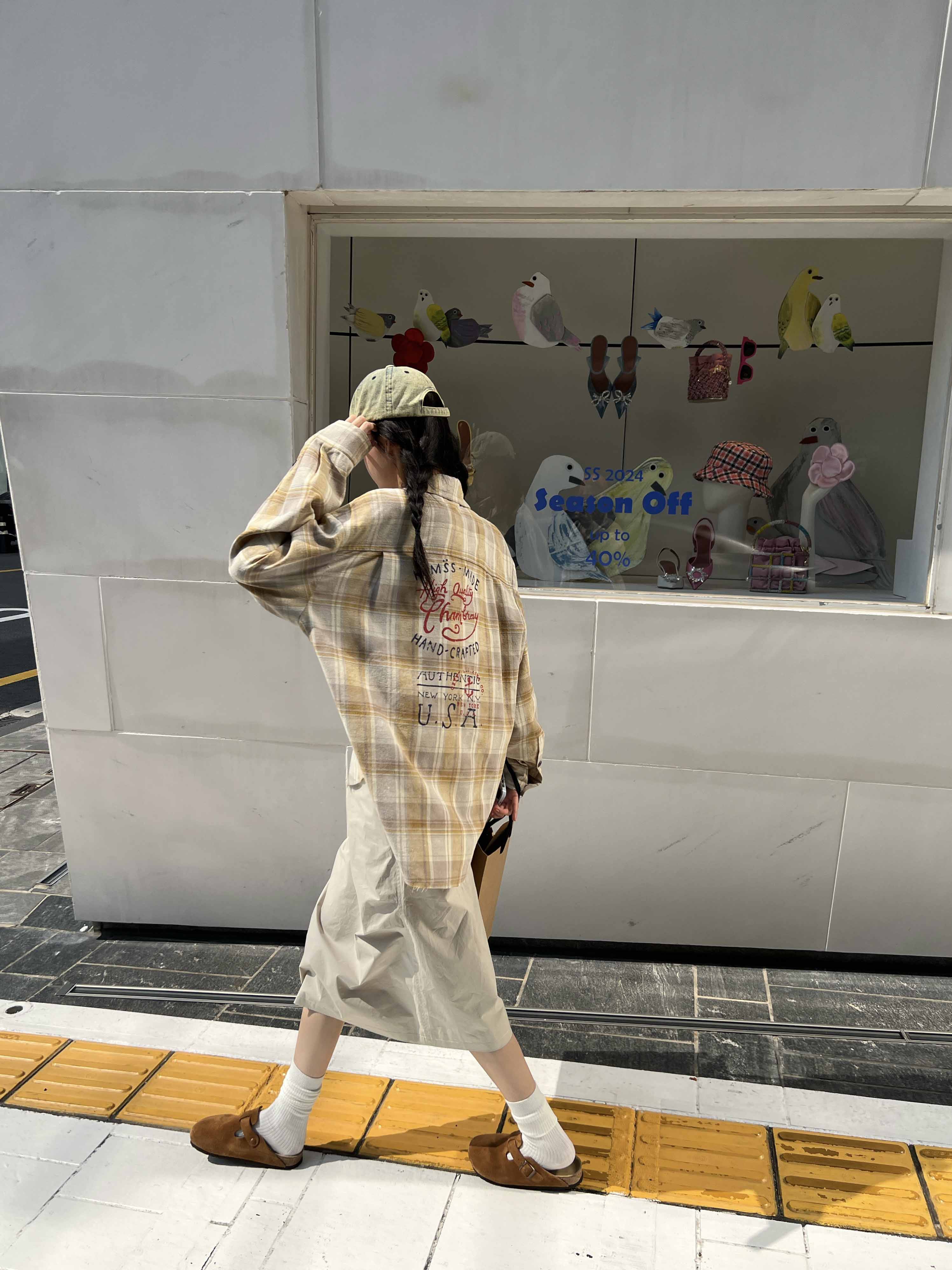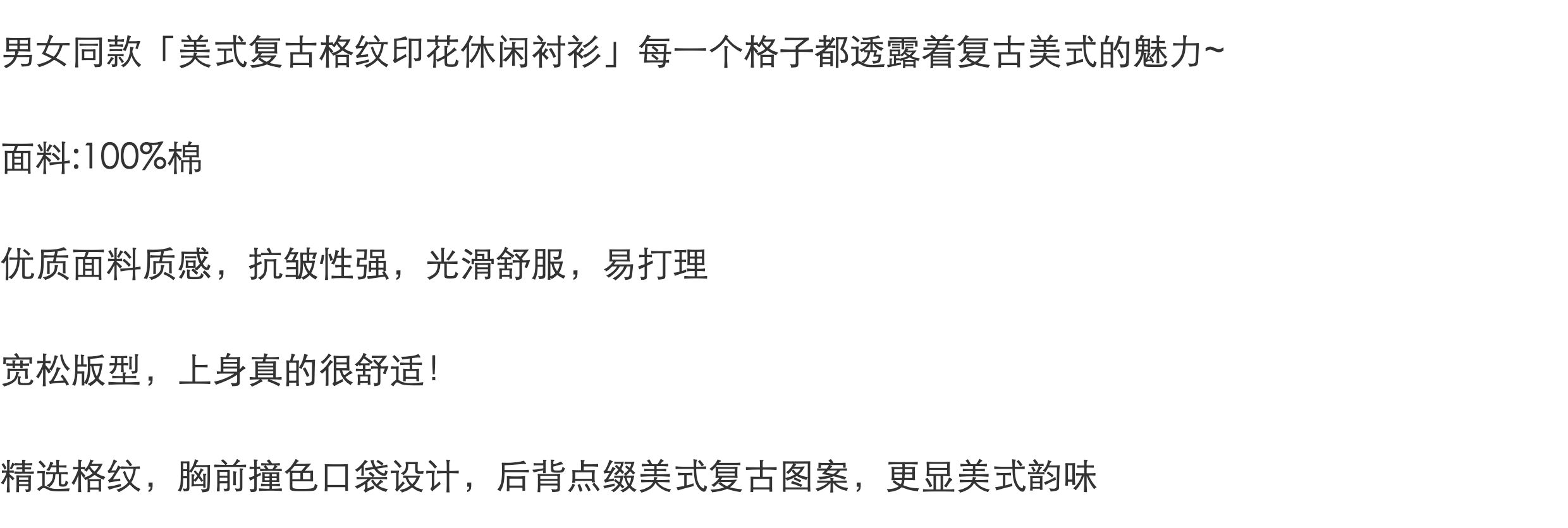 顺丰包邮洛诗琳43929男女同款美式复古格纹印花休闲衬衫462