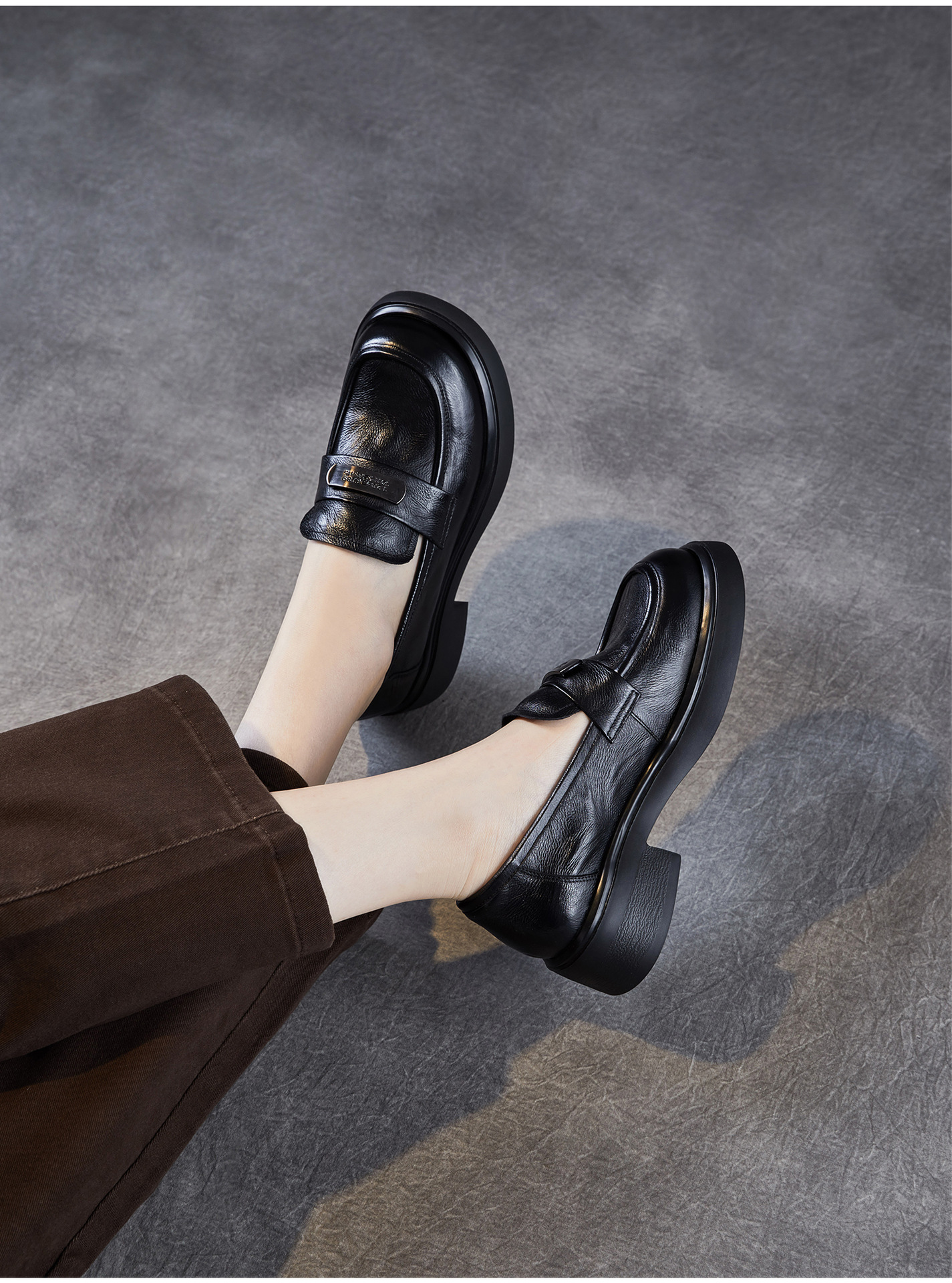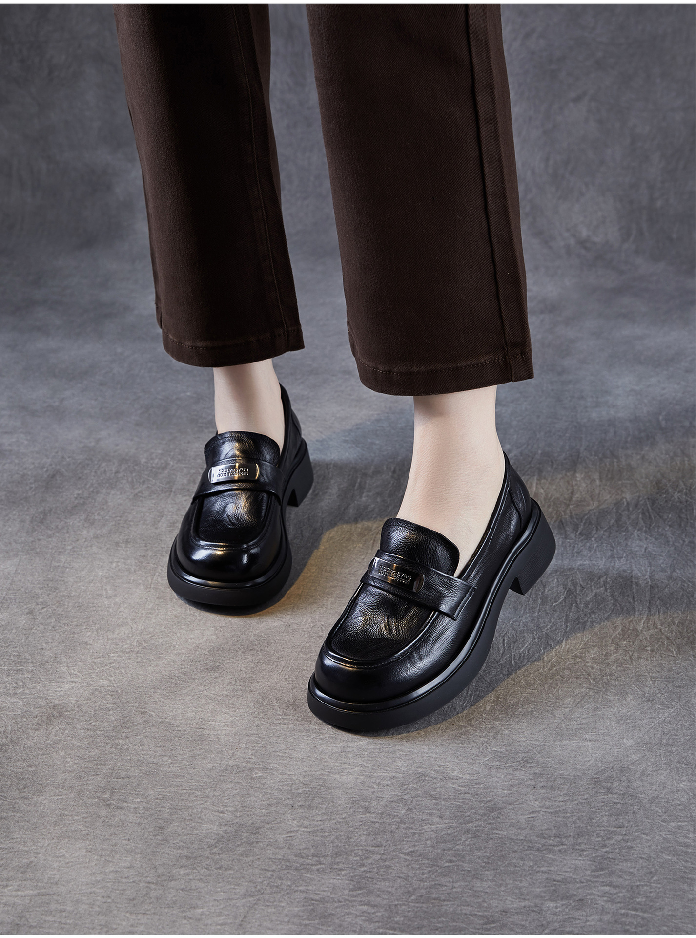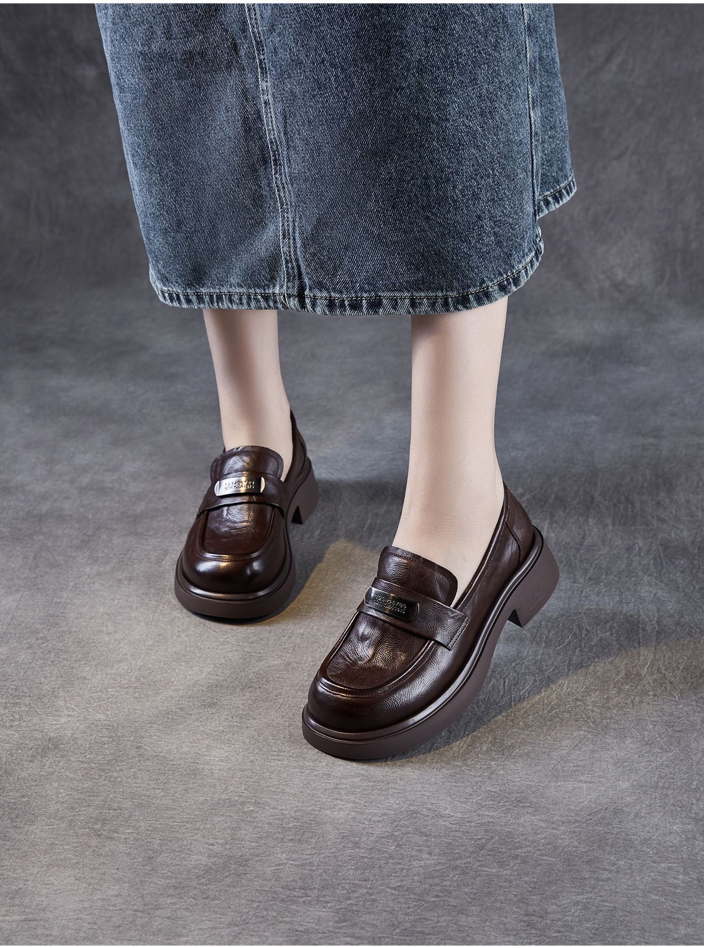 ZM258570真皮轻奢女鞋2025秋季新款软底乐福鞋英伦风小皮鞋一脚蹬厚底单鞋 商品图3