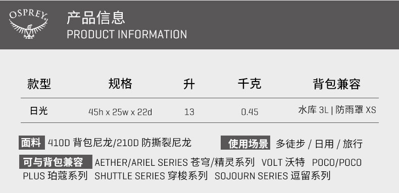 OSPREY Daylite 日光13L户外背包多功能运动旅行背包轻便专业背包