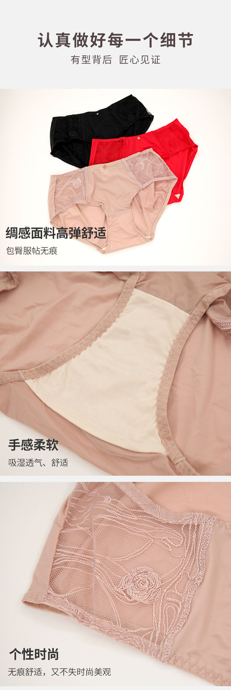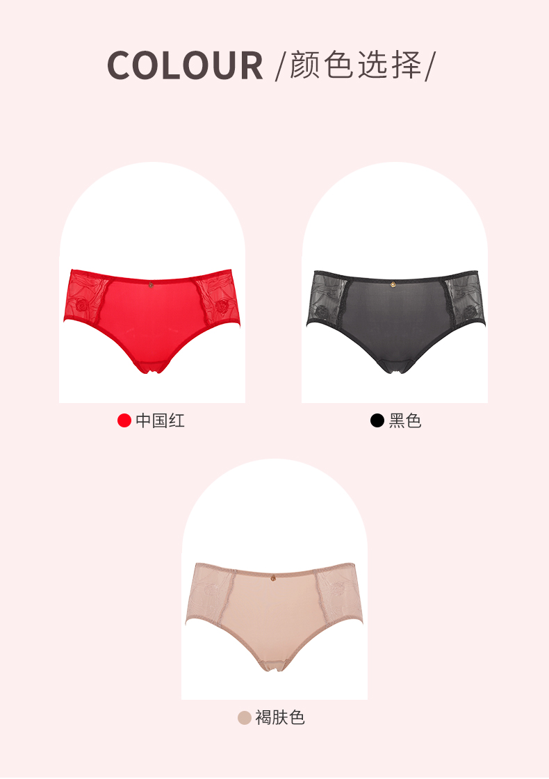 贝佳人新品中腰红色本命年包臀无痕内裤绸感面料平角裤高弹舒适