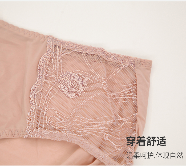 贝佳人22年新款轻薄透气平角裤舒适中腰蕾丝网纱提臀收腹内裤