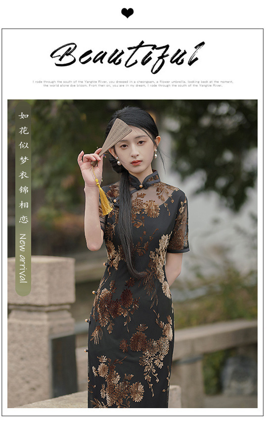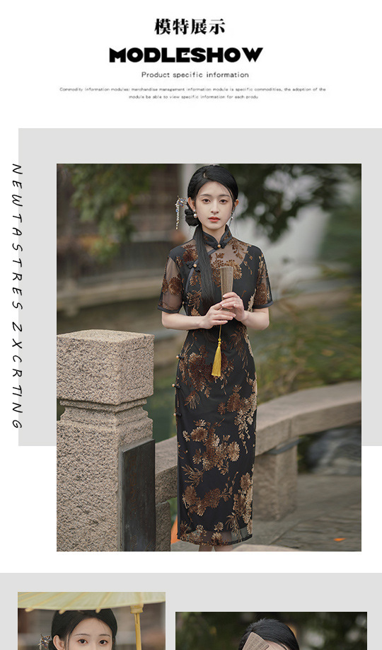 TX春夏时尚修身旗袍连衣裙日常假两件背心式改良旗袍