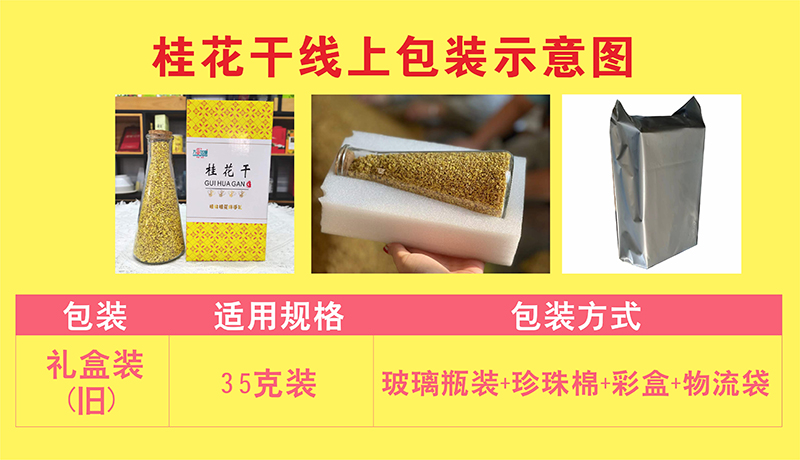 【备注】:我们的桂花干为自然锁鲜,花瓣朵朵成形,精挑细选,不含杂质树叶树枝等,要的就是品质,人工多次精选分装,特级品质
