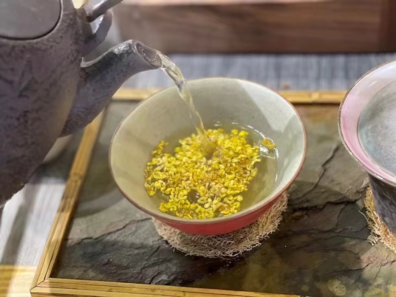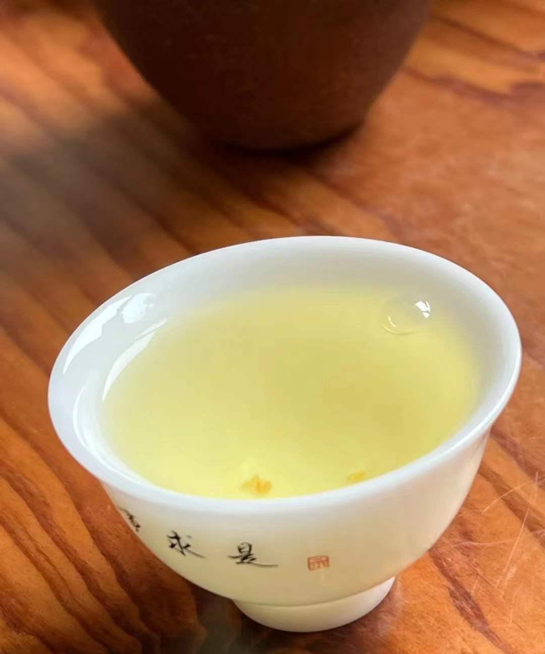 饮茶入口,丝丝芳香即蔓延于鼻腔、口腔中,香气十分馥郁浓厚,满满地品味着秋天的温柔;再入口一杯桂花茶,或浓或浅,不灼不柔,再啜一口,感受花茶之甘醇。