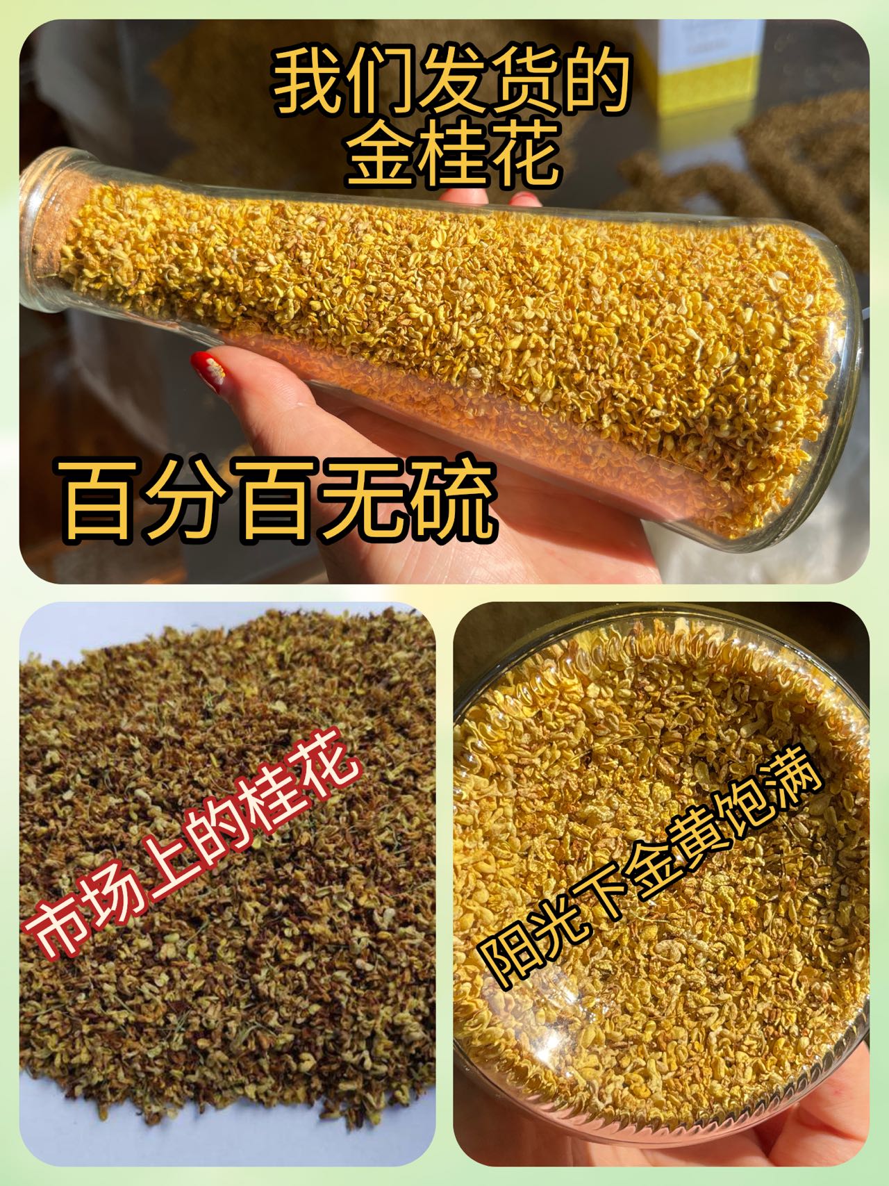 2.看颜色:一般颜色特别金黄的都是经过熏硫的,无硫的桂花色泽很自然,没有假黄