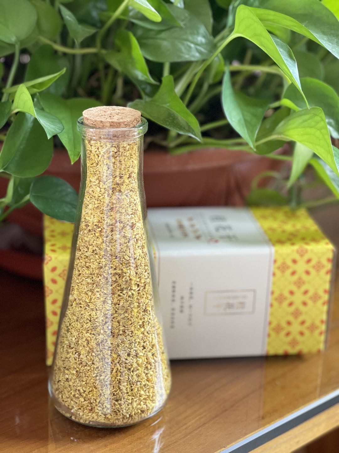 金桂花香气浓郁热烈,又自带天然高级的甜蜜,堪称甜品界的百搭之品。打开装金桂花的玻璃瓶,就像藏在落叶里的秋天香味,它终于逃了出来,肆无忌惮地扑向你!