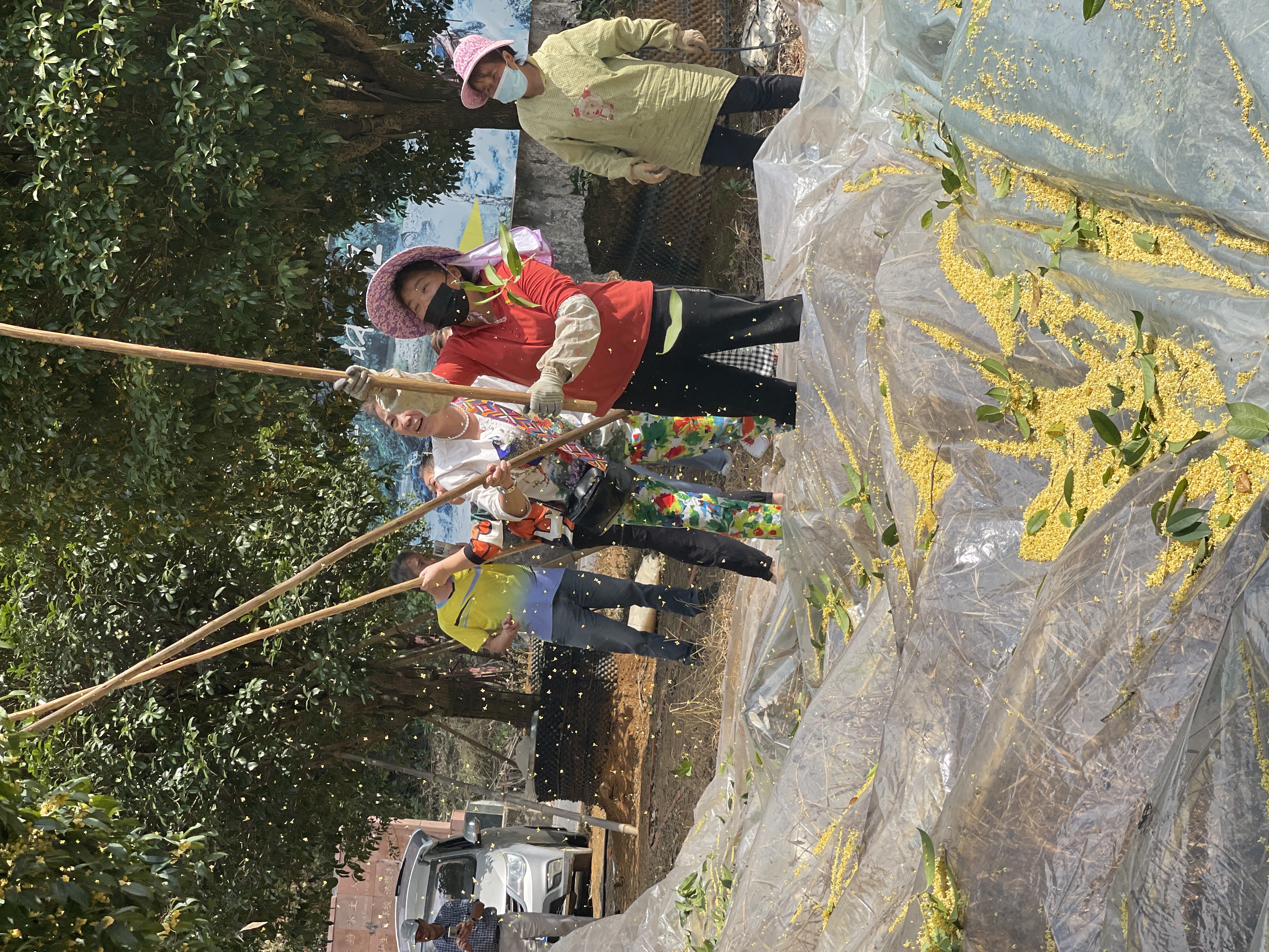 今年比较干旱,所以桂花开的也比较迟,十一月份才开始采收,桂花盛开时节,香味沁人心脾,忙着采收新鲜的桂花进行手工筛选掉树叶和枝干等杂质,再进行机器甄选,保证新鲜大朵粒粒明亮有光泽。