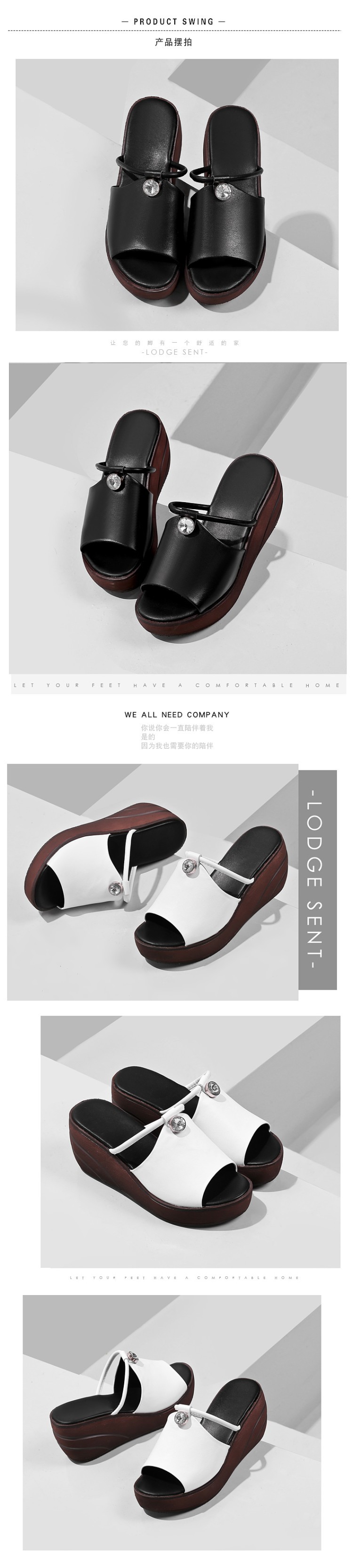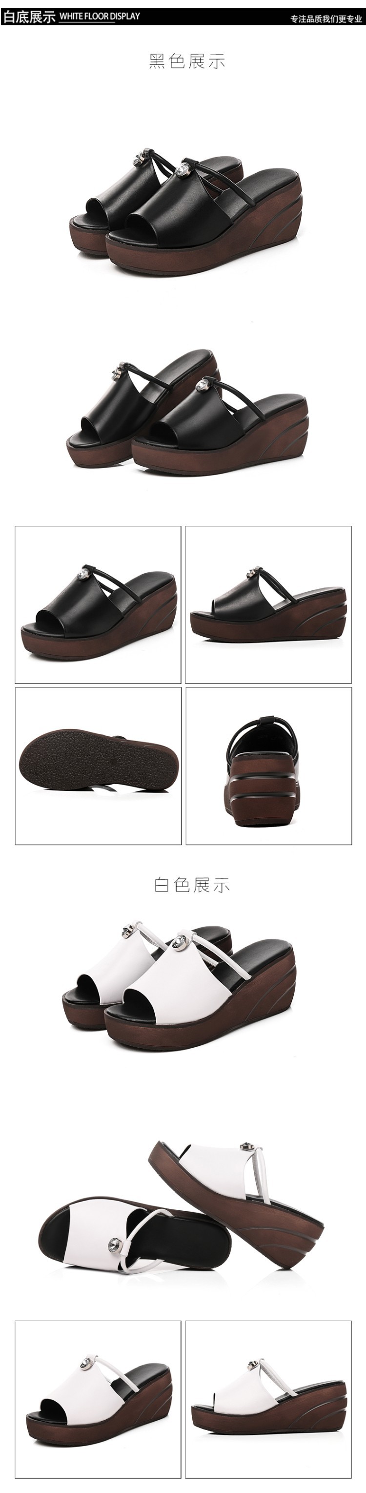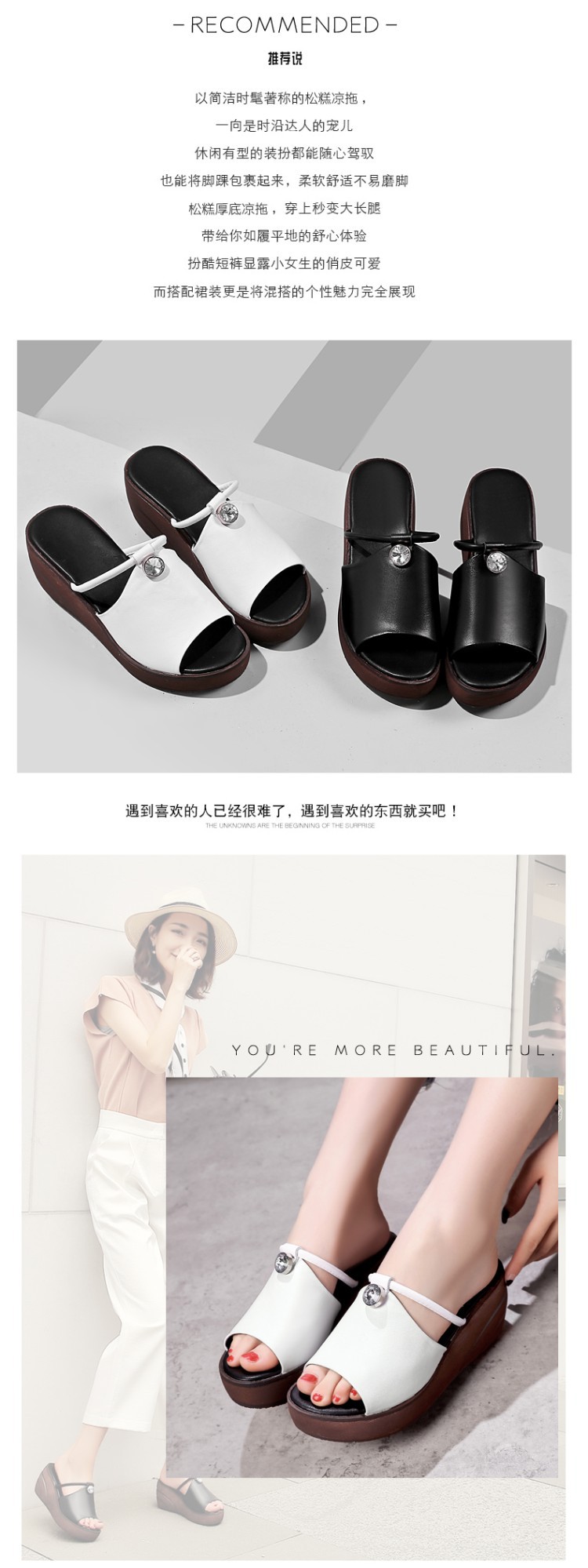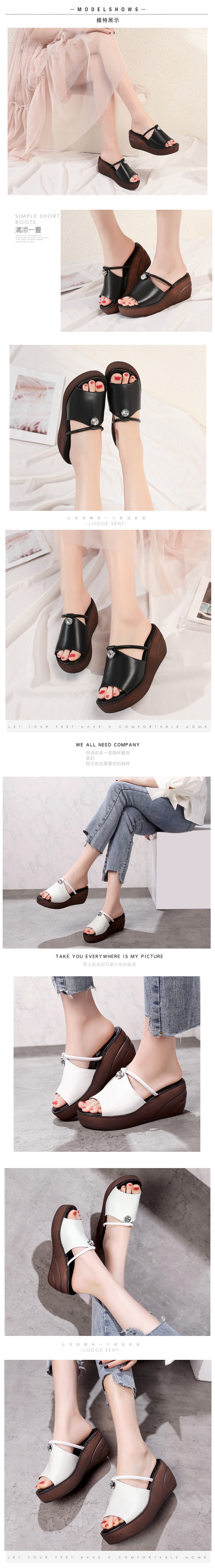 MJM-7737夏季真牛皮坡跟时尚凉拖鞋一字带鱼嘴厚底高跟女鞋