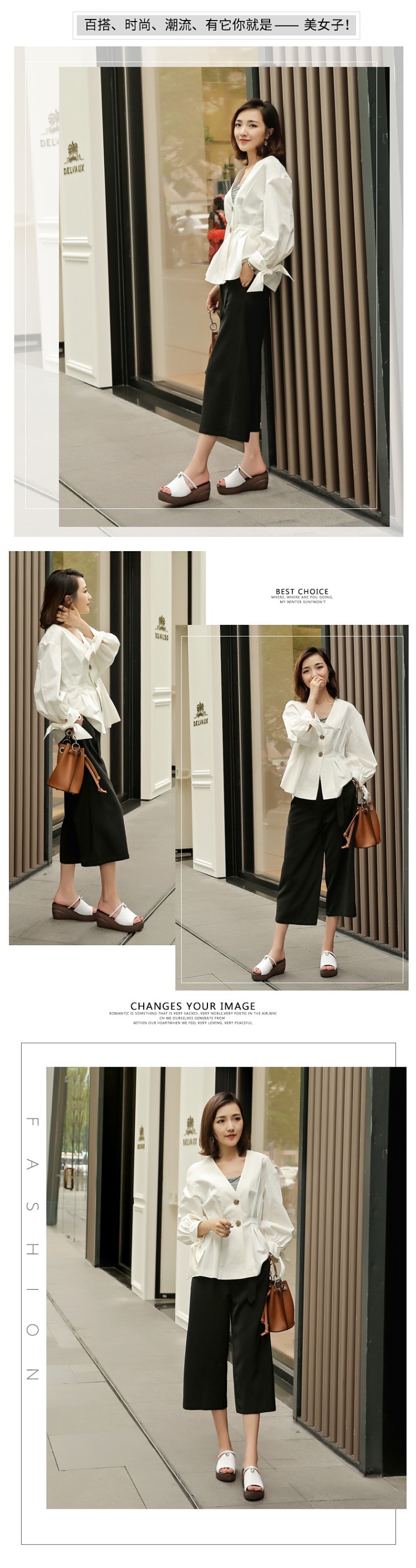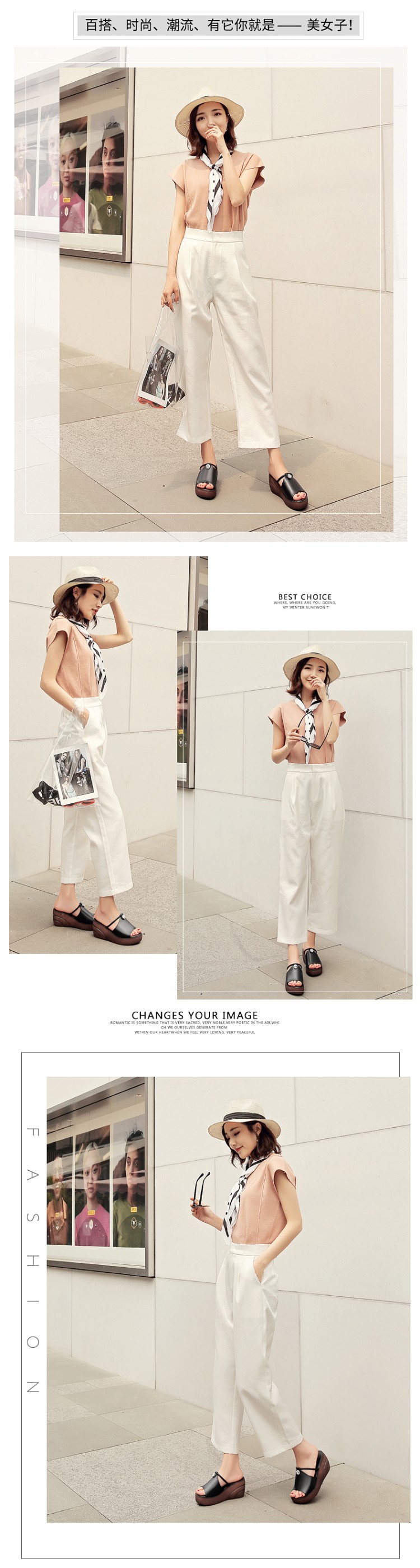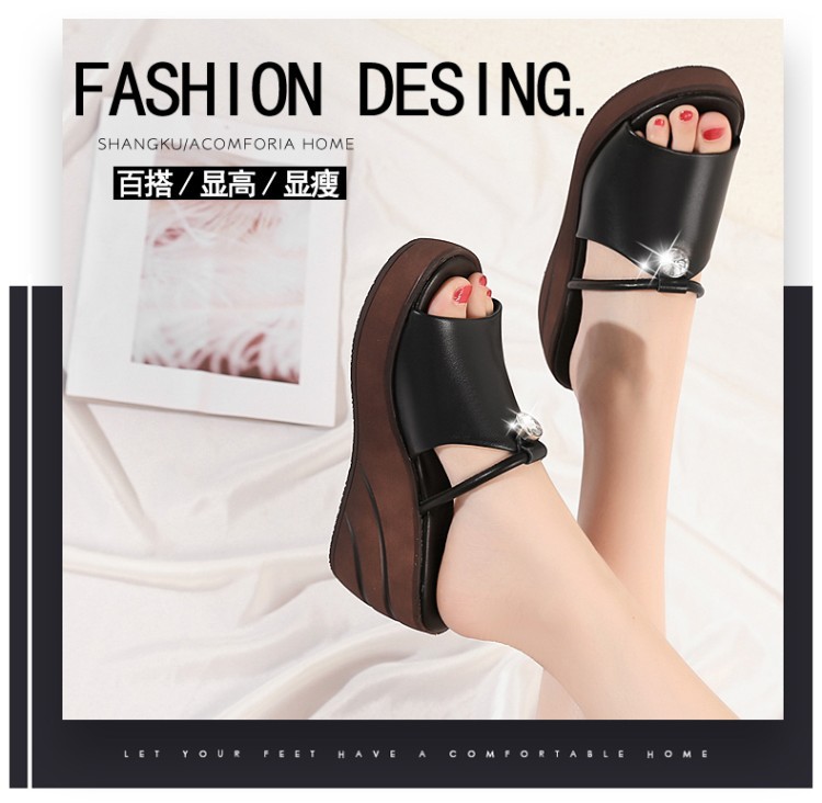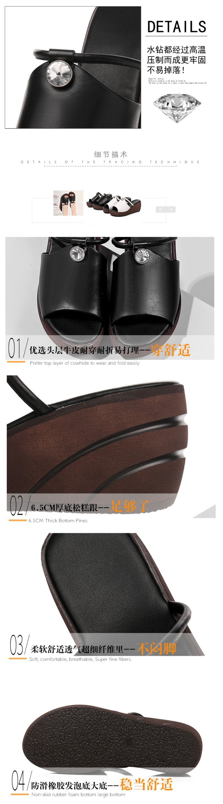 MJM-7737夏季真牛皮坡跟时尚凉拖鞋一字带鱼嘴厚底高跟女鞋