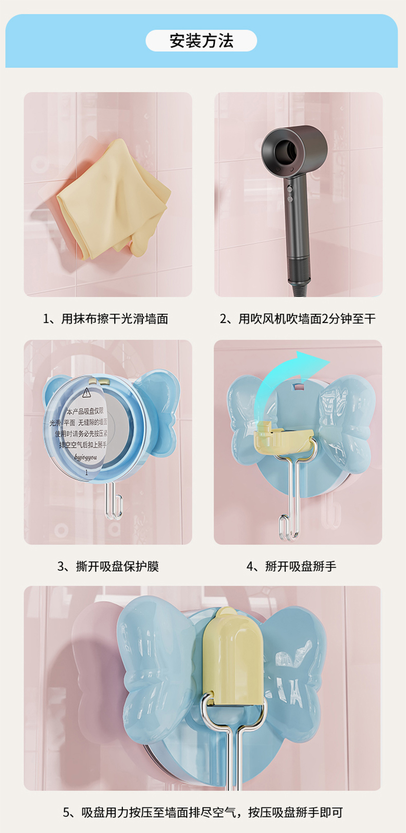 摩登主妇吸盘挂钩免打孔门后墙壁挂强力承重无痕粘钩浴室厨房家用