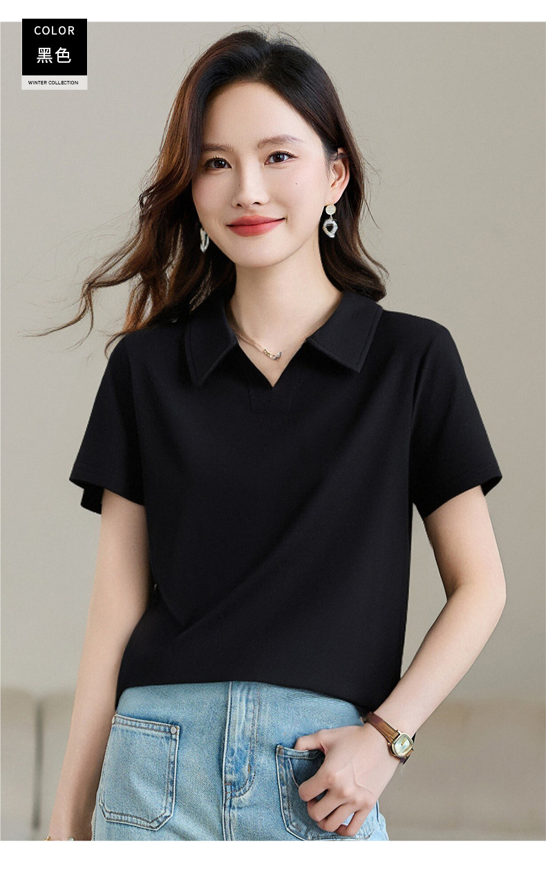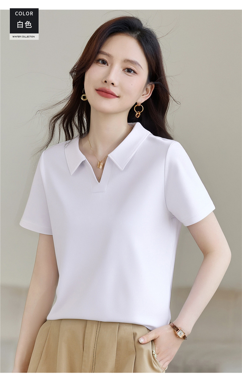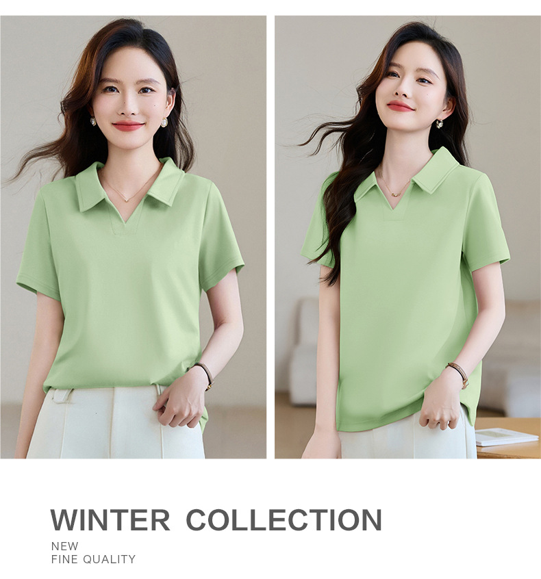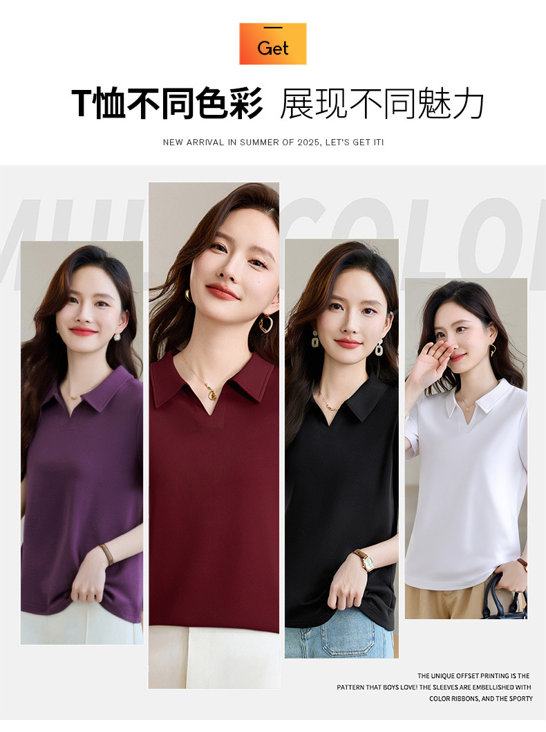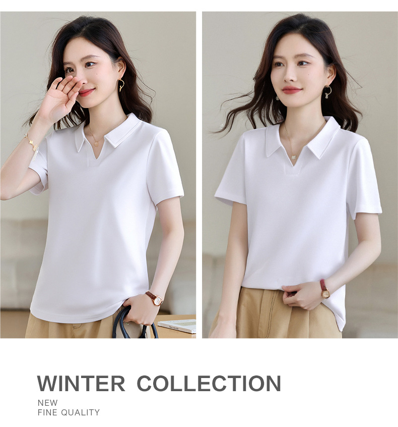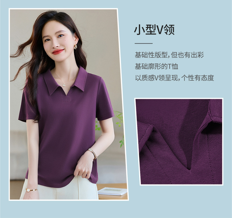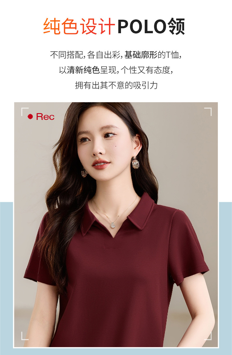 雀说polo领短袖t恤女新款爆款正肩纯色半袖洋气减龄显瘦上衣AL20070