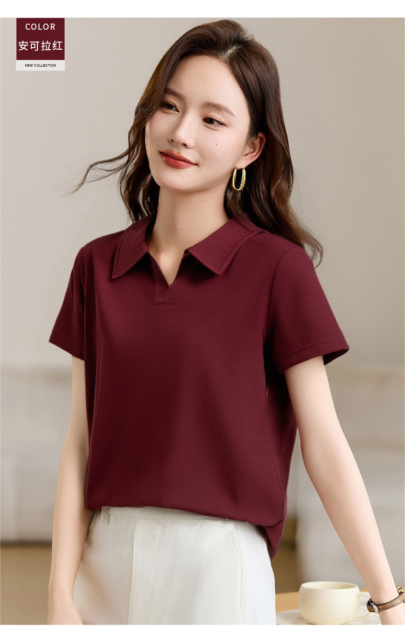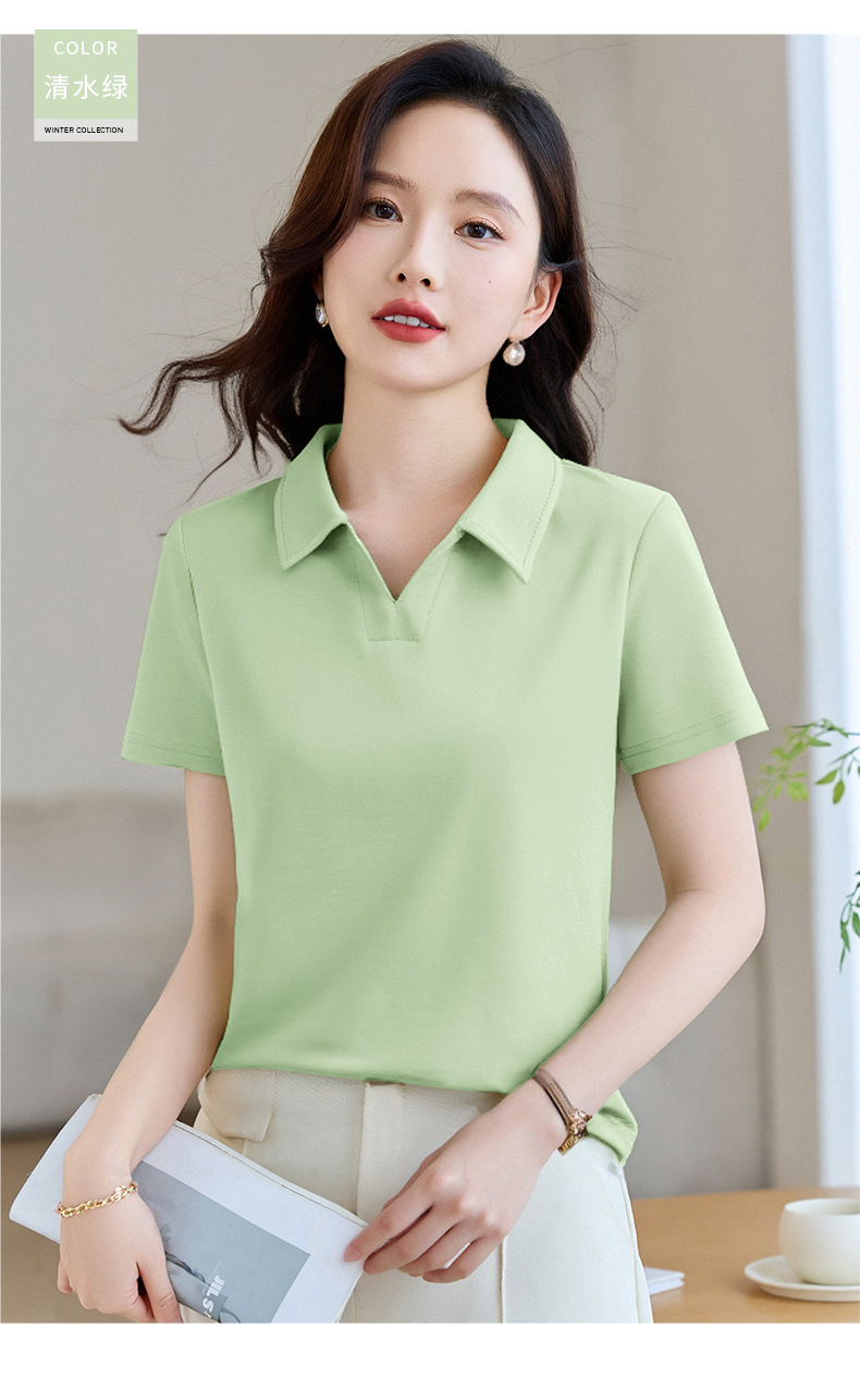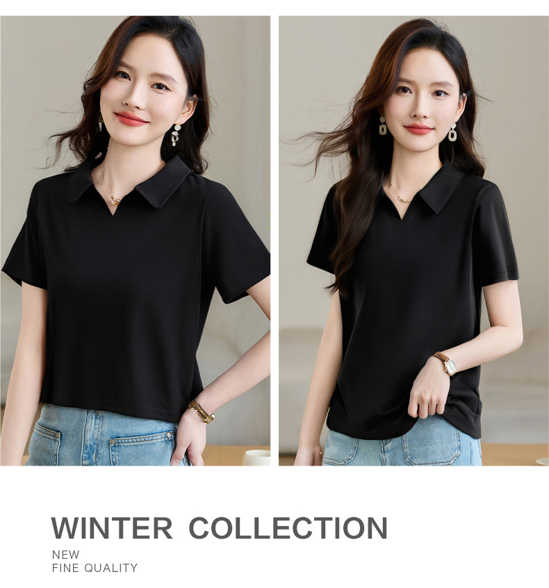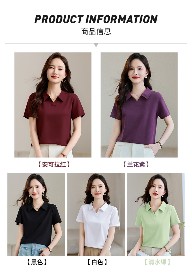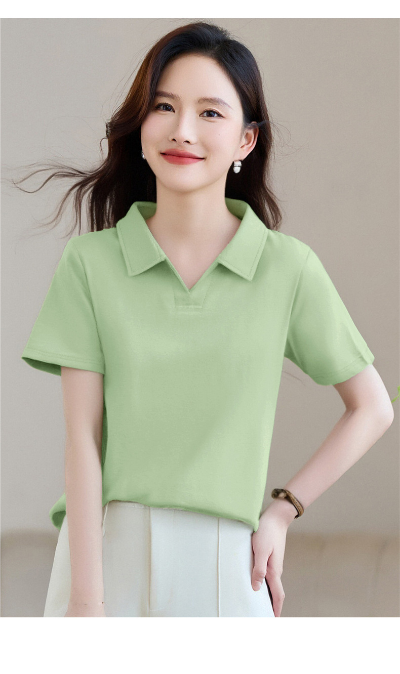 雀说polo领短袖t恤女新款爆款正肩纯色半袖洋气减龄显瘦上衣AL20070