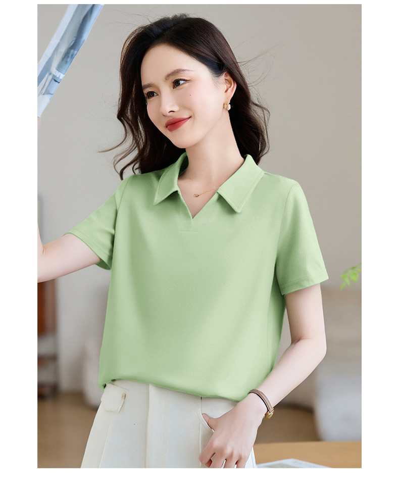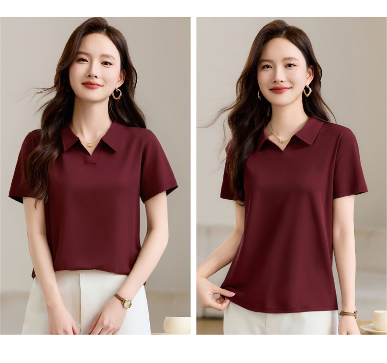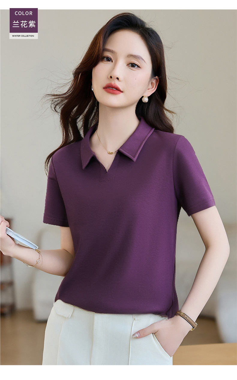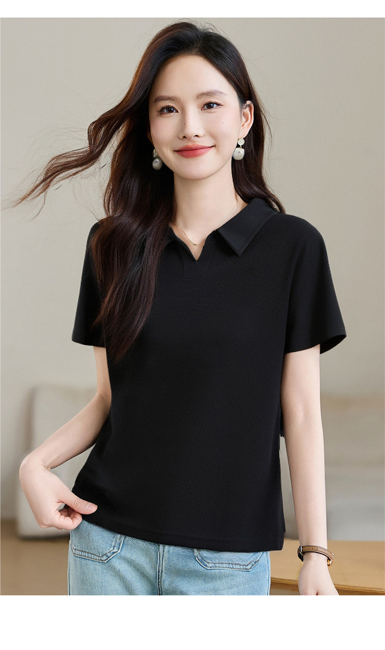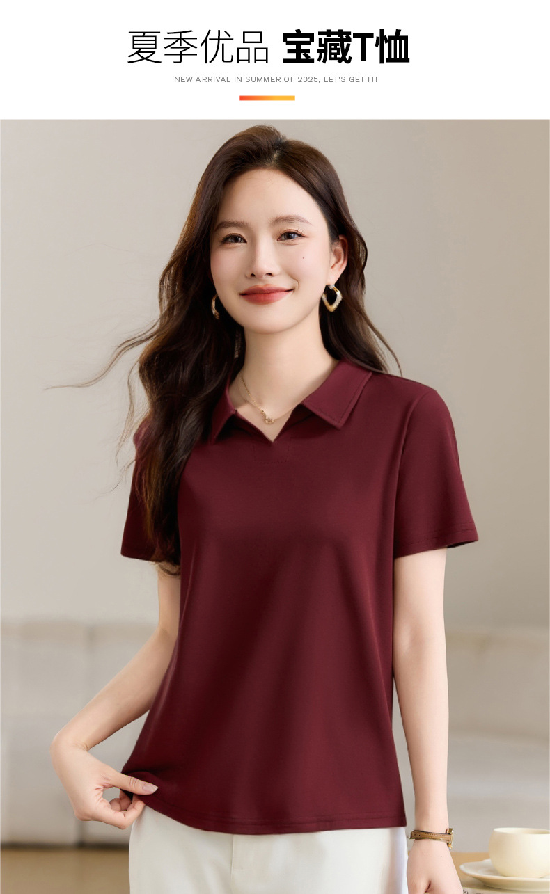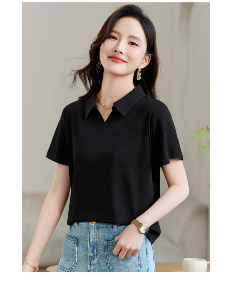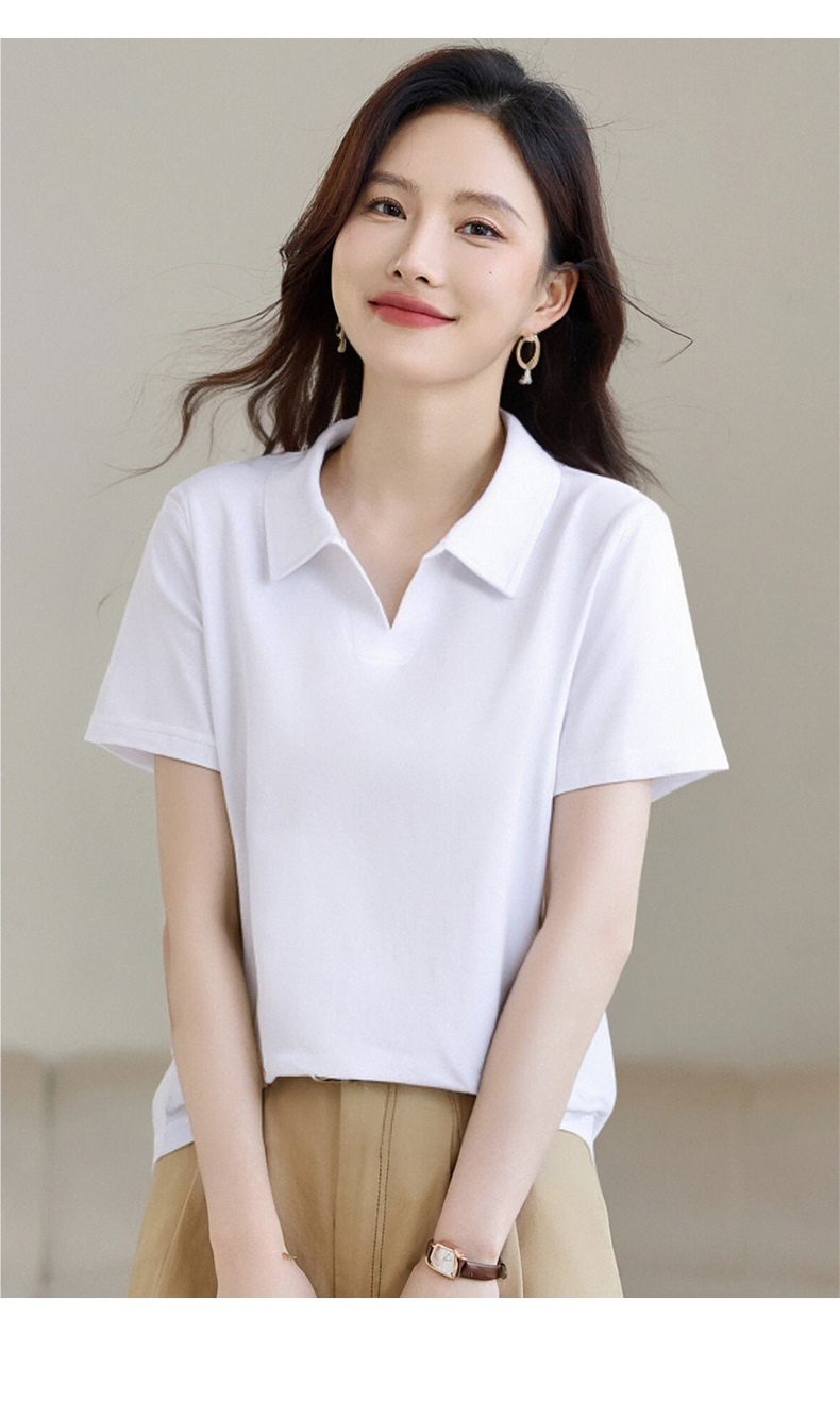 雀说polo领短袖t恤女新款爆款正肩纯色半袖洋气减龄显瘦上衣AL20070