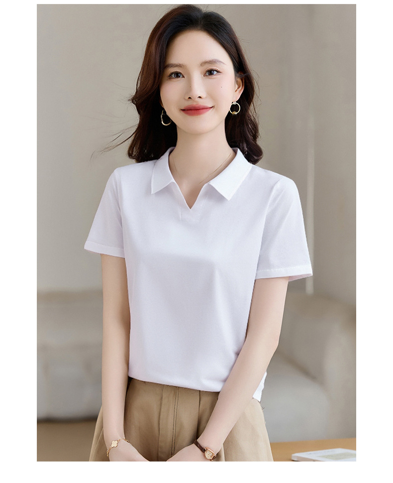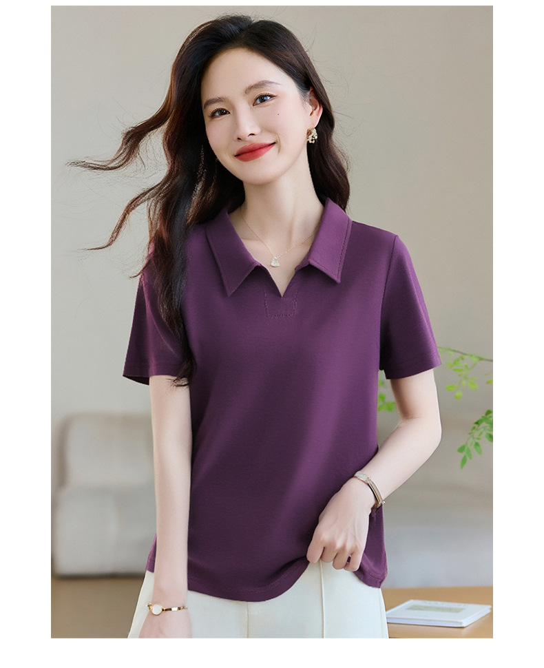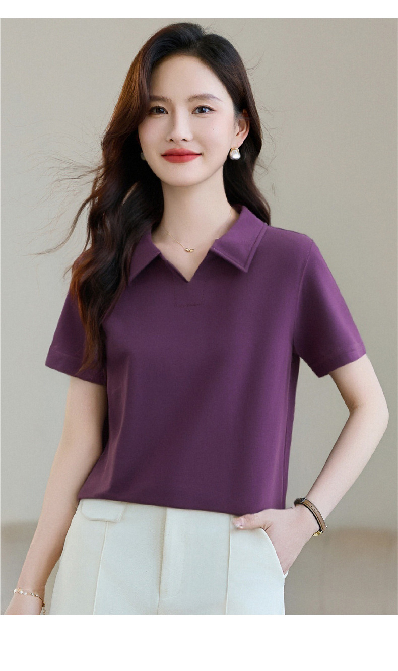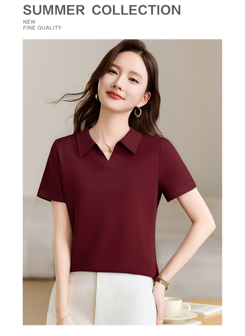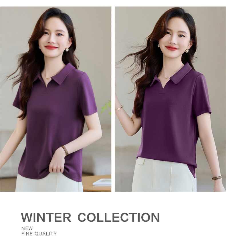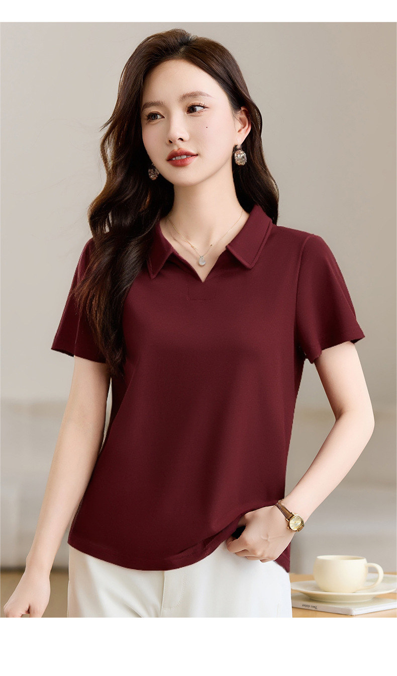 雀说polo领短袖t恤女新款爆款正肩纯色半袖洋气减龄显瘦上衣AL20070