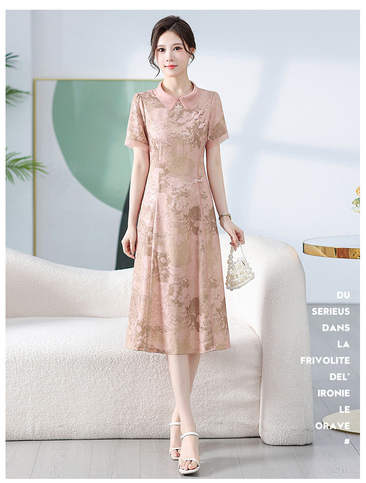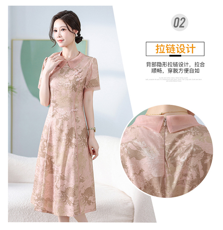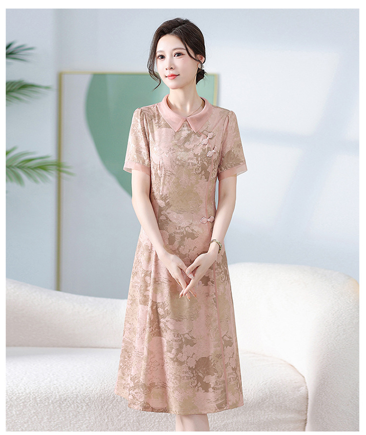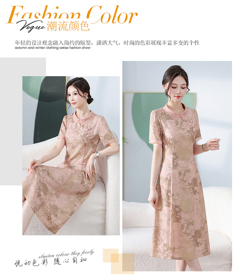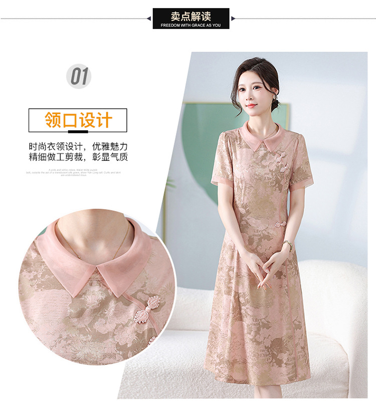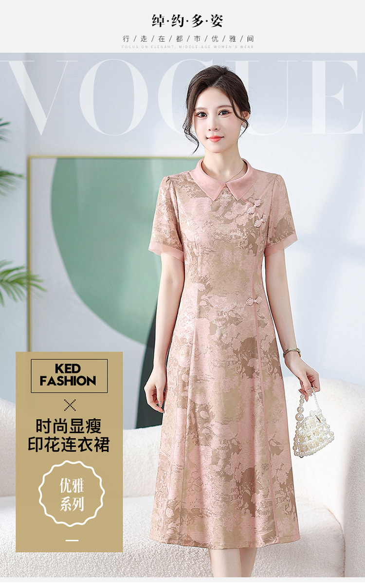 中式印花连衣裙,气质中长款A字裙QYM-KED-6470-Y