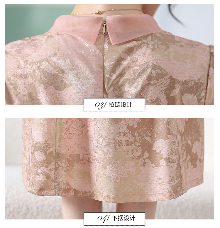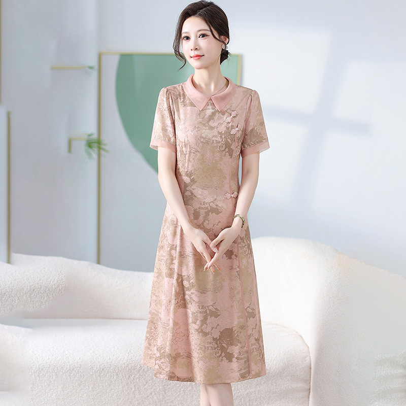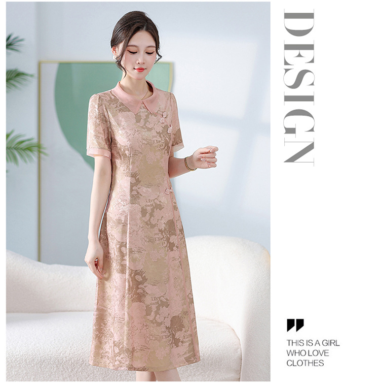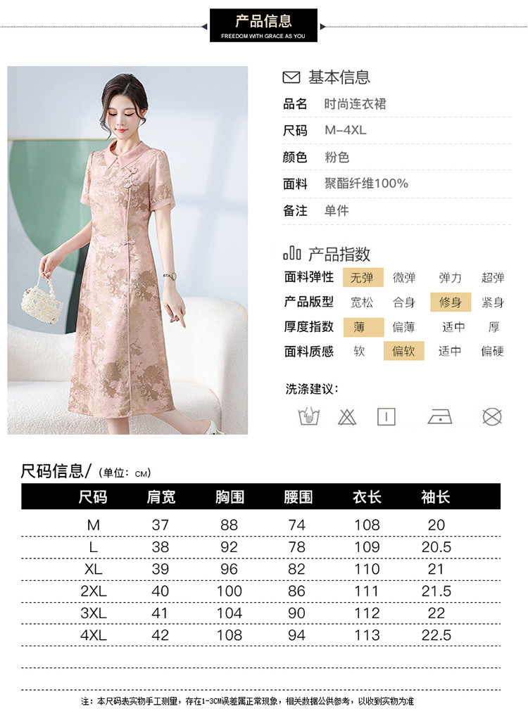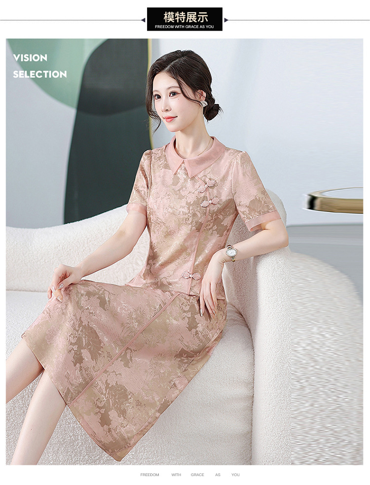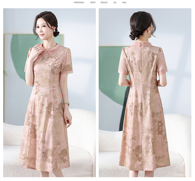 中式印花连衣裙,气质中长款A字裙QYM-KED-6470-Y