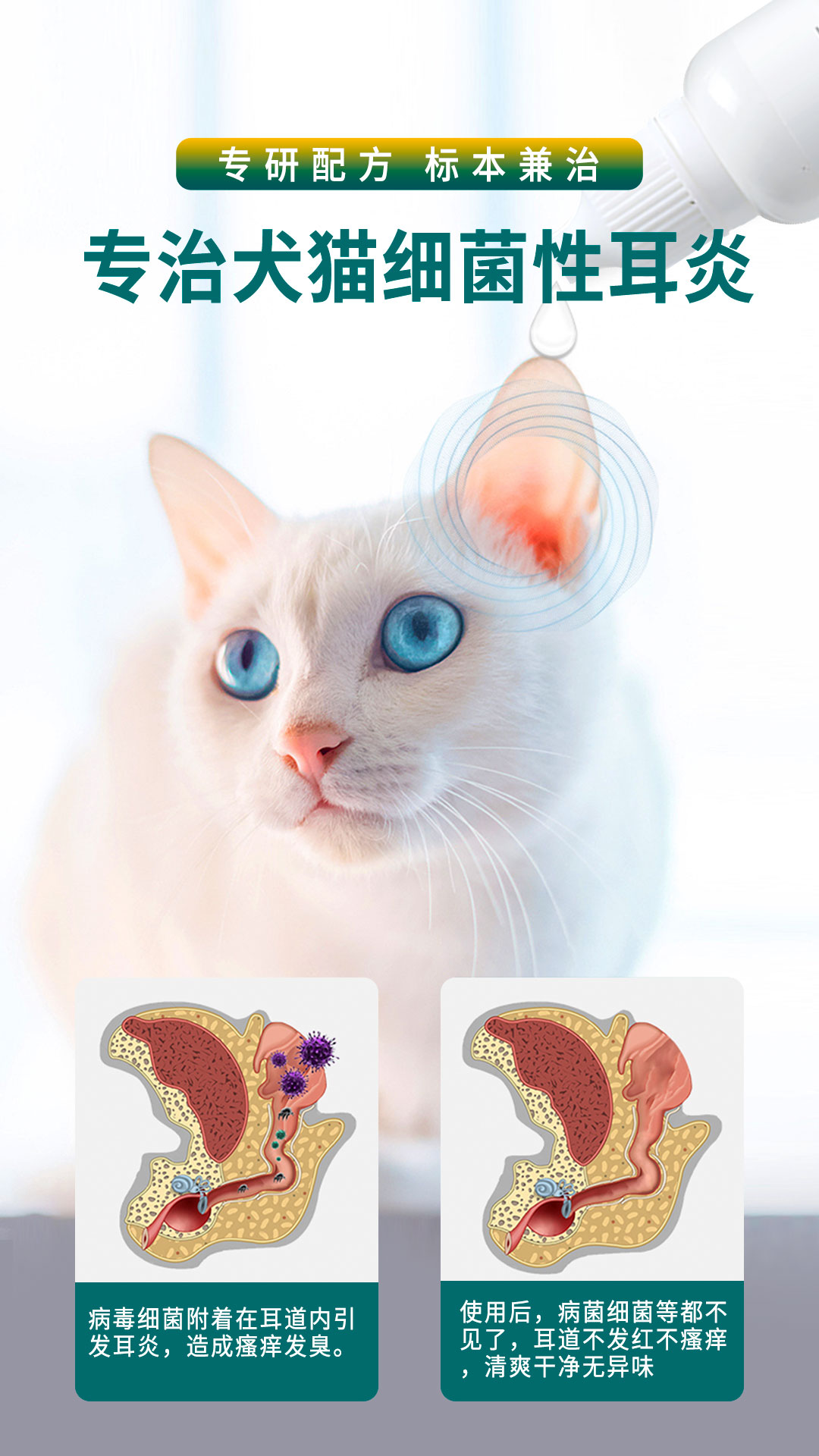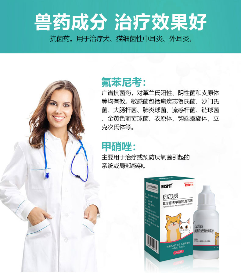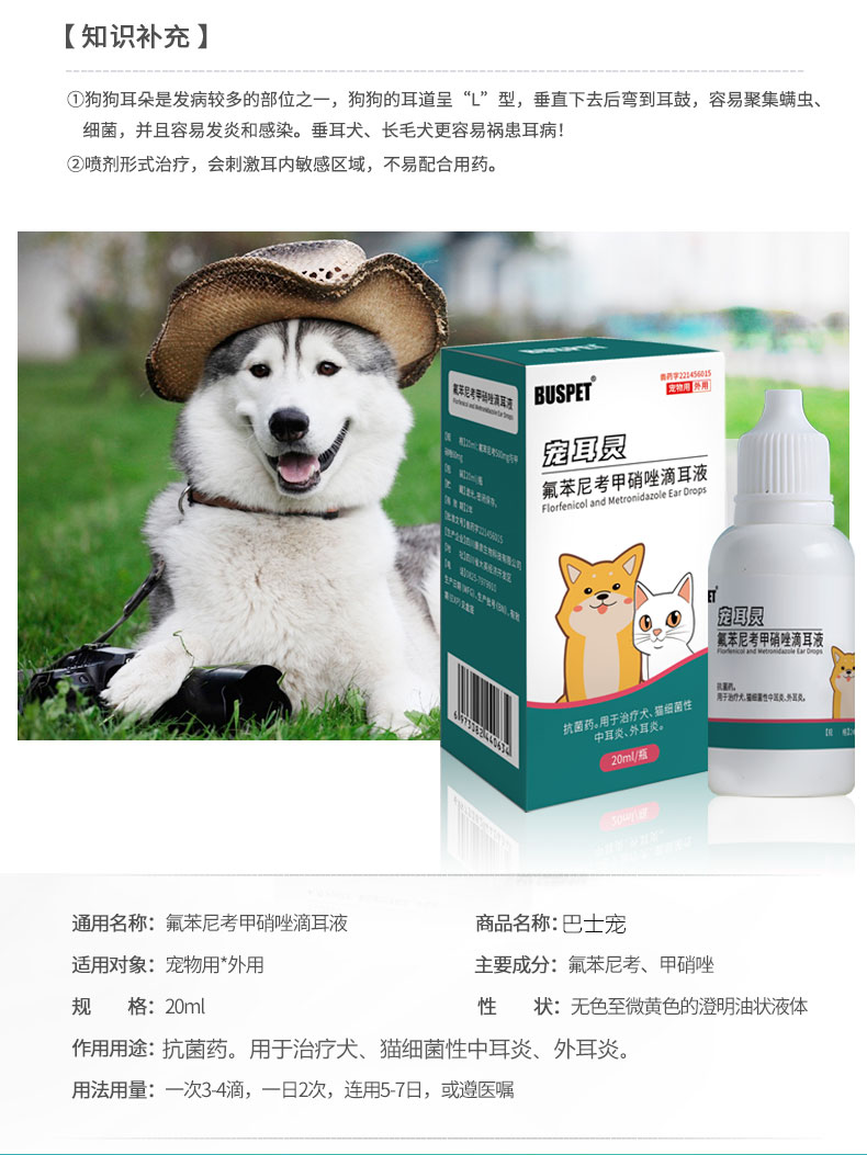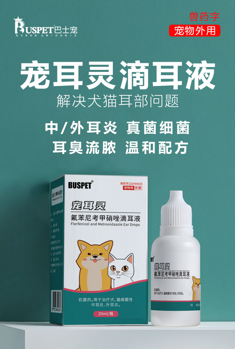 巴士宠 宠耳灵滴耳液20ml 耳螨 猫咪狗狗 耳朵清洁 中耳yan 带兽药字【5送2,10送5】