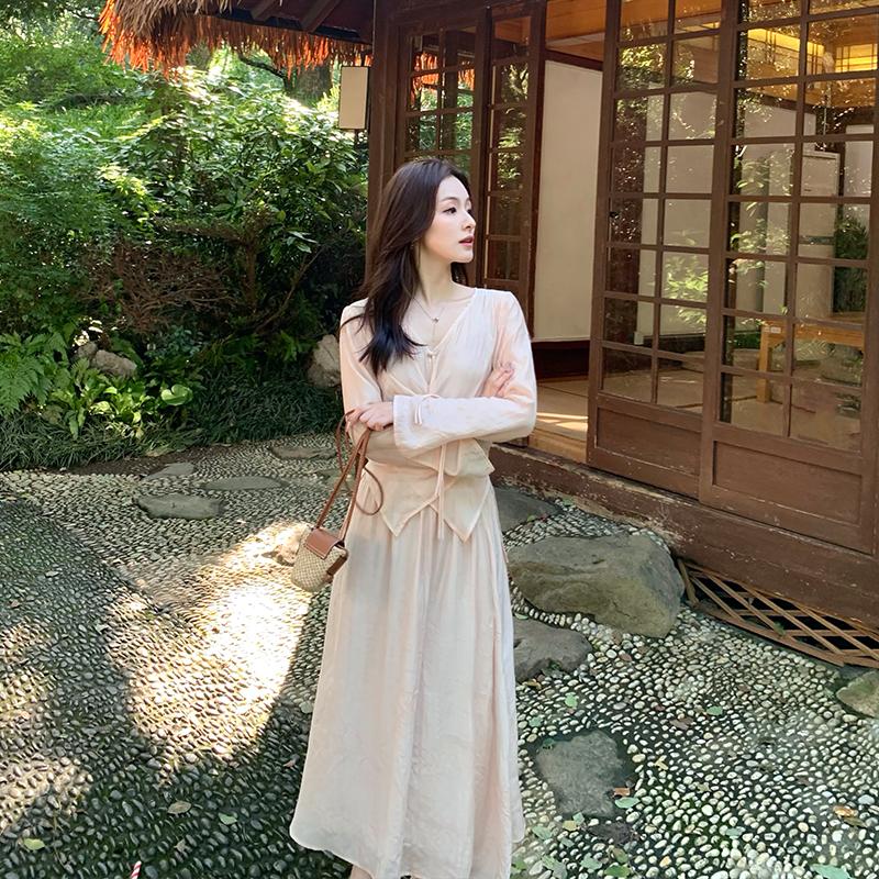金蘑菇菇 罗马许愿池/天丝褶皱重工炒色设计款不规则交叉衬衫套组