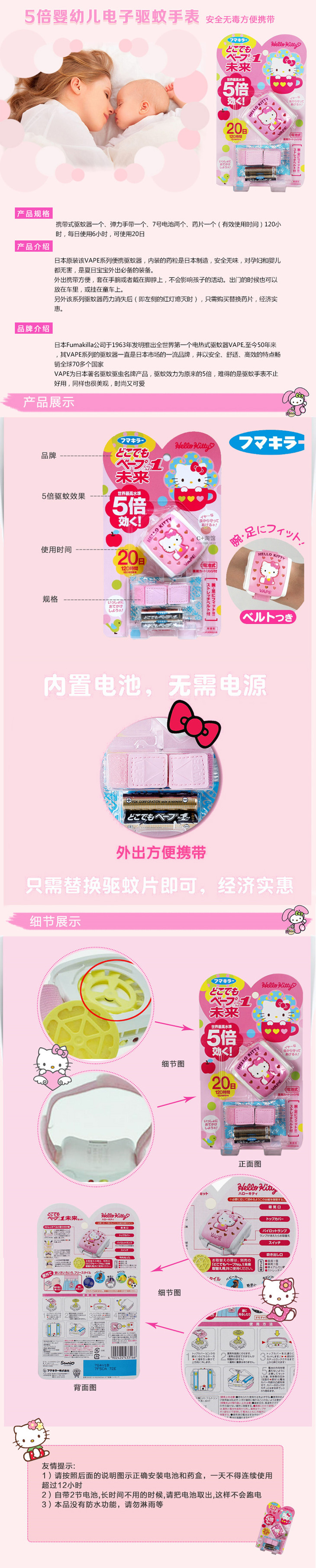 【香港直邮】日本VAPE5倍功效驱蚊手环 HELLO KITTY版